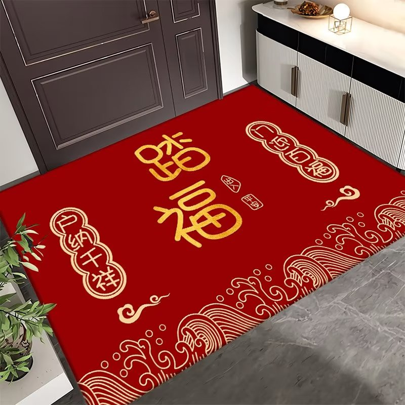 Simple peace and joy festive red entrance door bathroom floor mats stain-resistant, water-absorbent and non-slip floor mats horizontal version - peace and joy 40cm wide * 60cm long trial pack