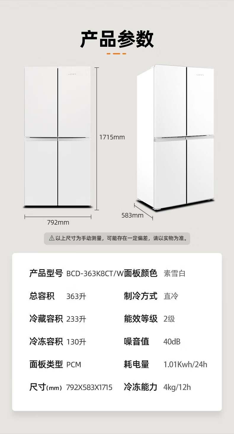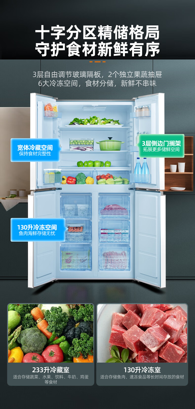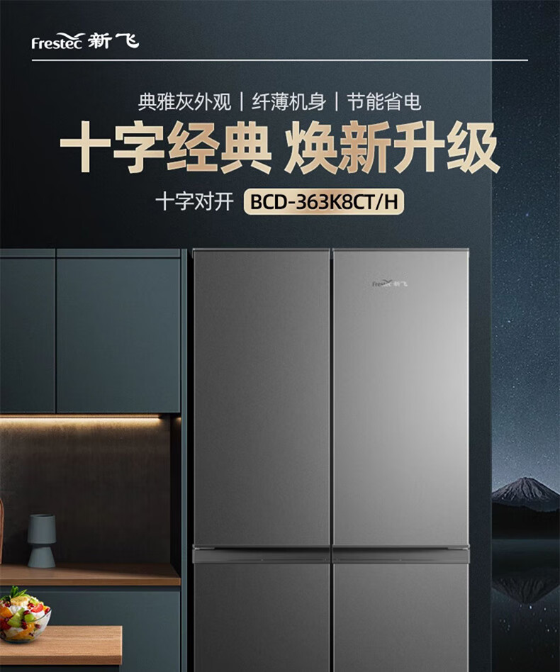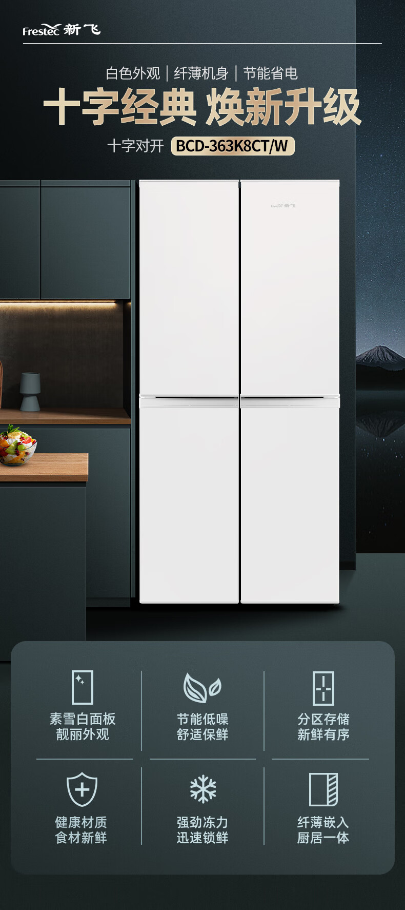 Xinfei 363 liters 58cm built-in refrigerator cross-door energy-saving household refrigerator four-door multi-door energy-saving refrigerator white 363 liters deep 583mm ultra-thin