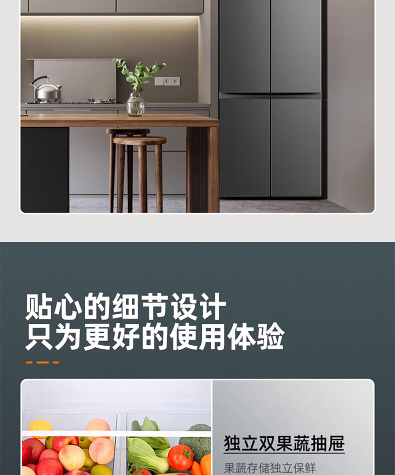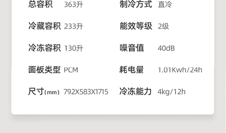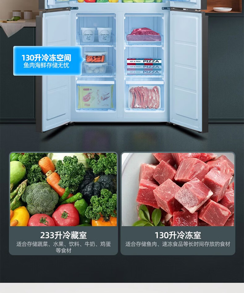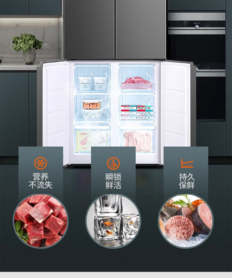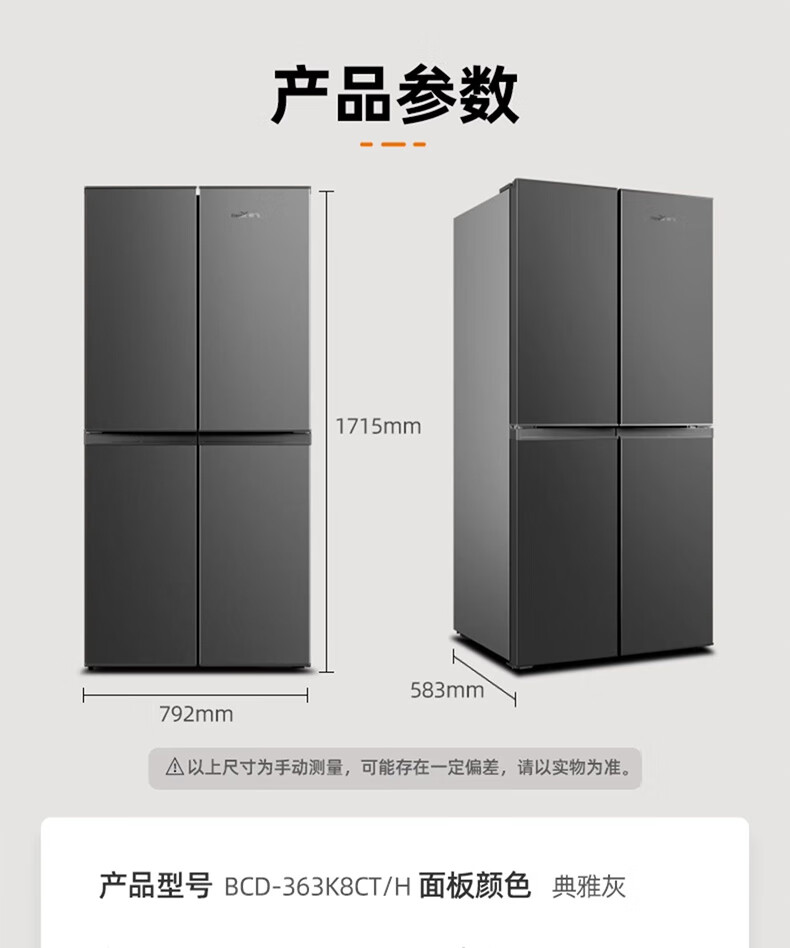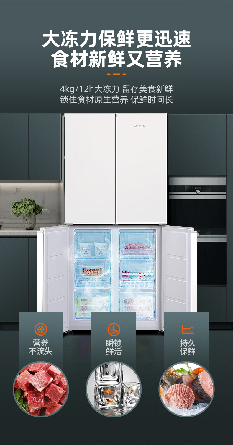 Xinfei 363 liters 58cm built-in refrigerator cross-door energy-saving household refrigerator four-door multi-door energy-saving refrigerator white 363 liters deep 583mm ultra-thin