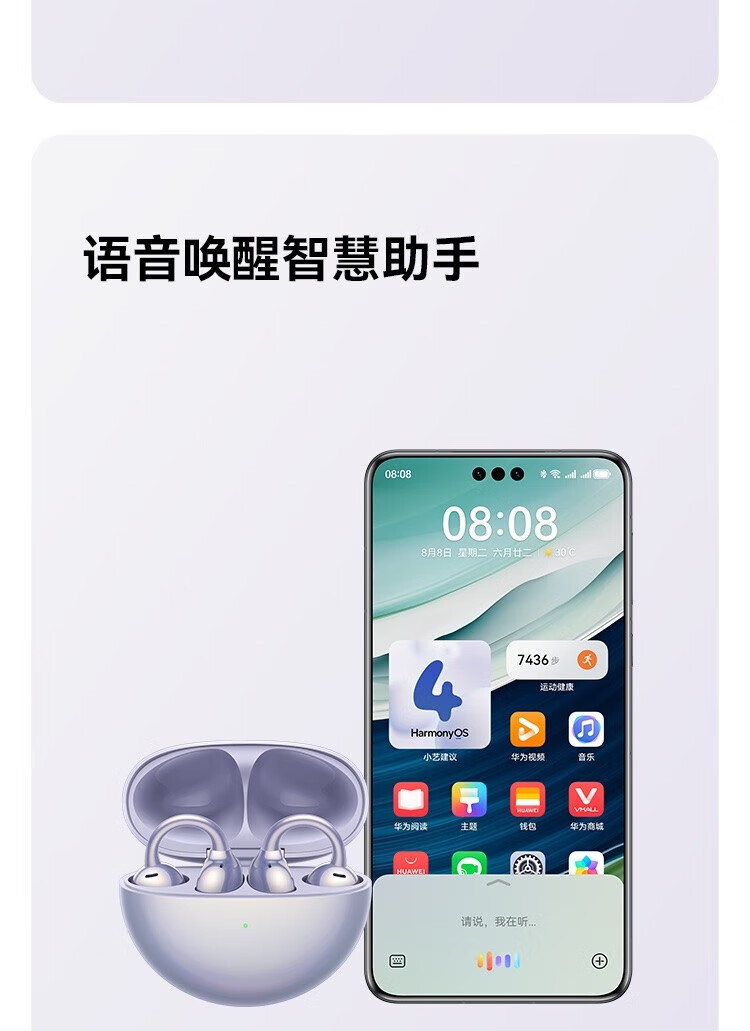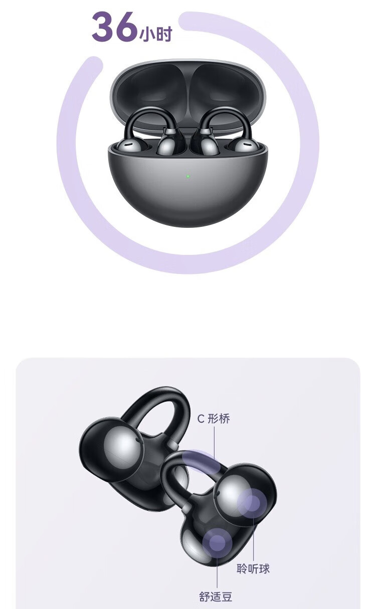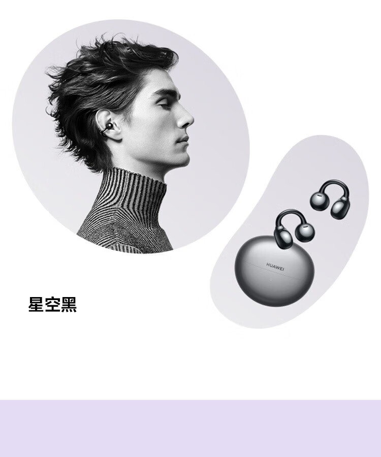 Huawei FreeClip ear-clip open wireless Bluetooth headset does not fit in the ear, is comfortable and stable to wear, has long battery life, sports and running music, is suitable for Apple, Xiaomi Honor YT32, starry sky black, free music card + order gift