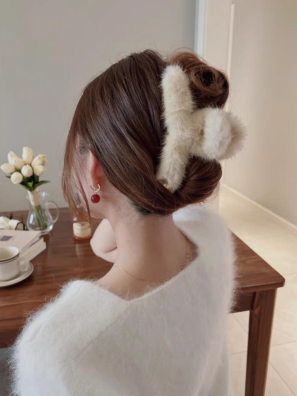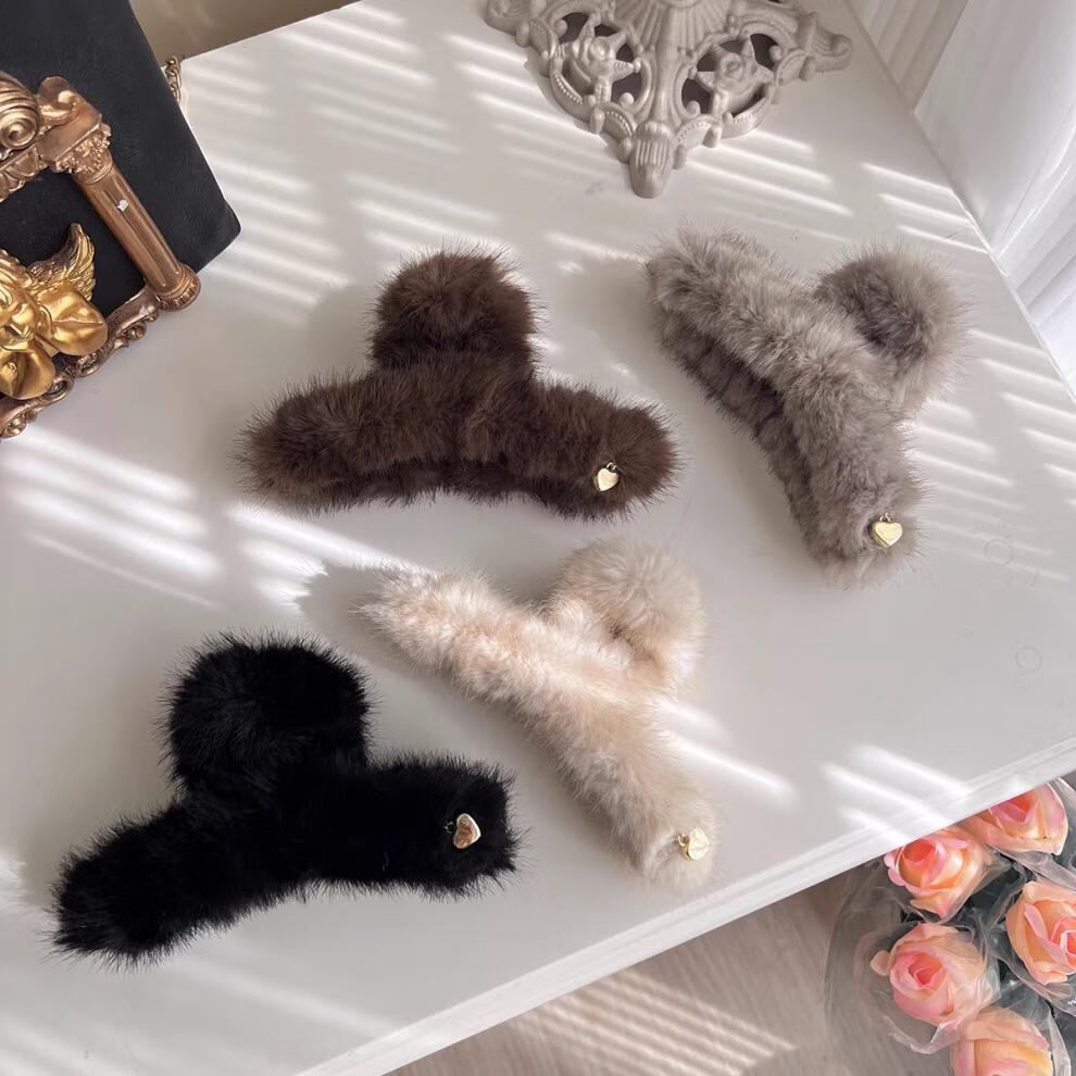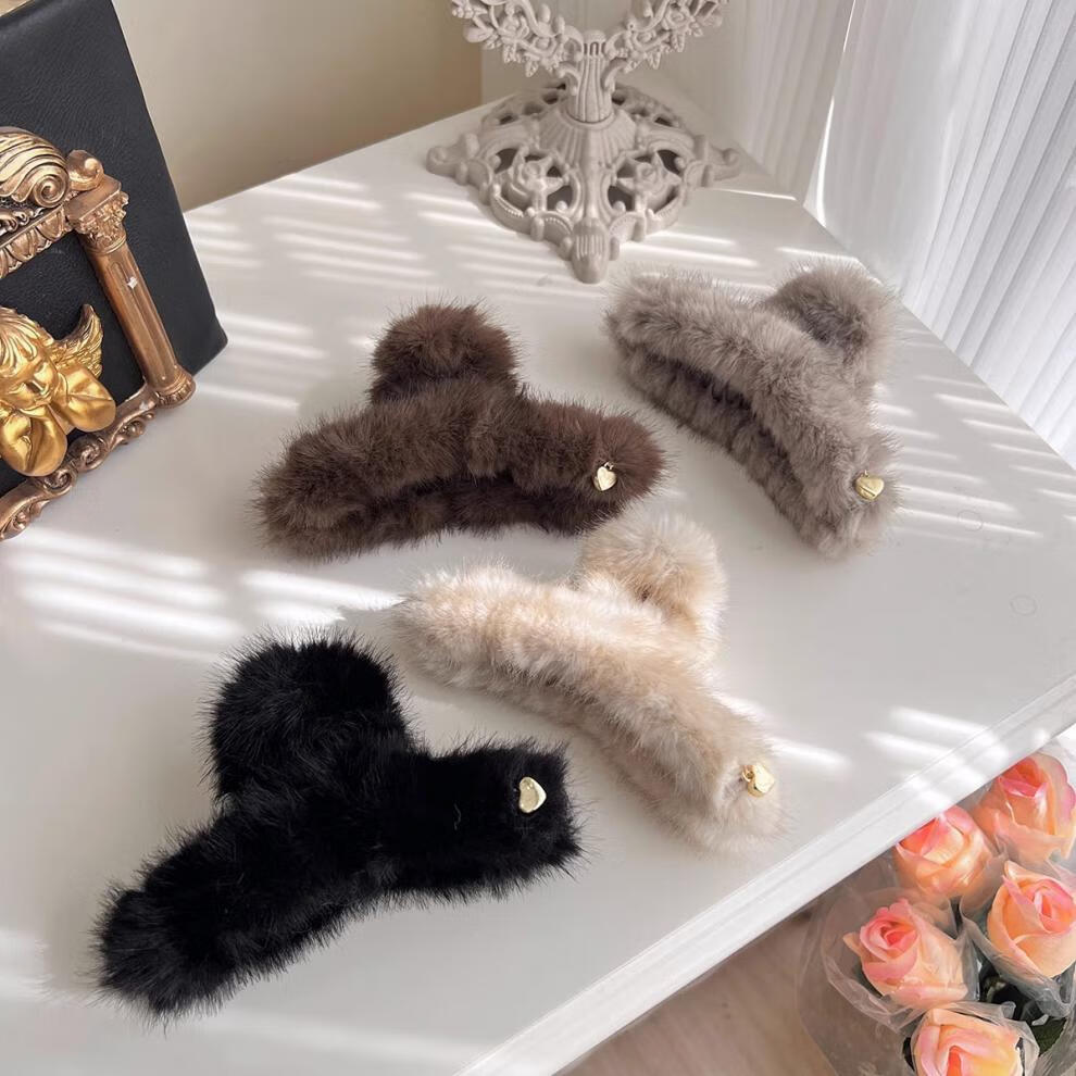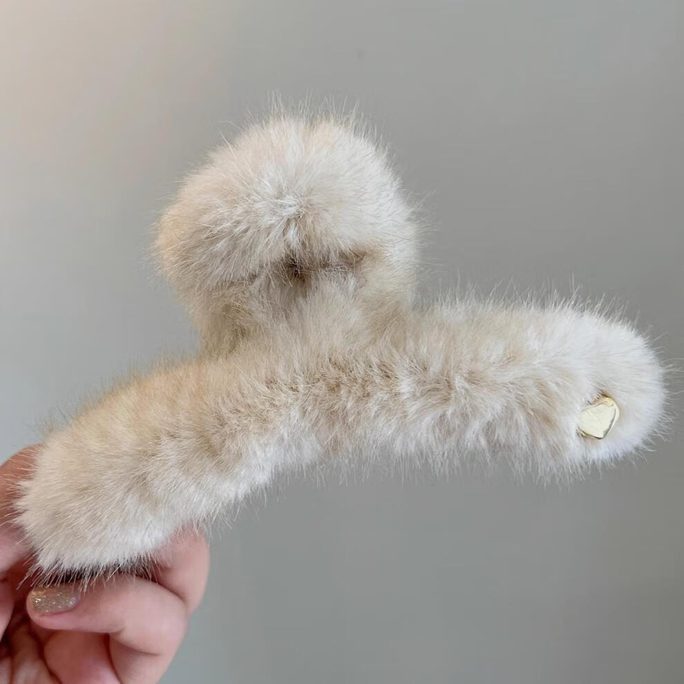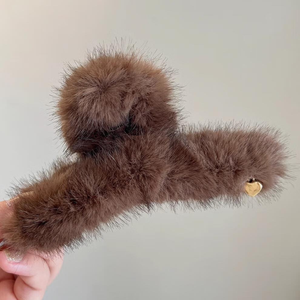BARY REEF Autumn and Winter Furry Hair Clip Women's Plush Grip Clip Large Hair Shark Clip Furry Ins Feeling Hair Accessory Back of Head Plush Coffee Color 13cm