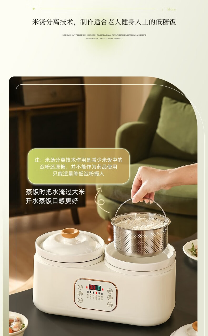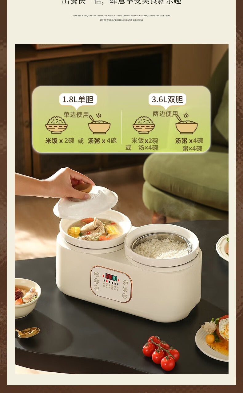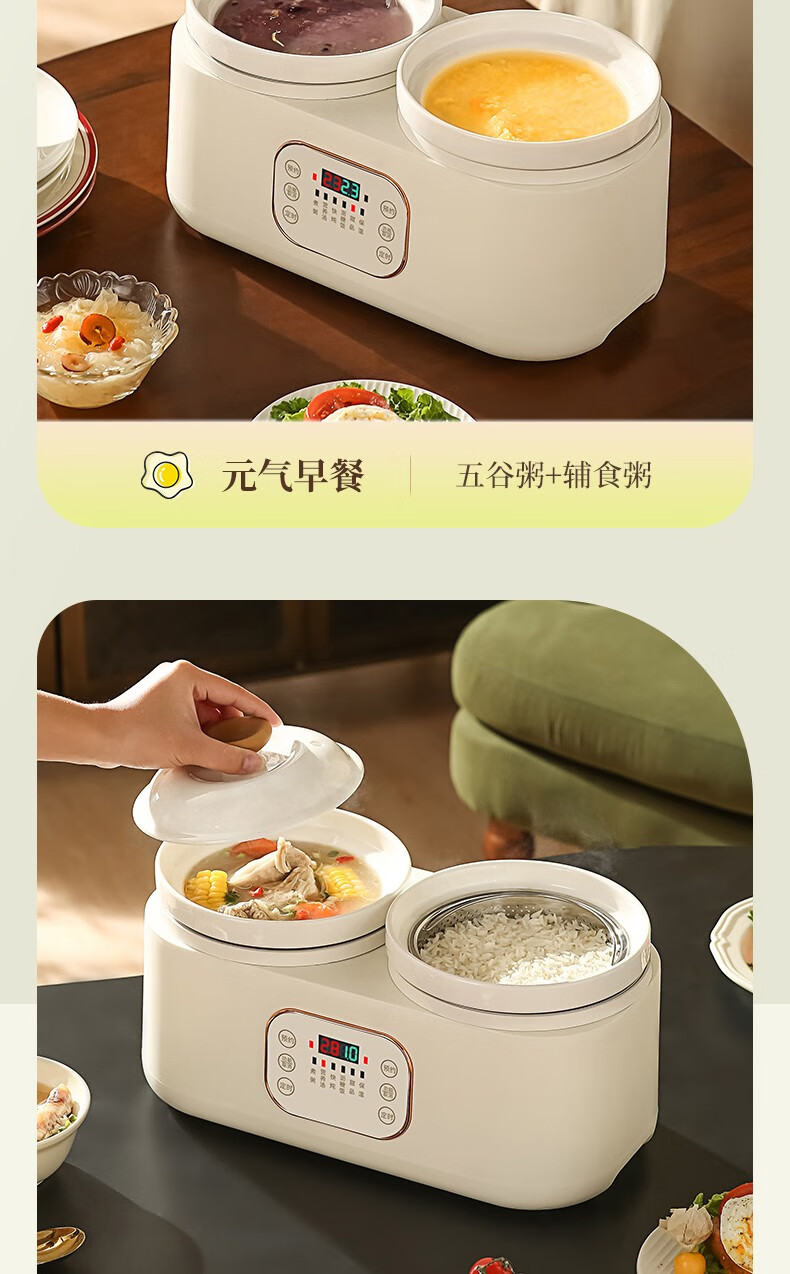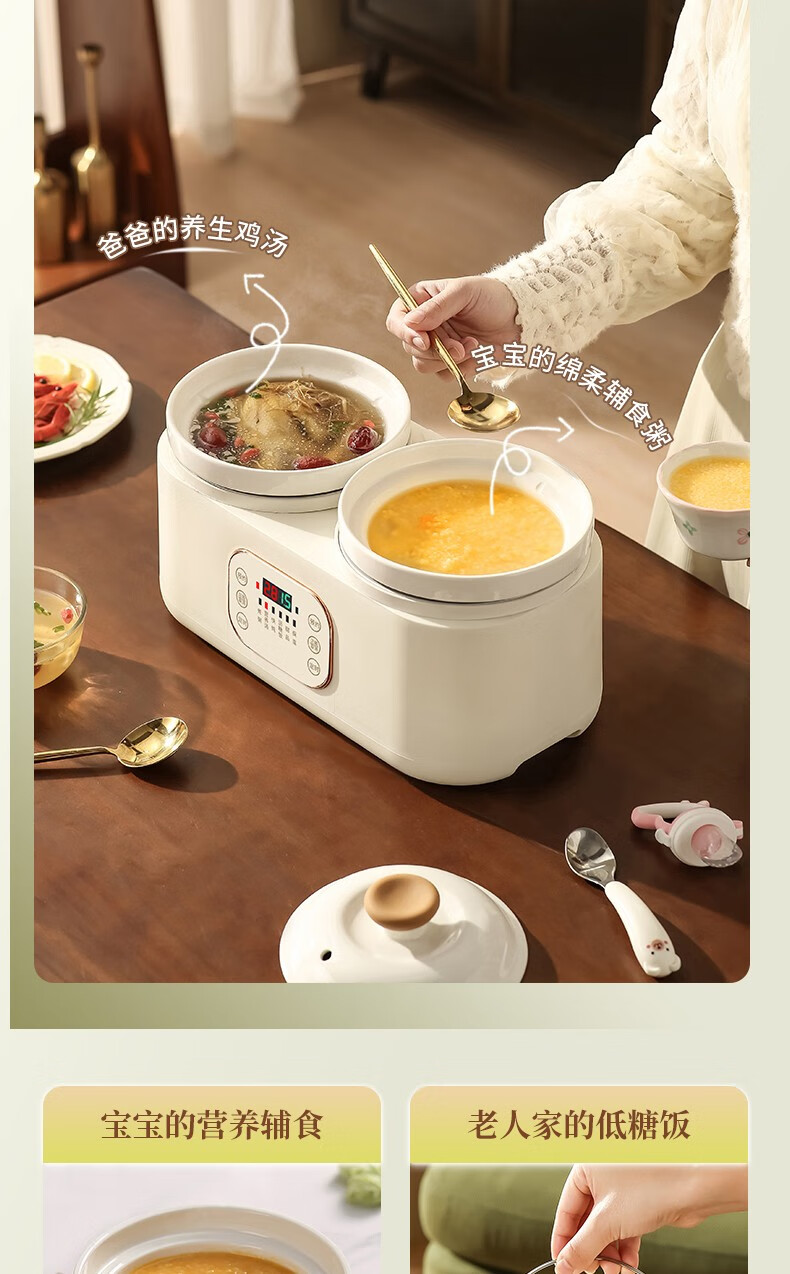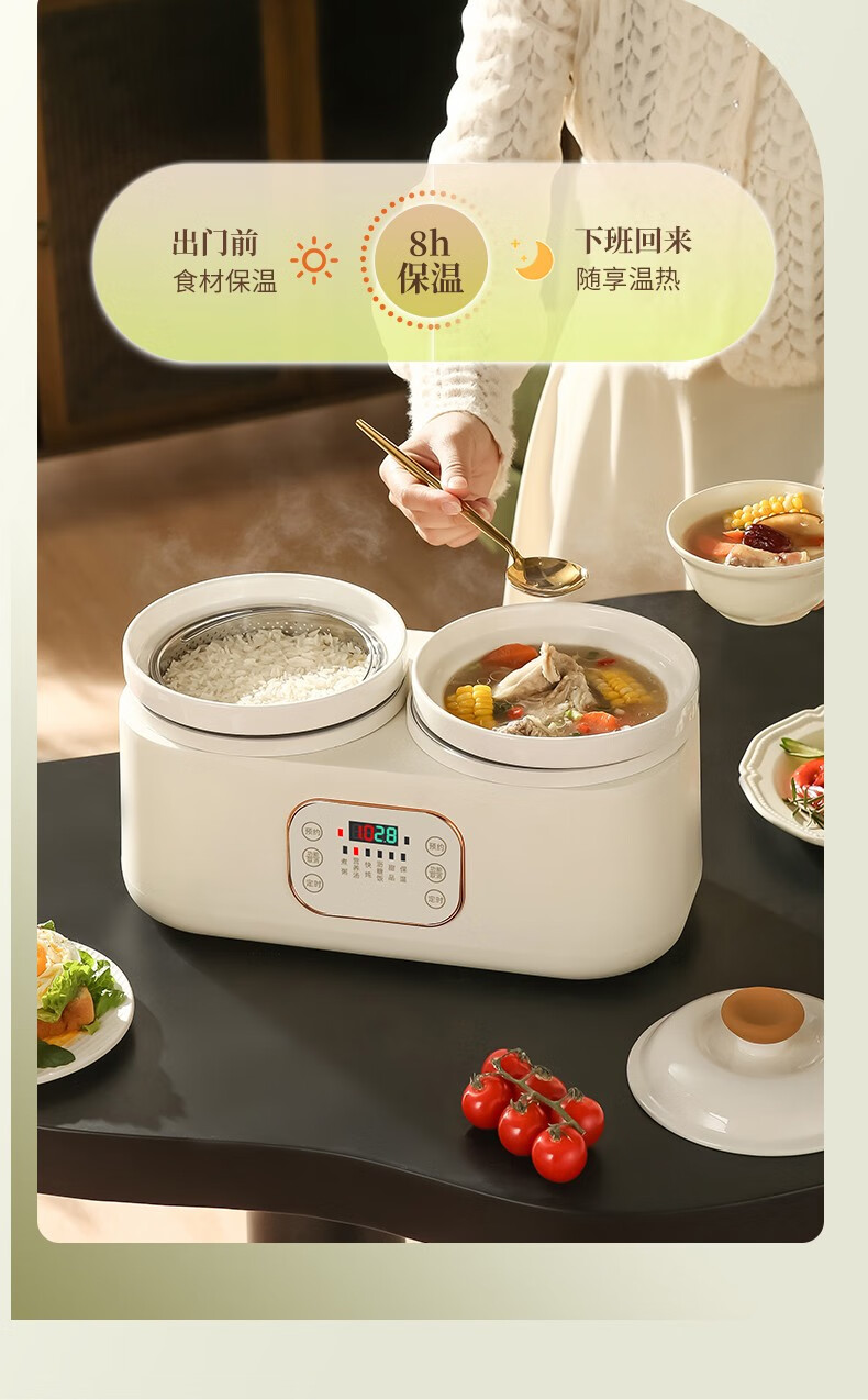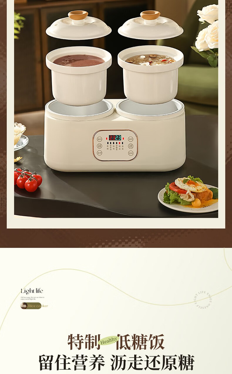 Blue Dad uncoated ceramic double-gallon electric stew pot, multi-functional fully automatic stew pot, baby food pot, porridge and porridge artifact, household electric stew pot, electric casserole health pot, double-gall bladder electric stew pot with steamed rice drain basket