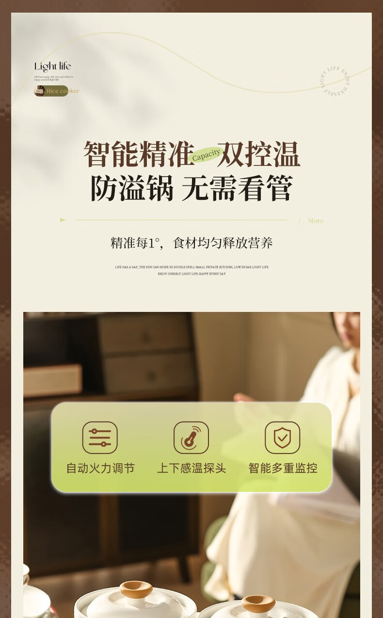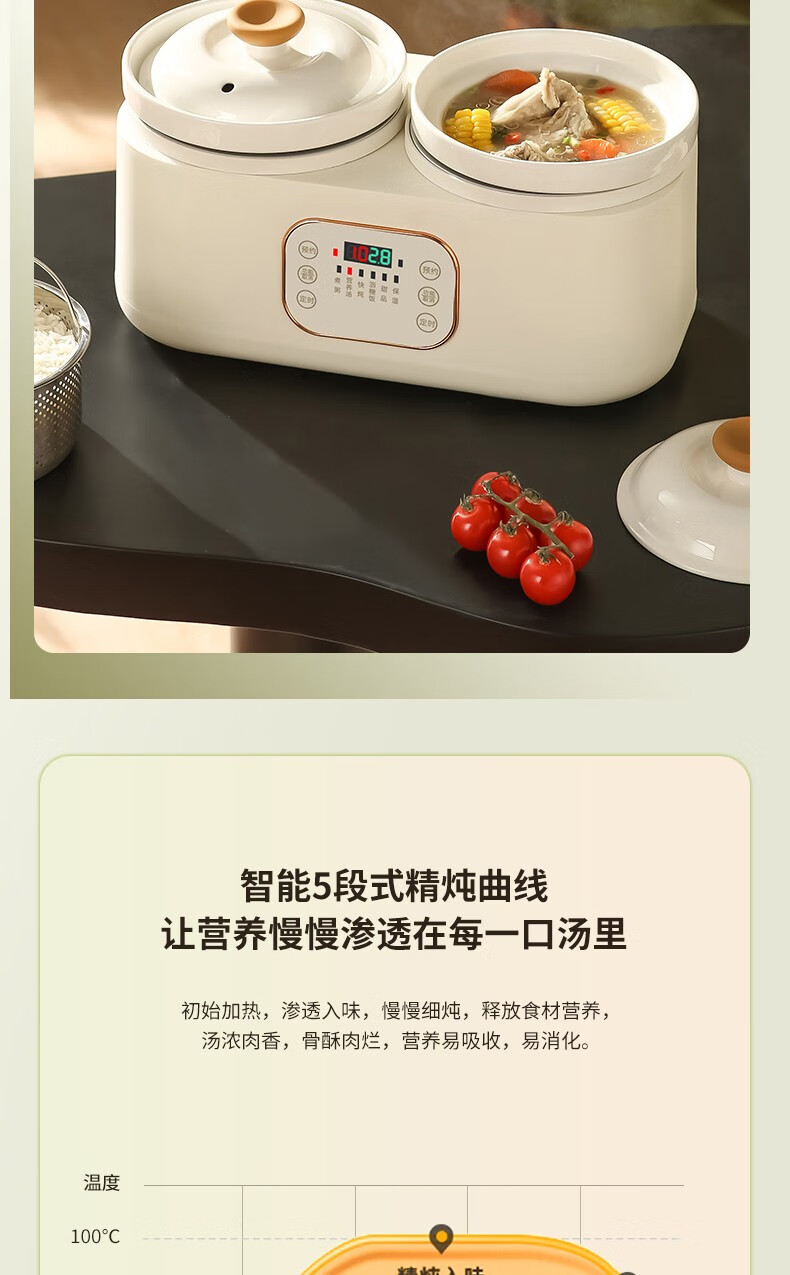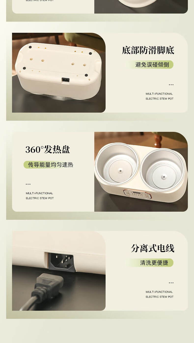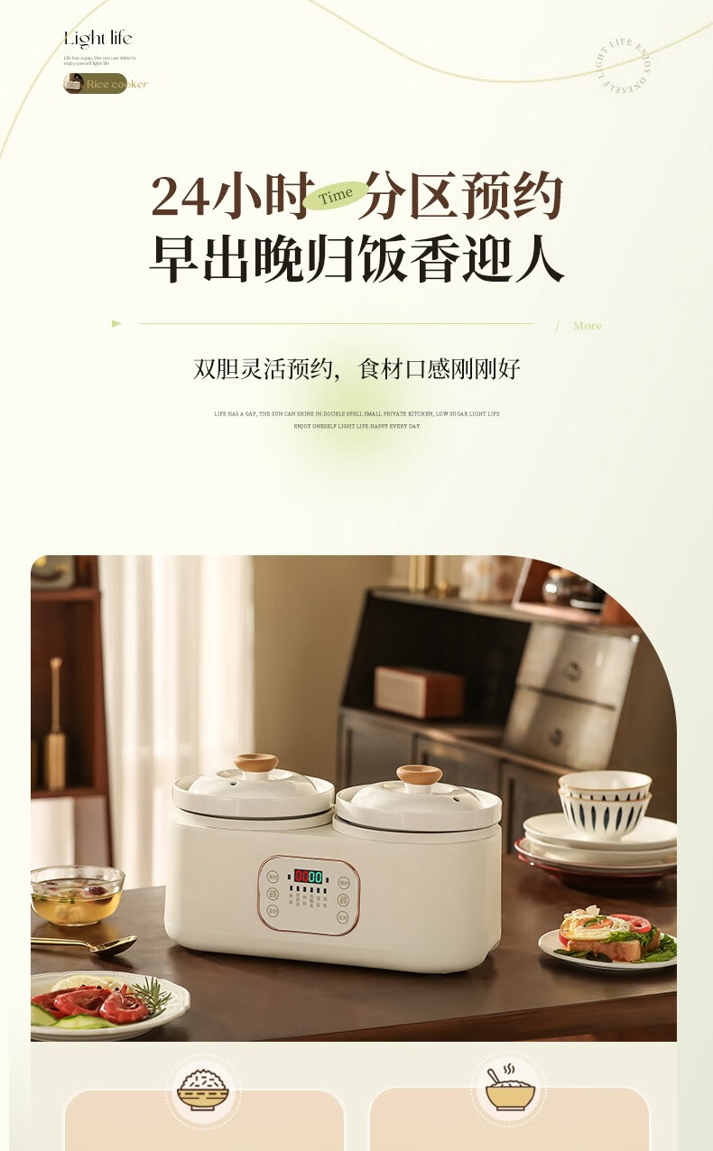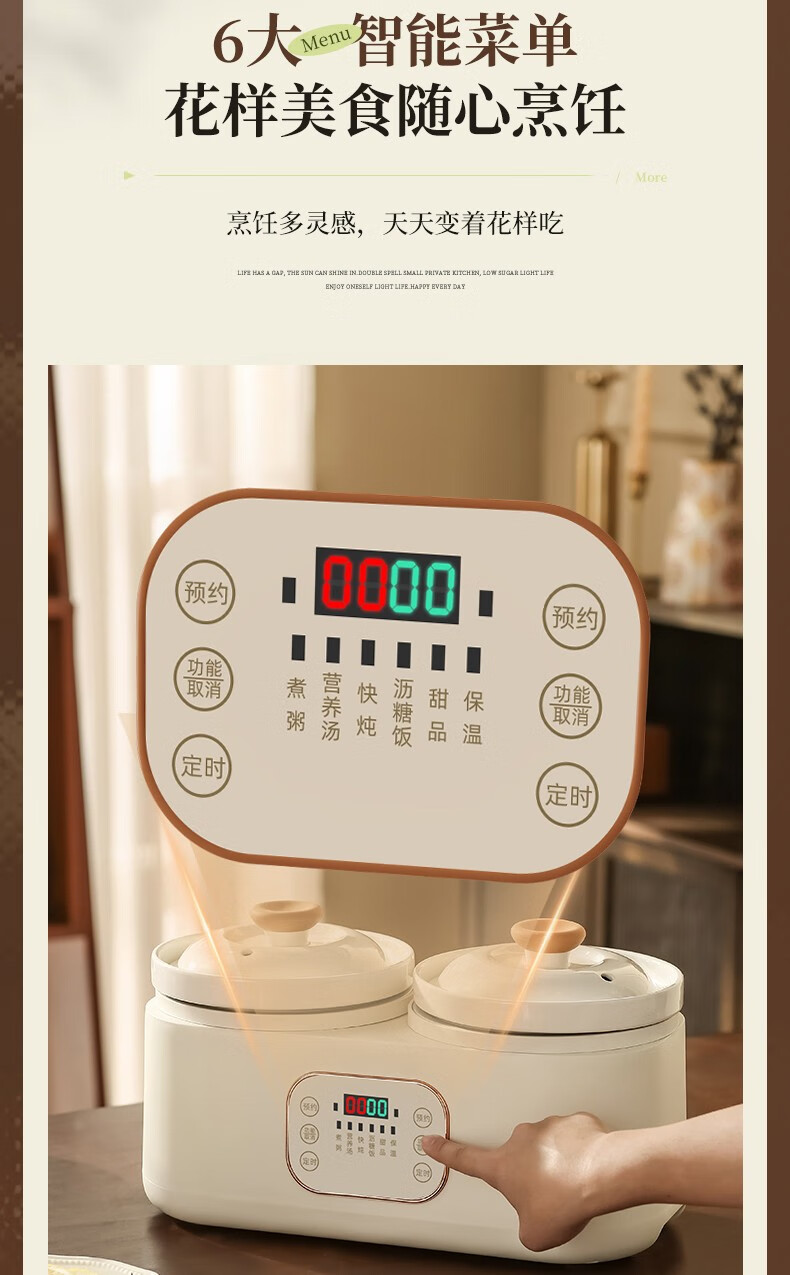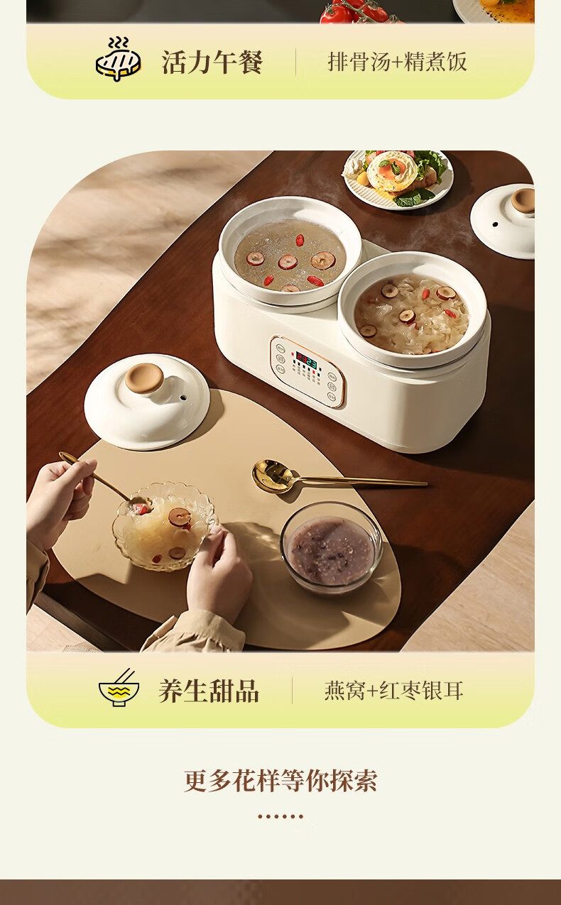 Blue Dad uncoated ceramic double-gallon electric stew pot, multi-functional fully automatic stew pot, baby food pot, porridge and porridge artifact, household electric stew pot, electric casserole health pot, double-gall bladder electric stew pot with steamed rice drain basket