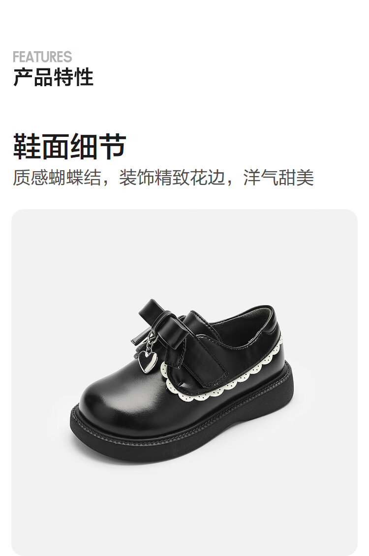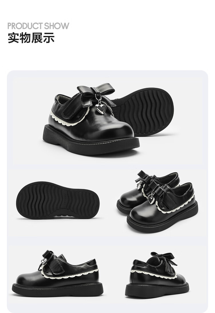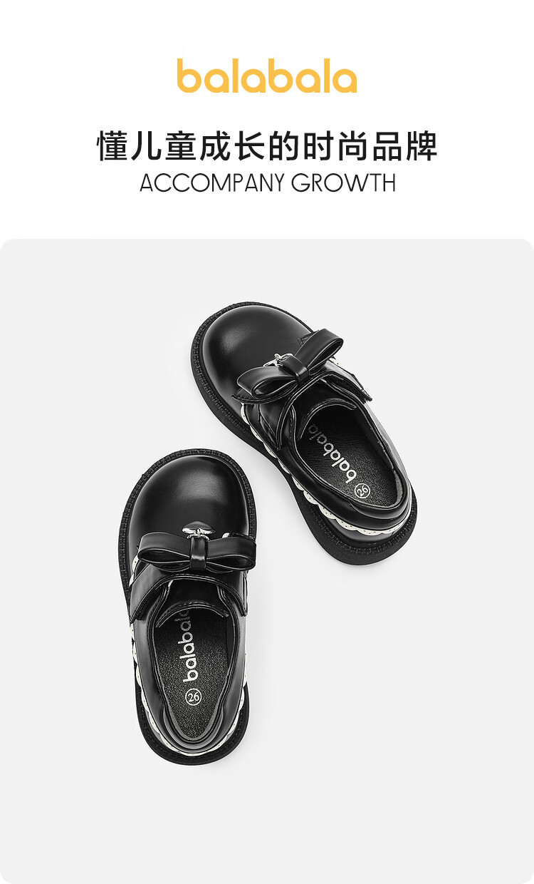 Balabala Girls Princess Shoes Literary Retro Literary Spring and Autumn Baby Sweet Trendy Small Leather Shoes Black 90001 36 Size