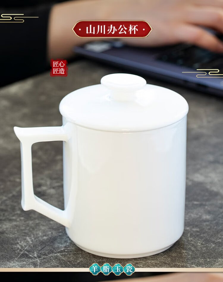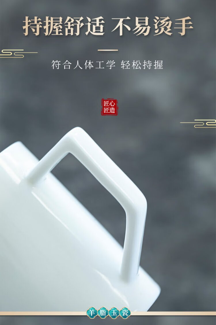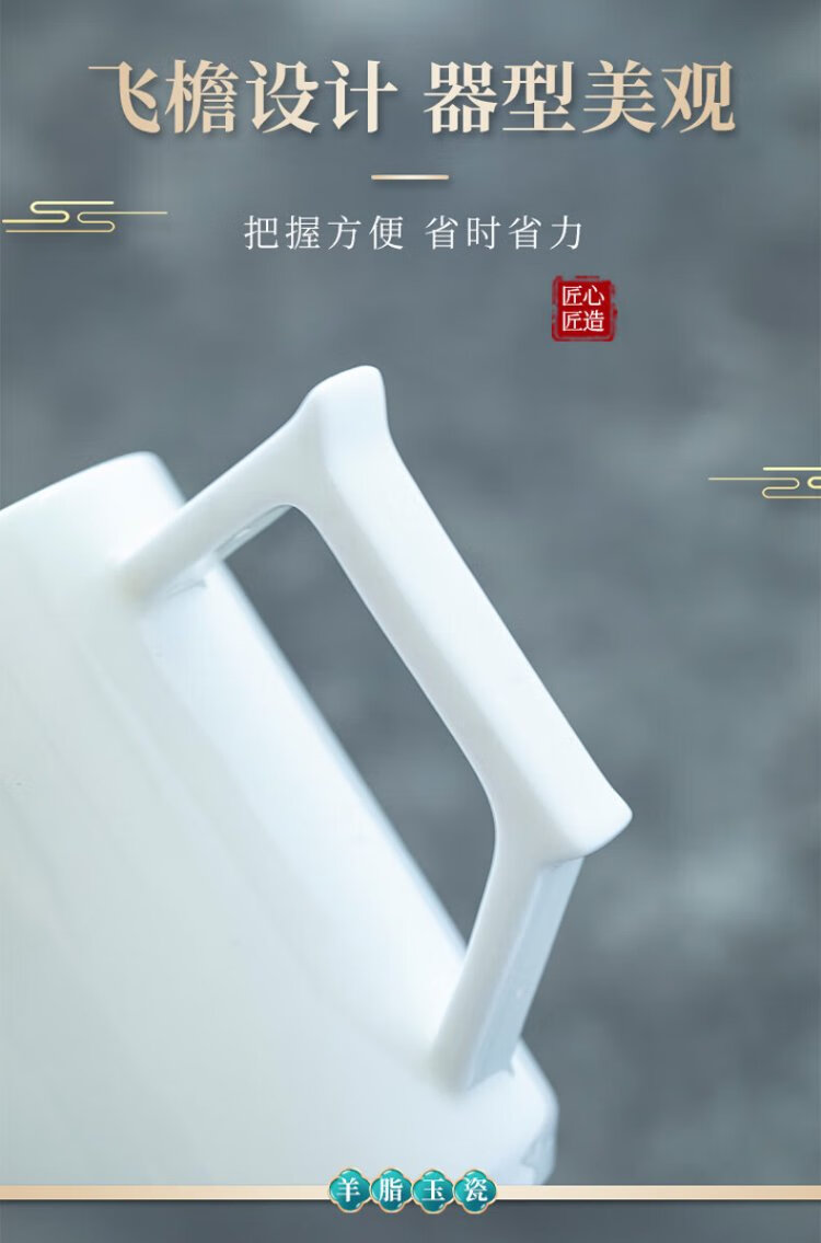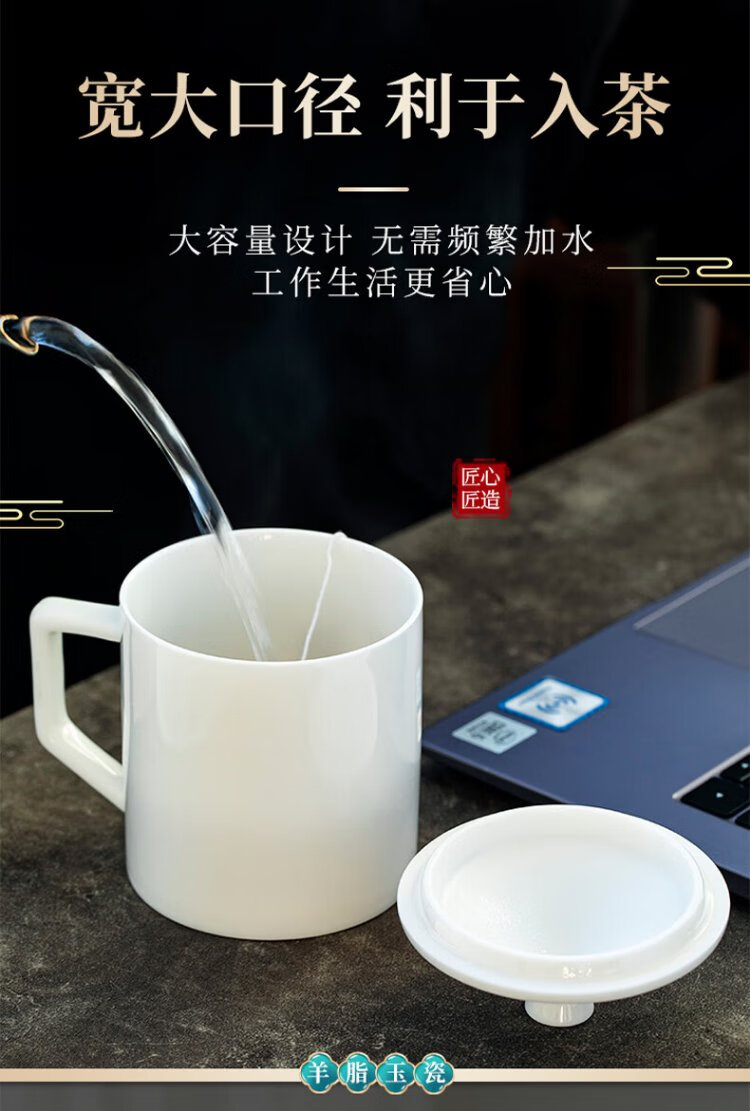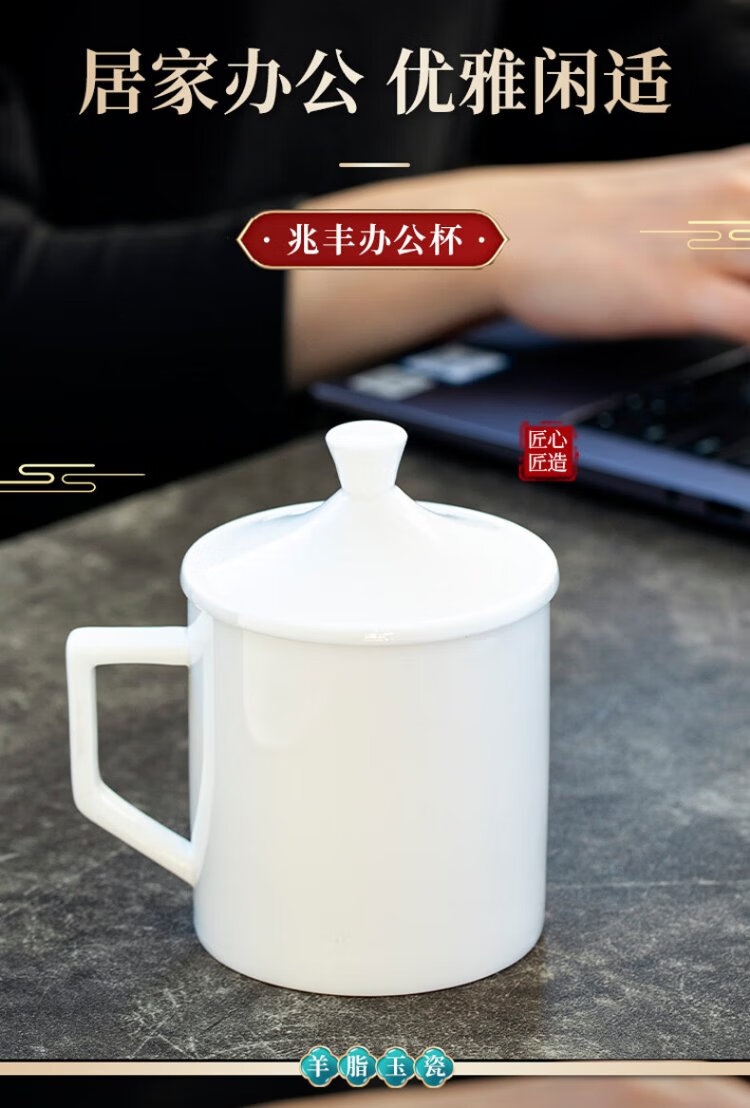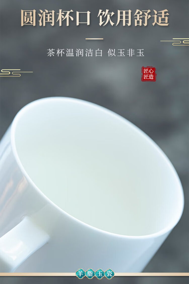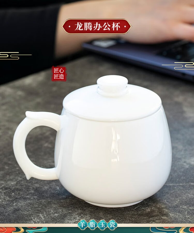 Yuquan Longmen mutton-fat jade glazed office cup Dehua white porcelain tea cup large-capacity water cup household drinking tea cup with lid 3. Longteng office cup (without liner) 380ml