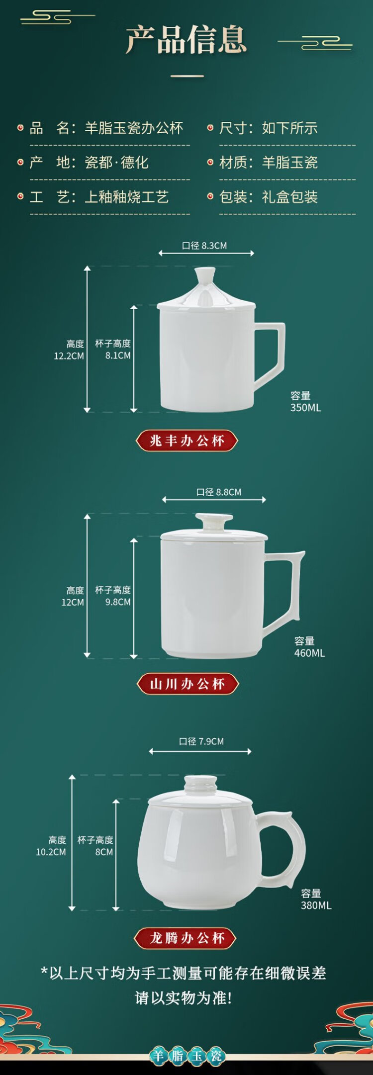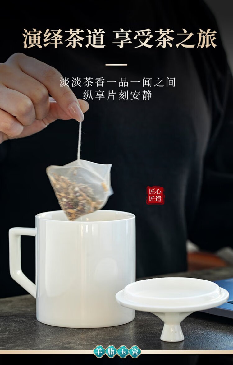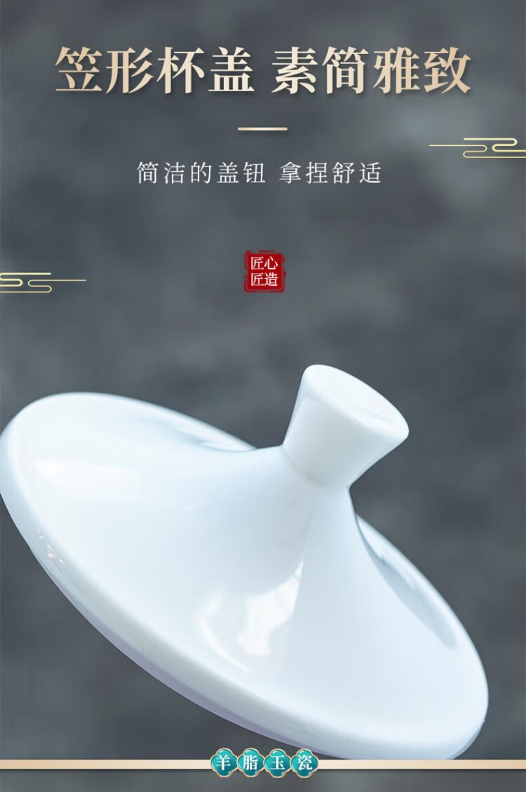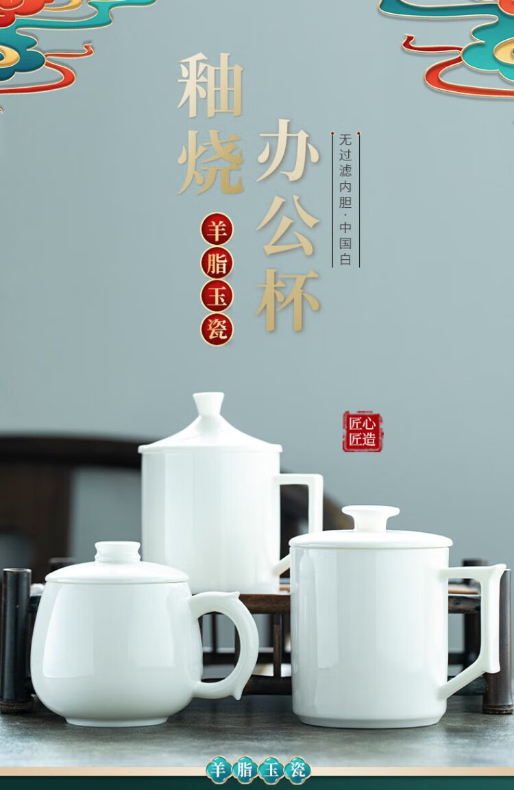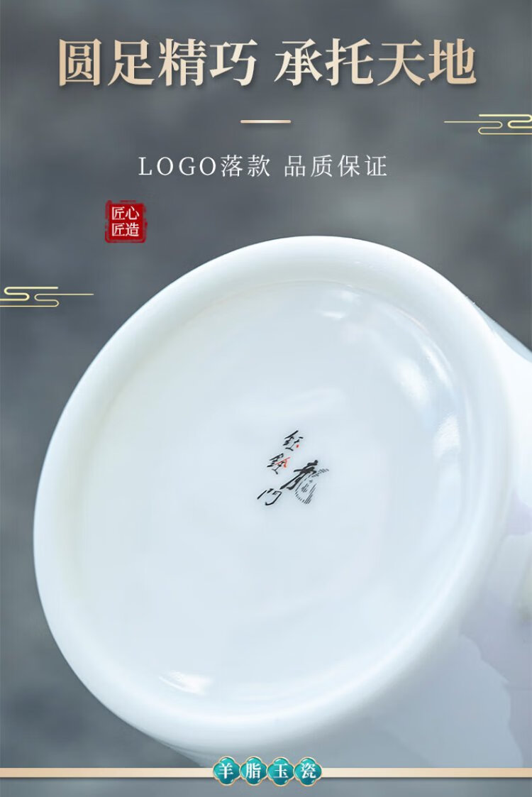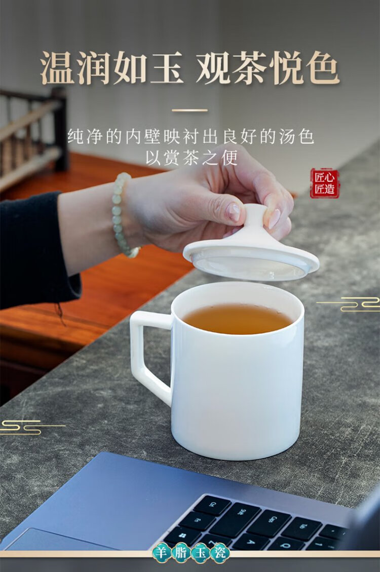 Yuquan Longmen mutton-fat jade glazed office cup Dehua white porcelain tea cup large-capacity water cup household drinking tea cup with lid 3. Longteng office cup (without liner) 380ml