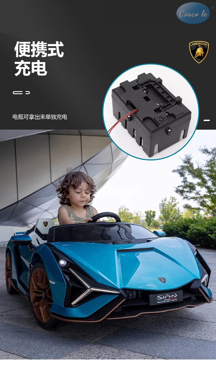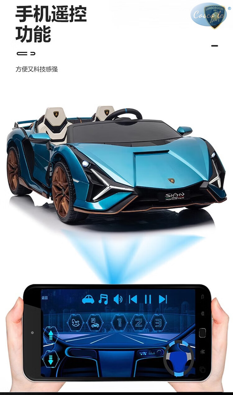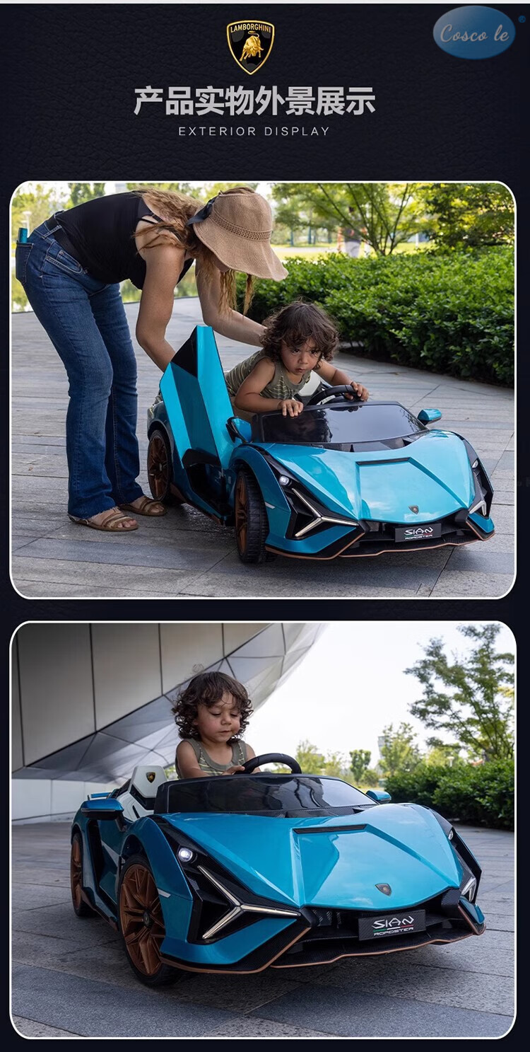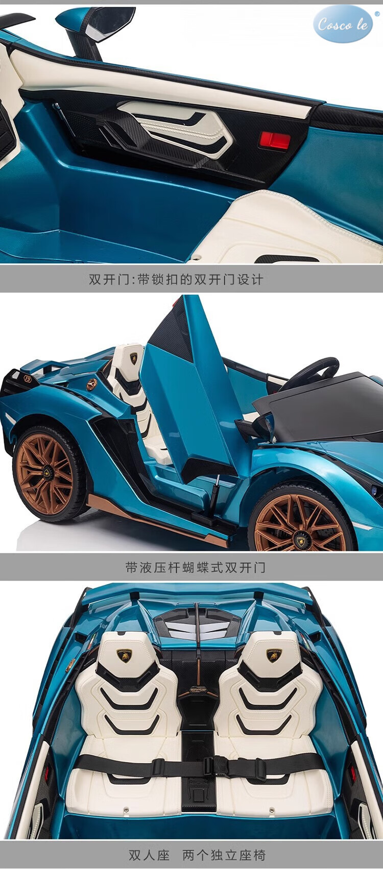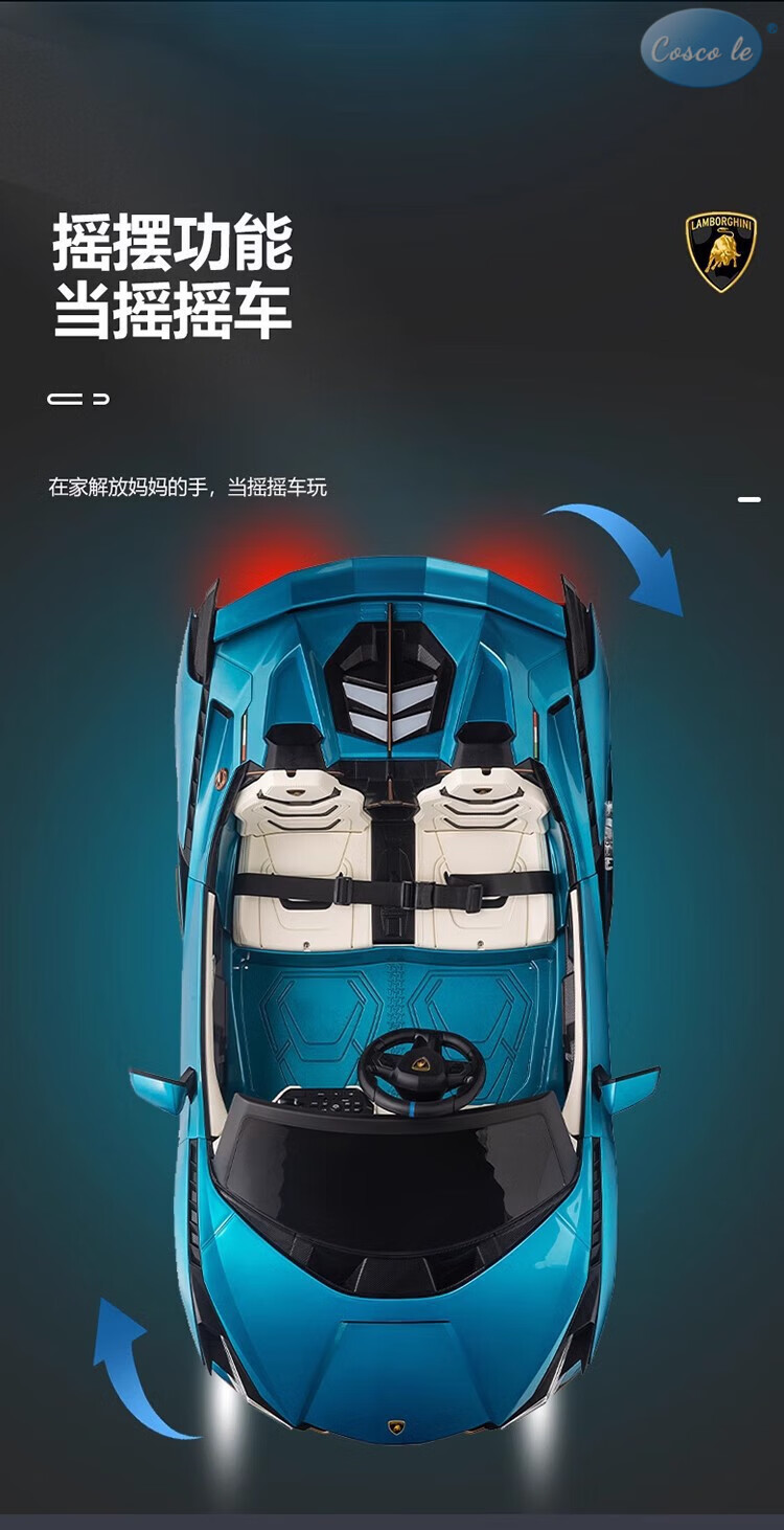 COSCO JUVENI LE children's electric car Lamborghini toy car four-wheel drive remote control can sit adults and babies 1-2-3-6 years old gift, painted blue, two seats + MP4 LCD screen + 22v large battery, genuine authorized birthday gift