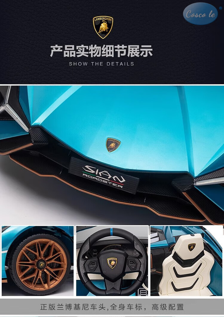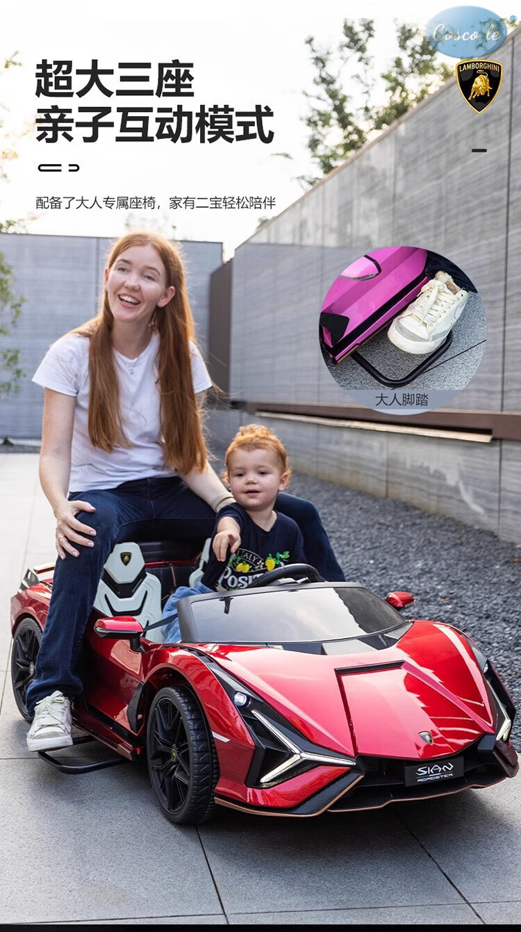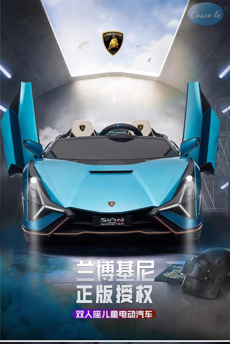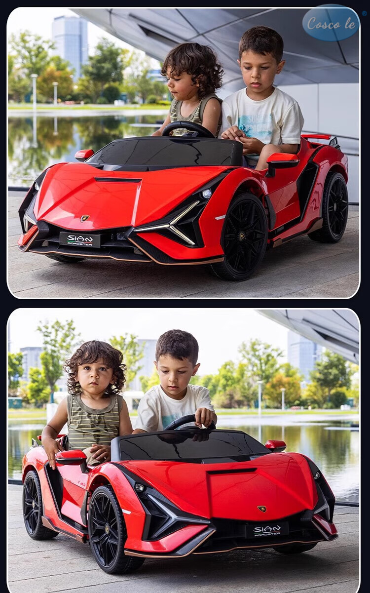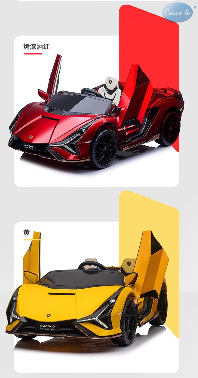 COSCO JUVENI LE children's electric car Lamborghini toy car four-wheel drive remote control can sit adults and babies 1-2-3-6 years old gift, painted blue, two seats + MP4 LCD screen + 22v large battery, genuine authorized birthday gift