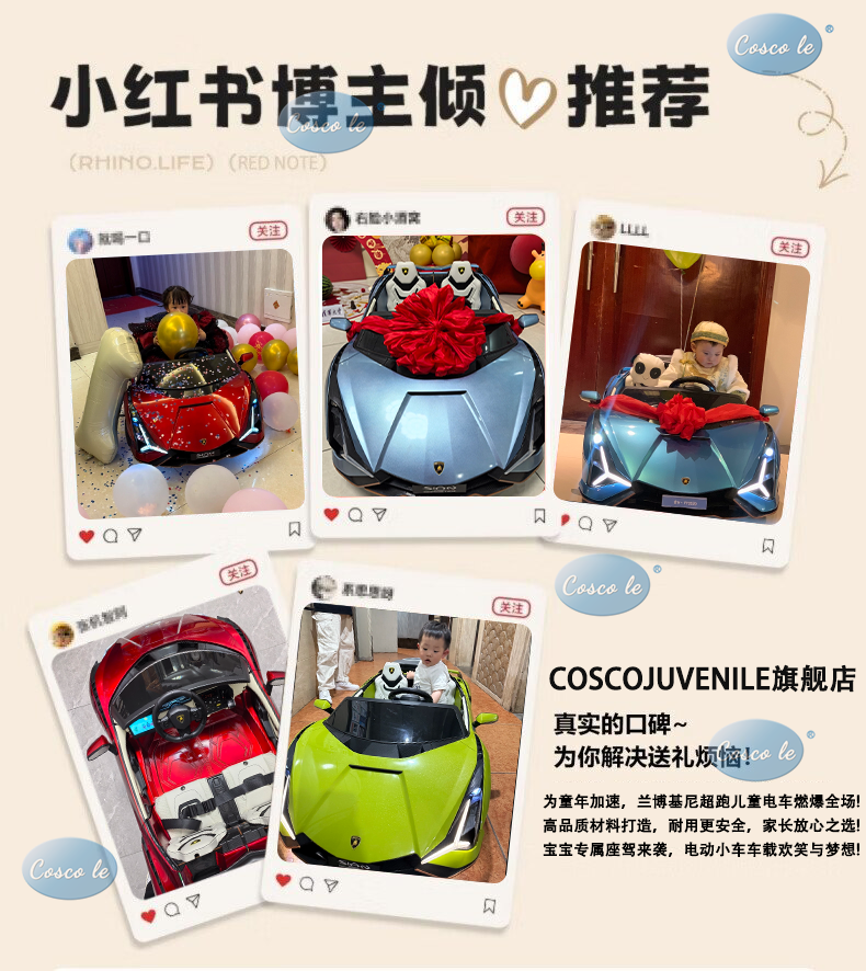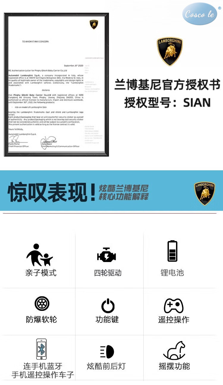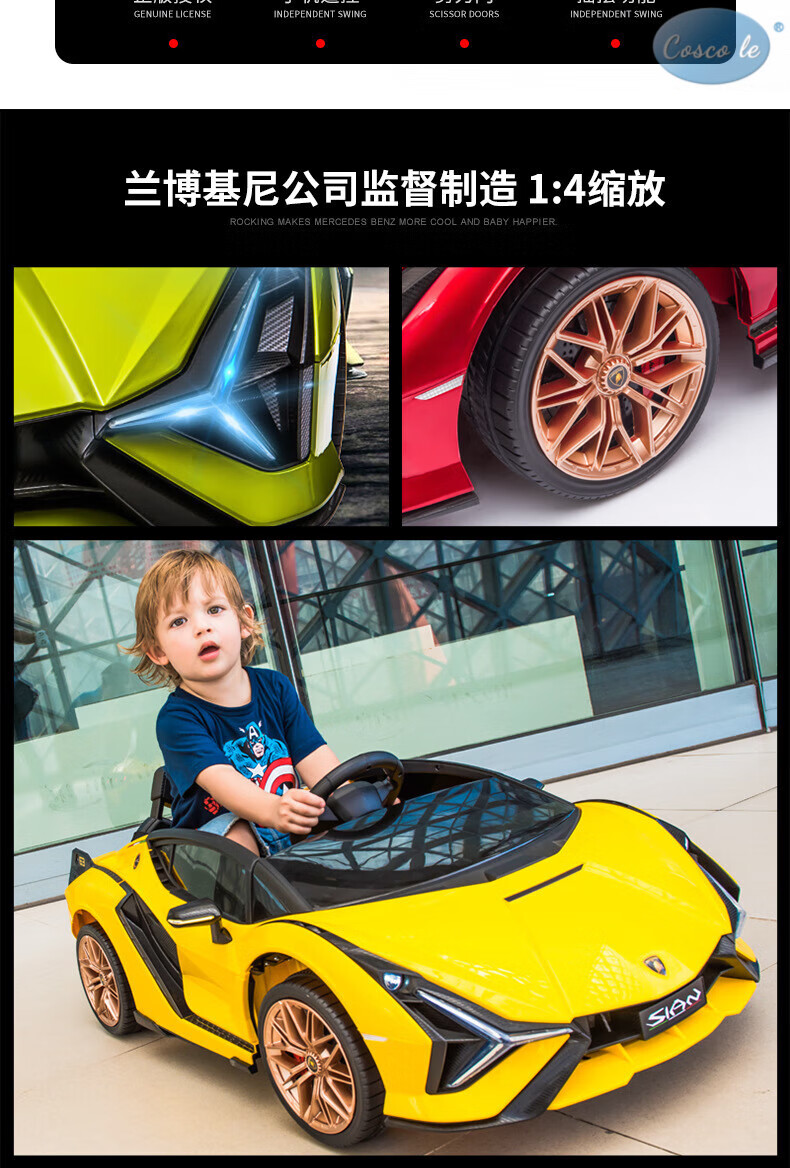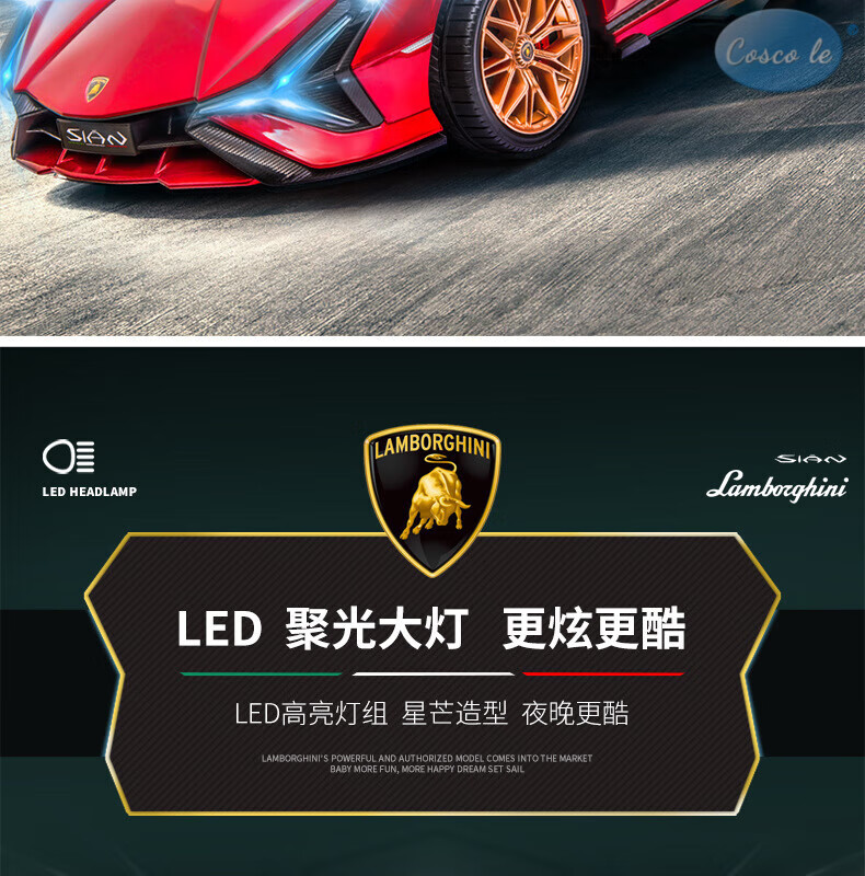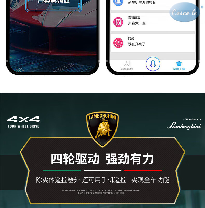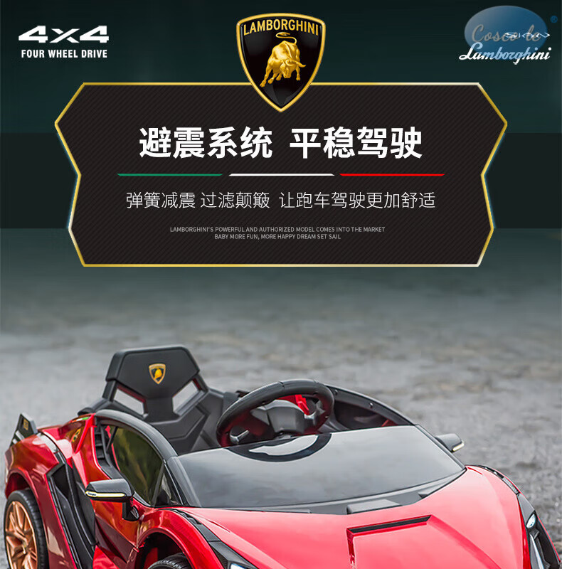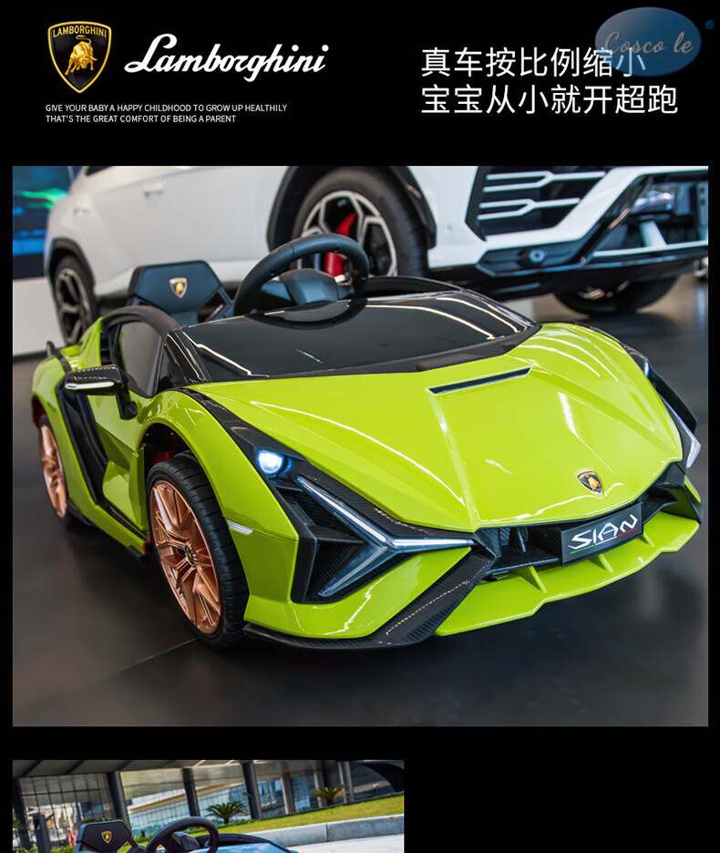 COSCO JUVENI LE children's electric car Lamborghini toy car four-wheel drive remote control can sit adults and babies 1-2-3-6 years old gift, painted blue, two seats + MP4 LCD screen + 22v large battery, genuine authorized birthday gift