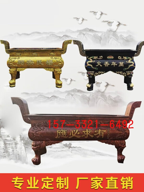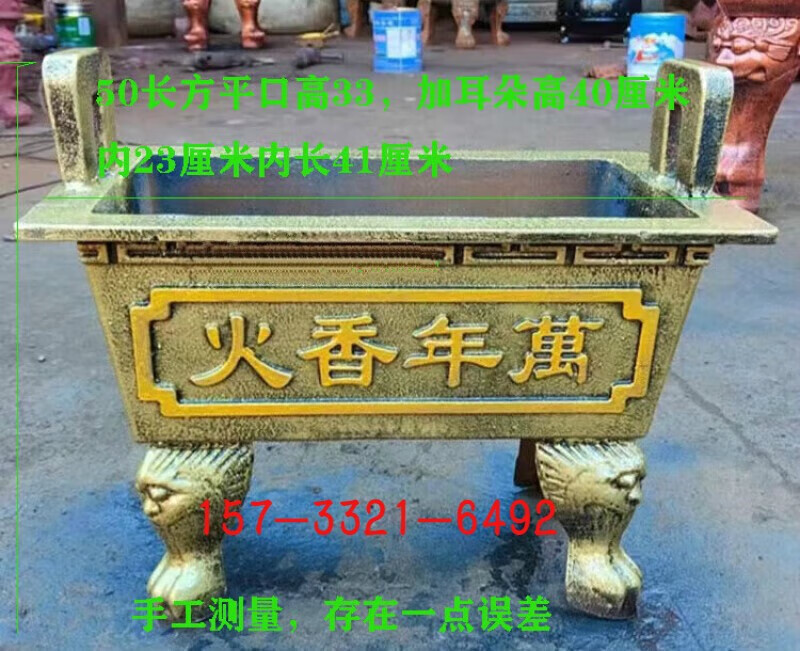 Xiao Xiaobuluo temple cast iron incense burner pure copper large paper burning large incense burner outdoor rectangular temple cast iron 1 meter 2 meters insert incense burner 60 cm long 30 cm wide custom gold