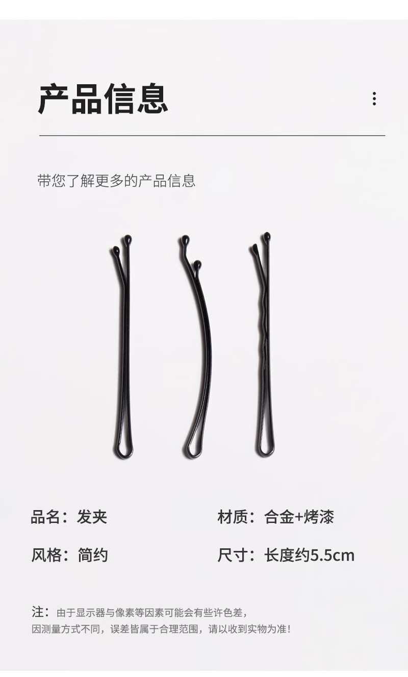 Penning black one-word clip hairpin small black hairpin hair clip broken hair edge clip wavy rigid clip female fixed hair clip one-word clip 5.5CM bag about 50 pieces