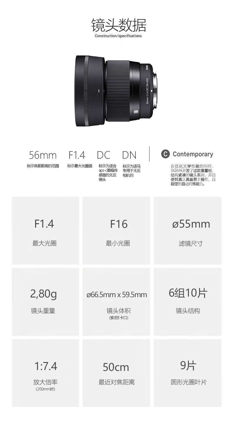 Sigma 56mm F1.4 DC DNe mount half-frame mirrorless single brand new Hong Kong version 56mm F1.4 DC Sony E mount