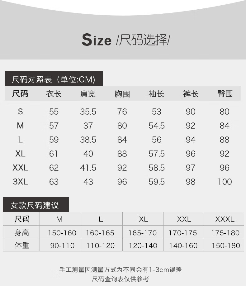 China (cm) 165 / 88-90 170 / 96-98 175 / 108-110 180 / 118-122 185 / 126-130