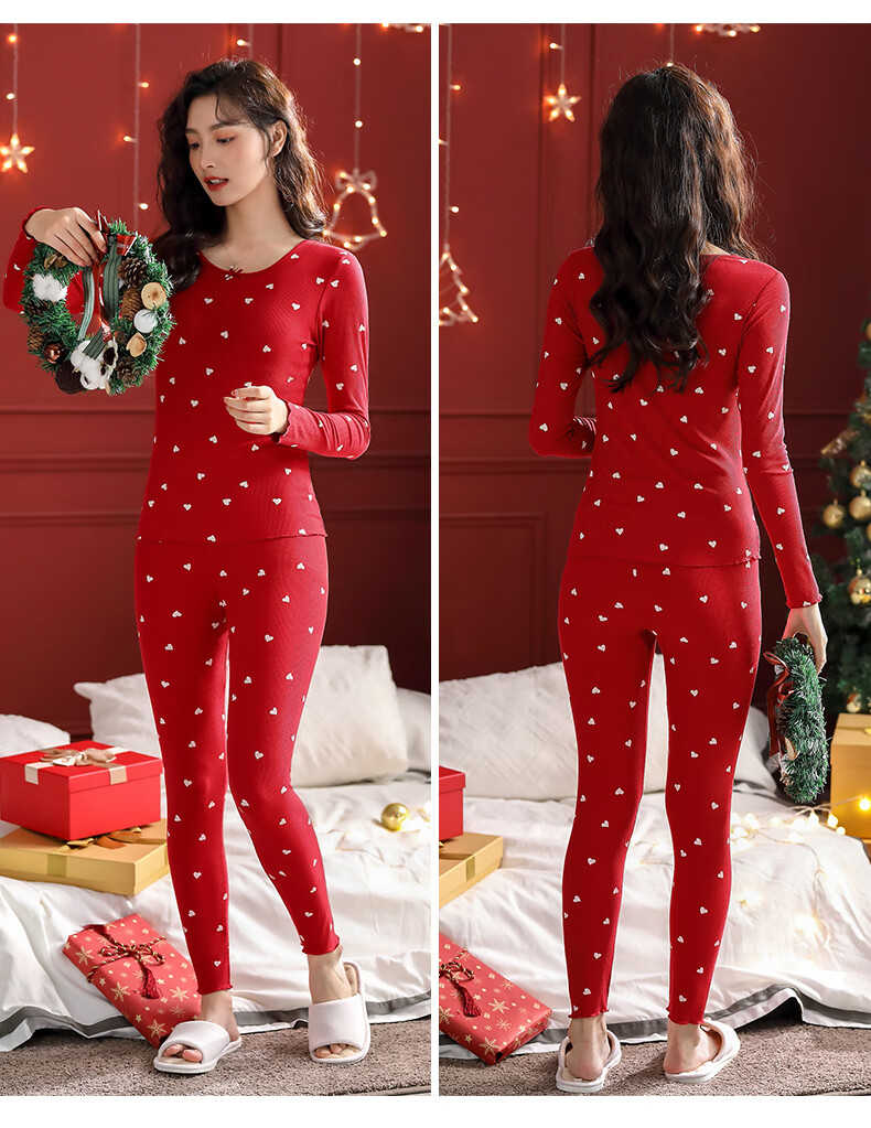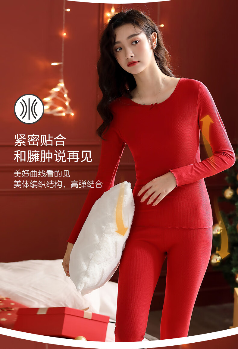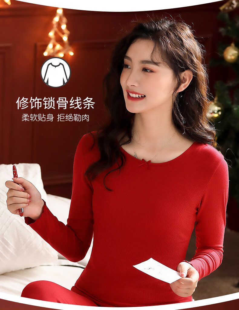 Love Autumn and Summer Autumn Clothes and Autumn Pants Set Women's Warm Clothes Underwear Pure Cotton Autumn Clothes and Autumn Pants Year of the Horse Big Red Animal Year A811078 160 (M) Recommended 90-110 Jin Jin equals 0.5 kg