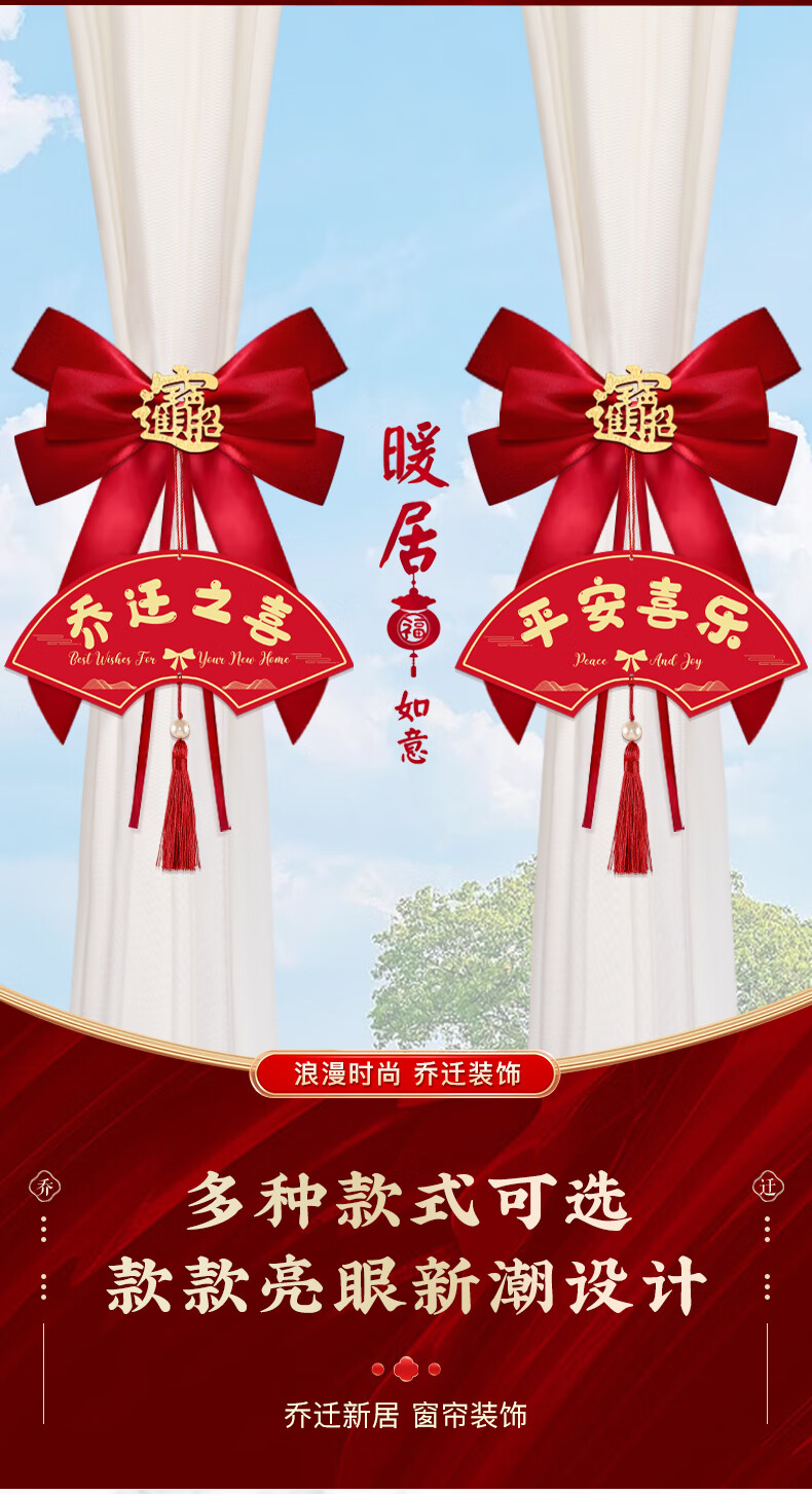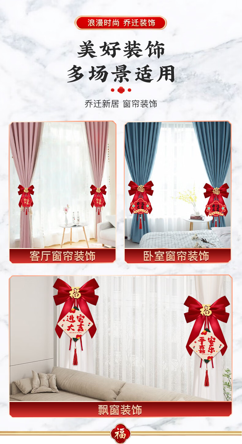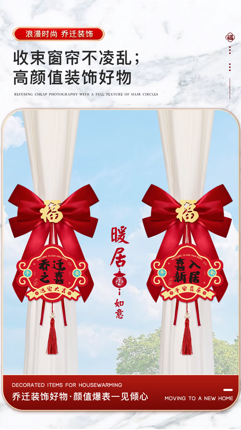 Picture of housewarming, decorative curtain straps, moving ceremony, new home living room, new home decoration, housewarming supplies, a pair of housewarming bow decorative straps