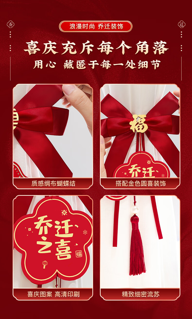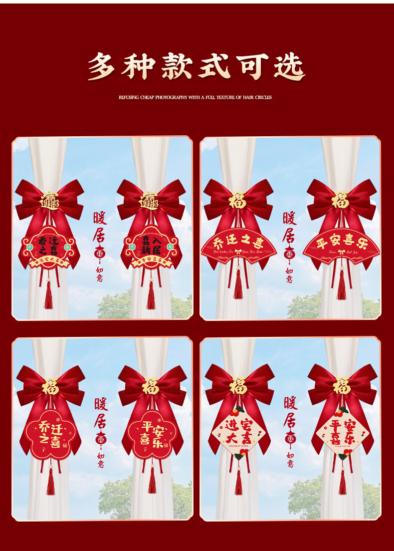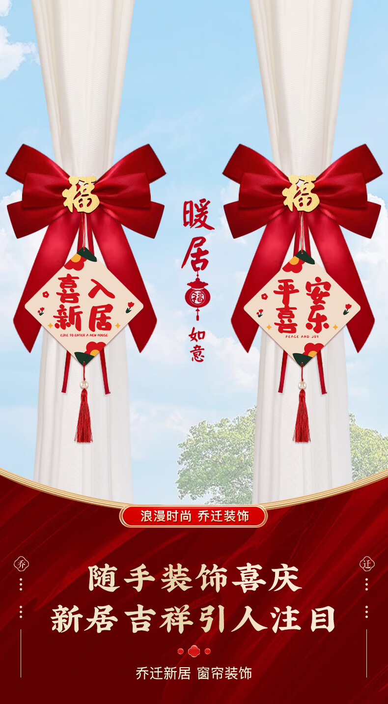Picture of housewarming, decorative curtain straps, moving ceremony, new home living room, new home decoration, housewarming supplies, a pair of housewarming bow decorative straps