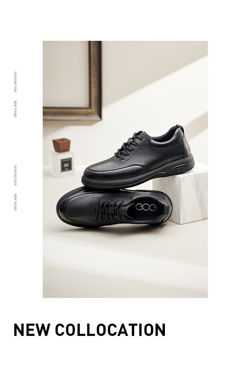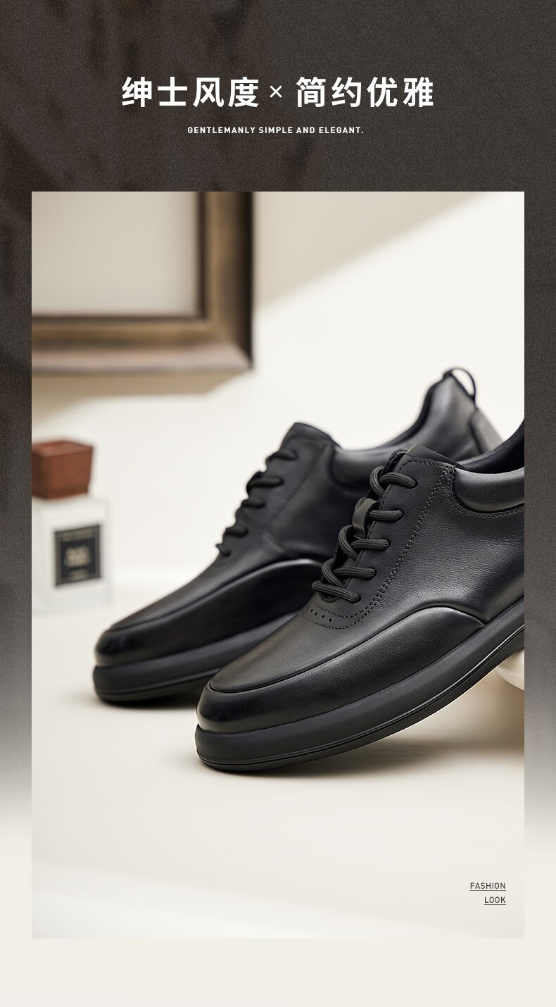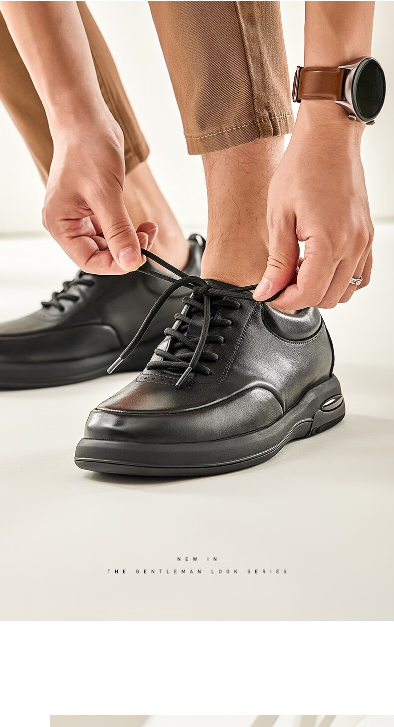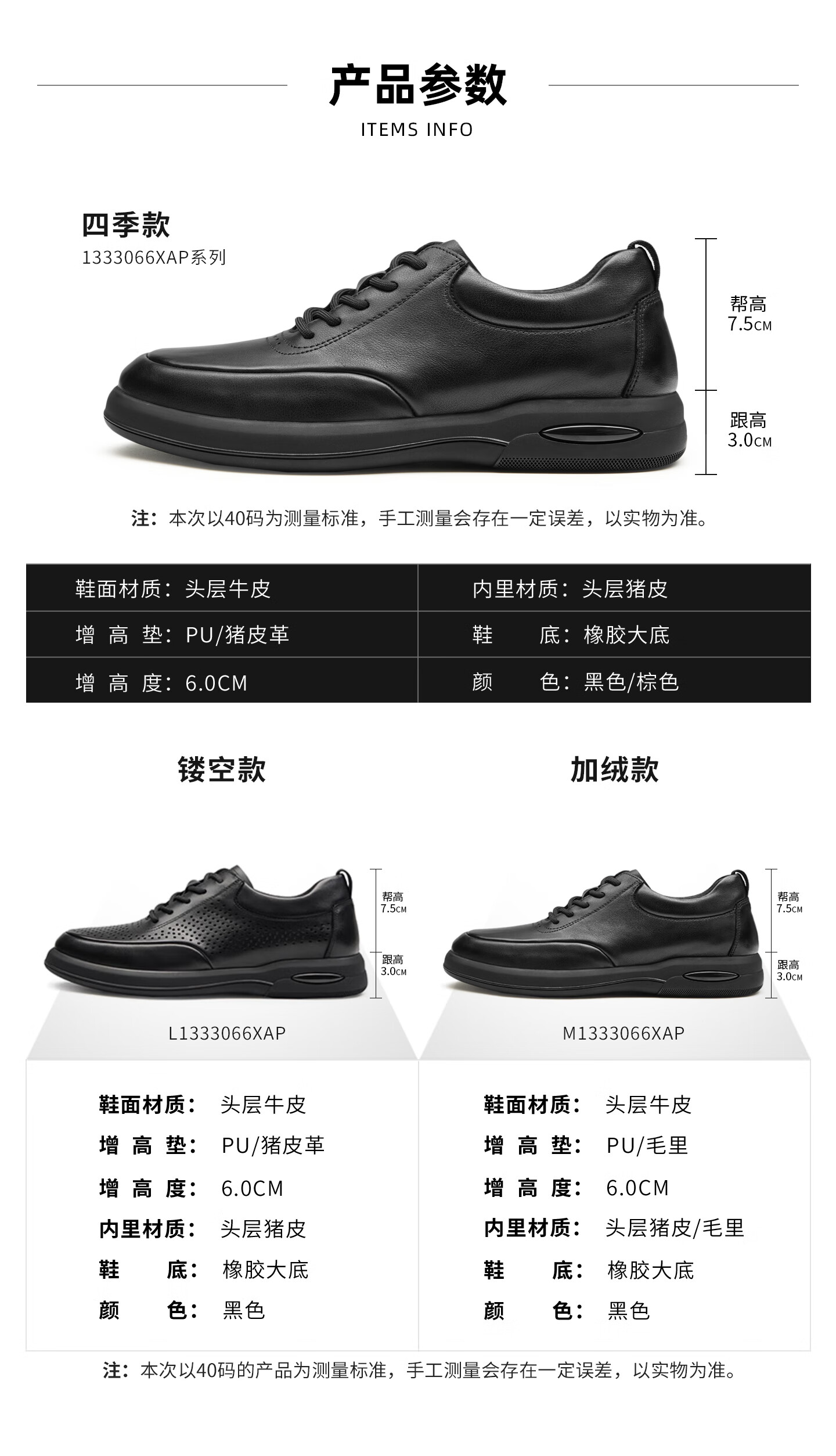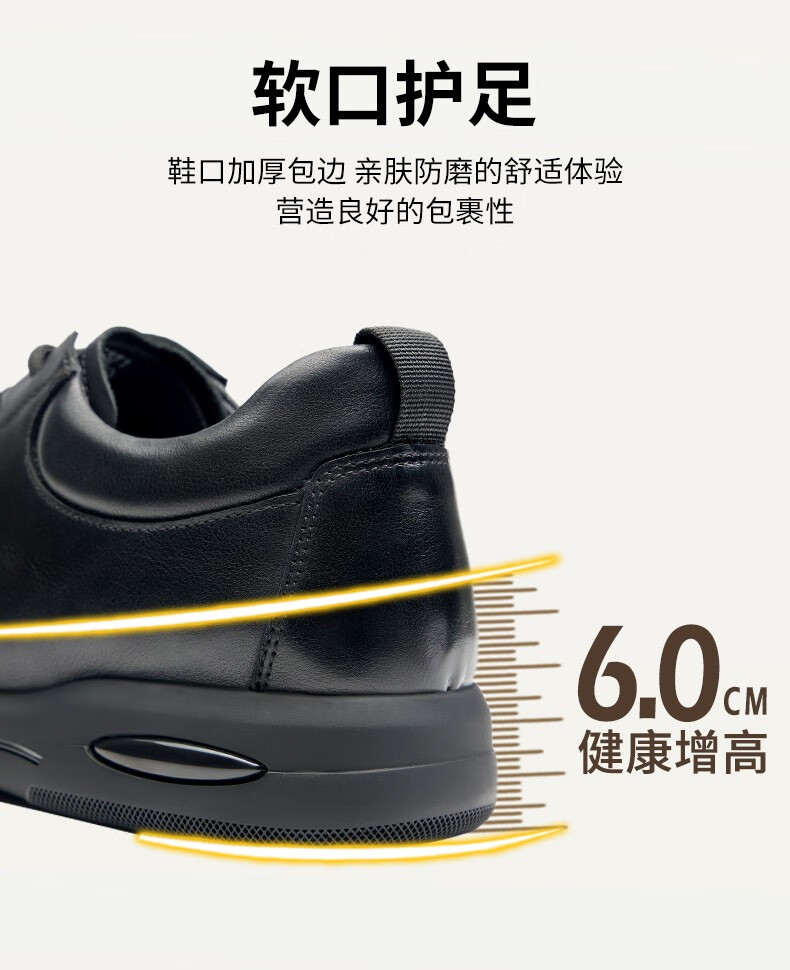 Gao Ge men's height increasing shoes winter business men's shoes plus velvet warm genuine leather commuting shoes soft sole inner height increasing casual leather shoes black height increase 6cm 1333066XAP 39