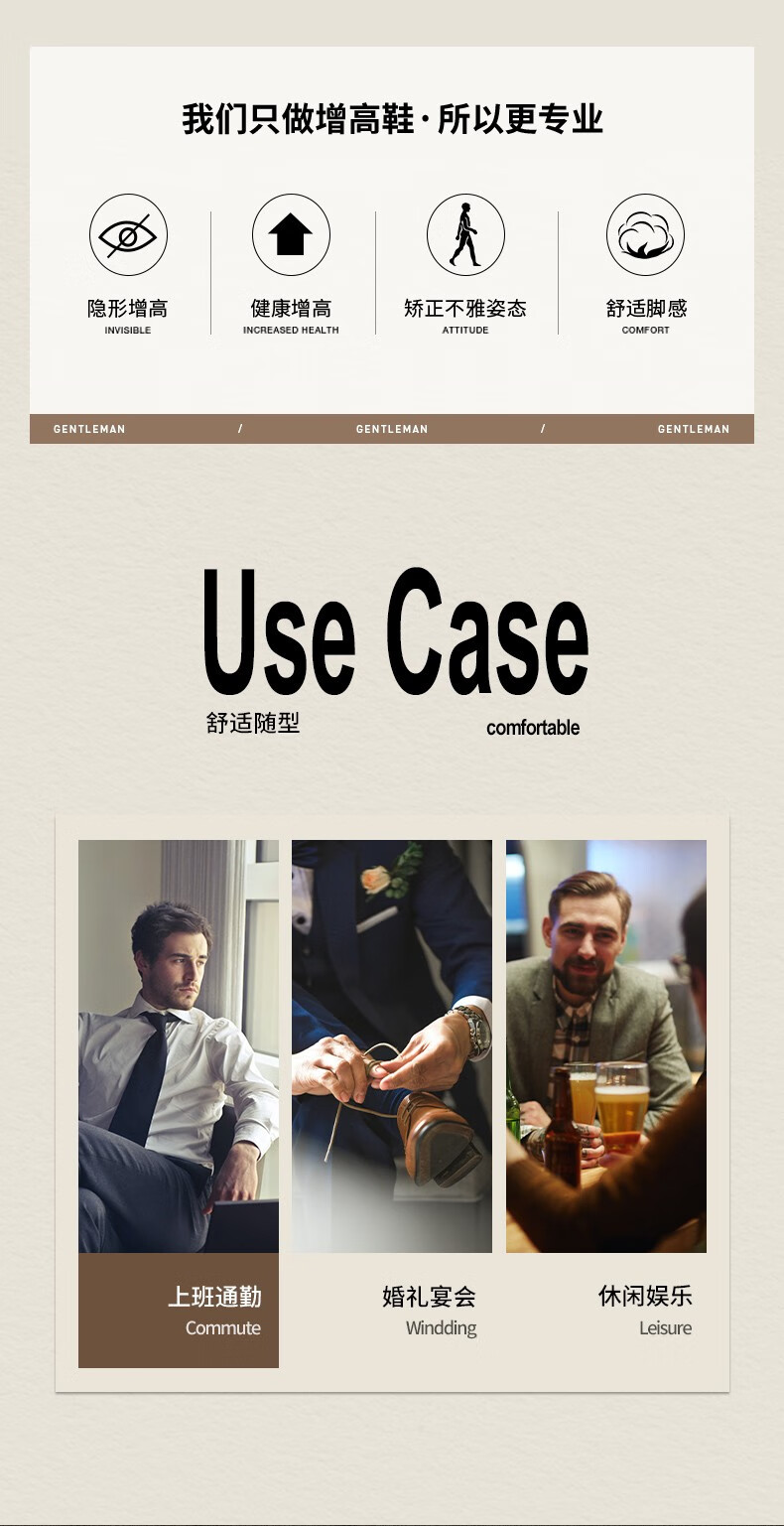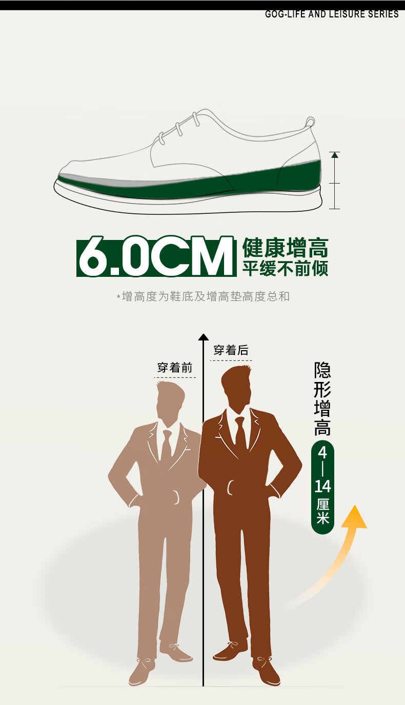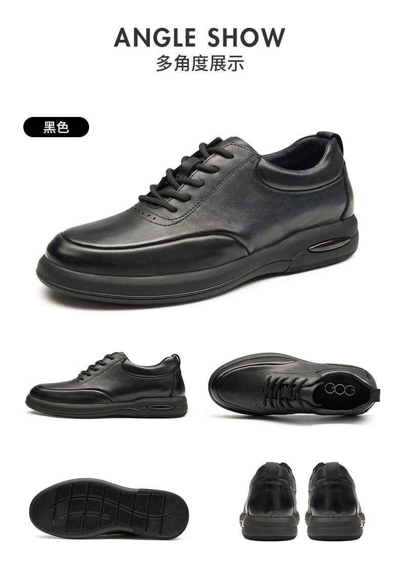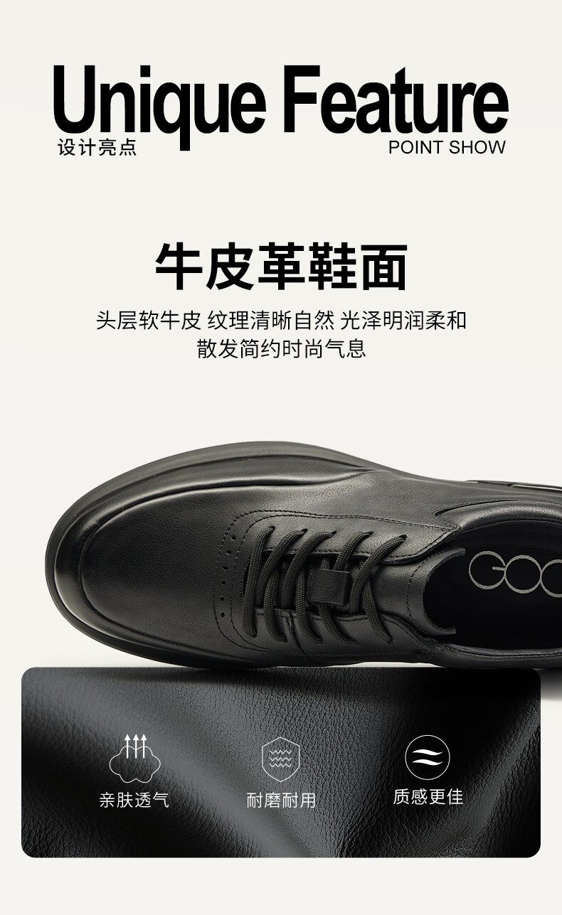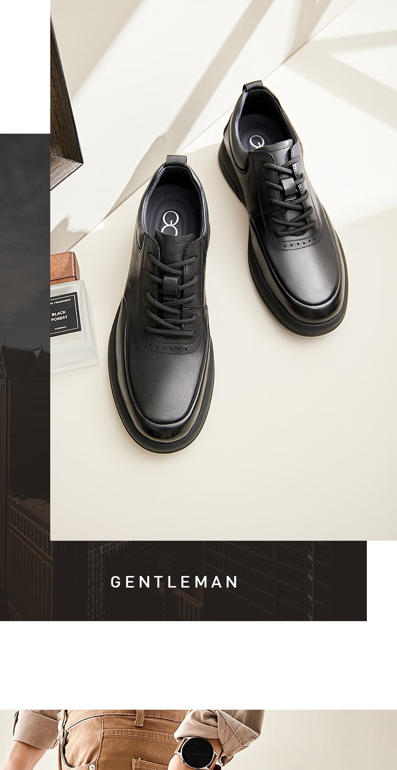Gao Ge men's height increasing shoes winter business men's shoes plus velvet warm genuine leather commuting shoes soft sole inner height increasing casual leather shoes black height increase 6cm 1333066XAP 39