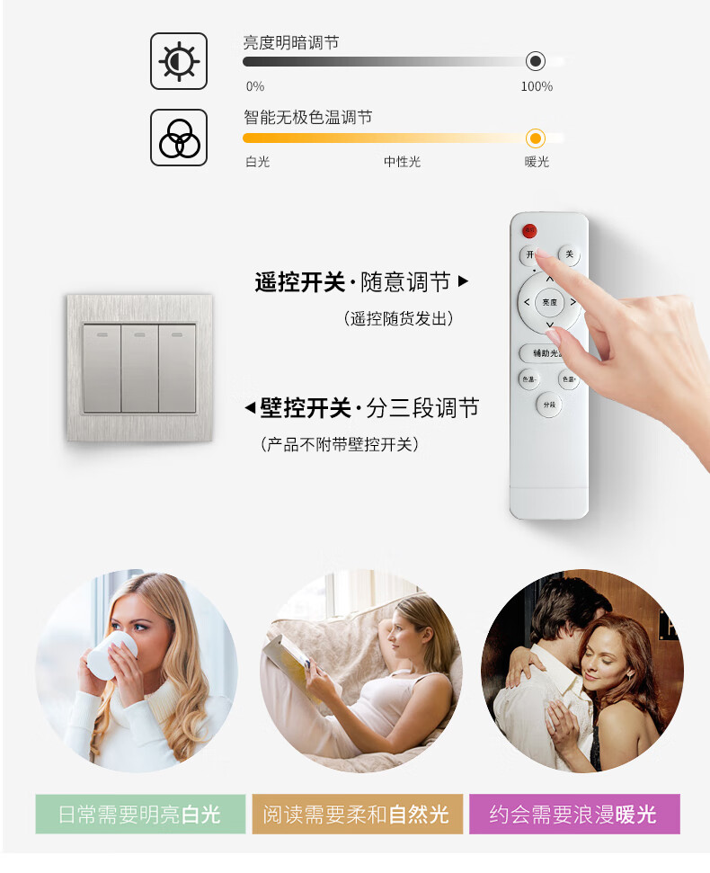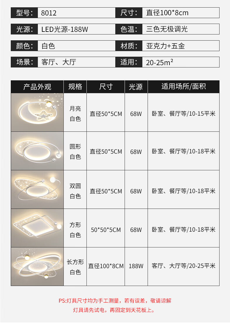 Fanji living room lamp modern minimalist atmosphere bedroom lamp dining room lamp whole house package combination Guangdong Zhongshan lamp ceiling lamp Moon 50CM supports remote control + wall switch