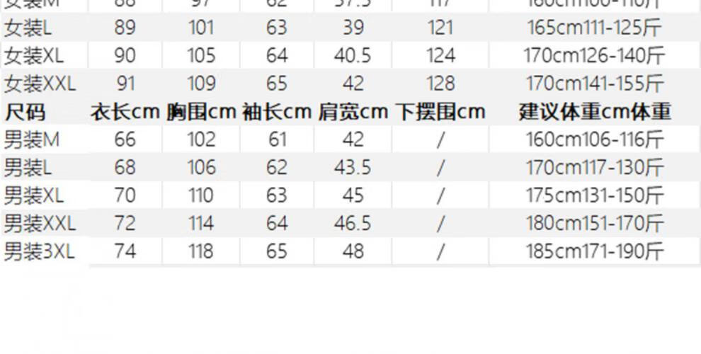 China (cm) 160-165/84-86 165-170 / 88-90 167-172 / 92-96 168-173 / 98-102 170-176 / 106-110