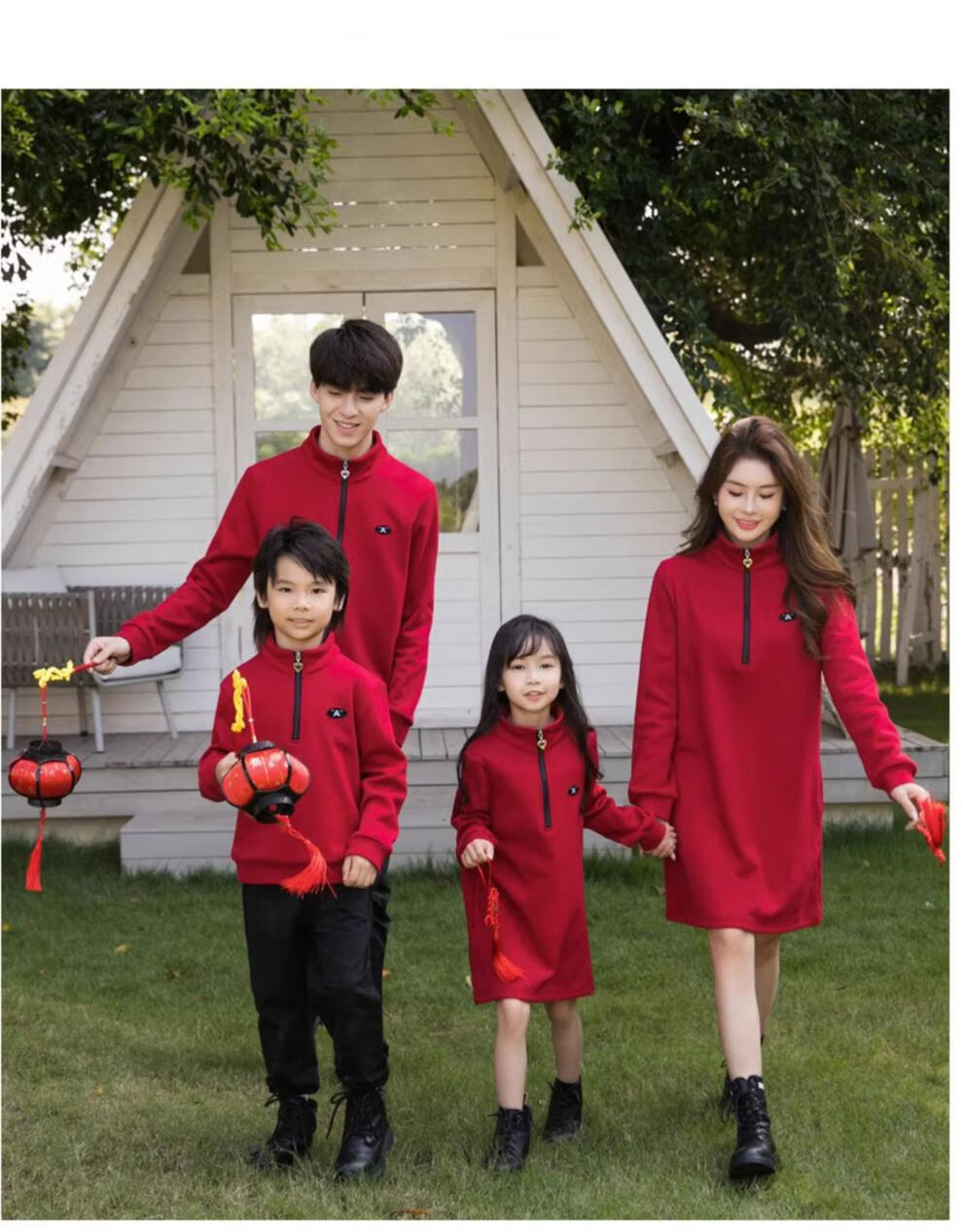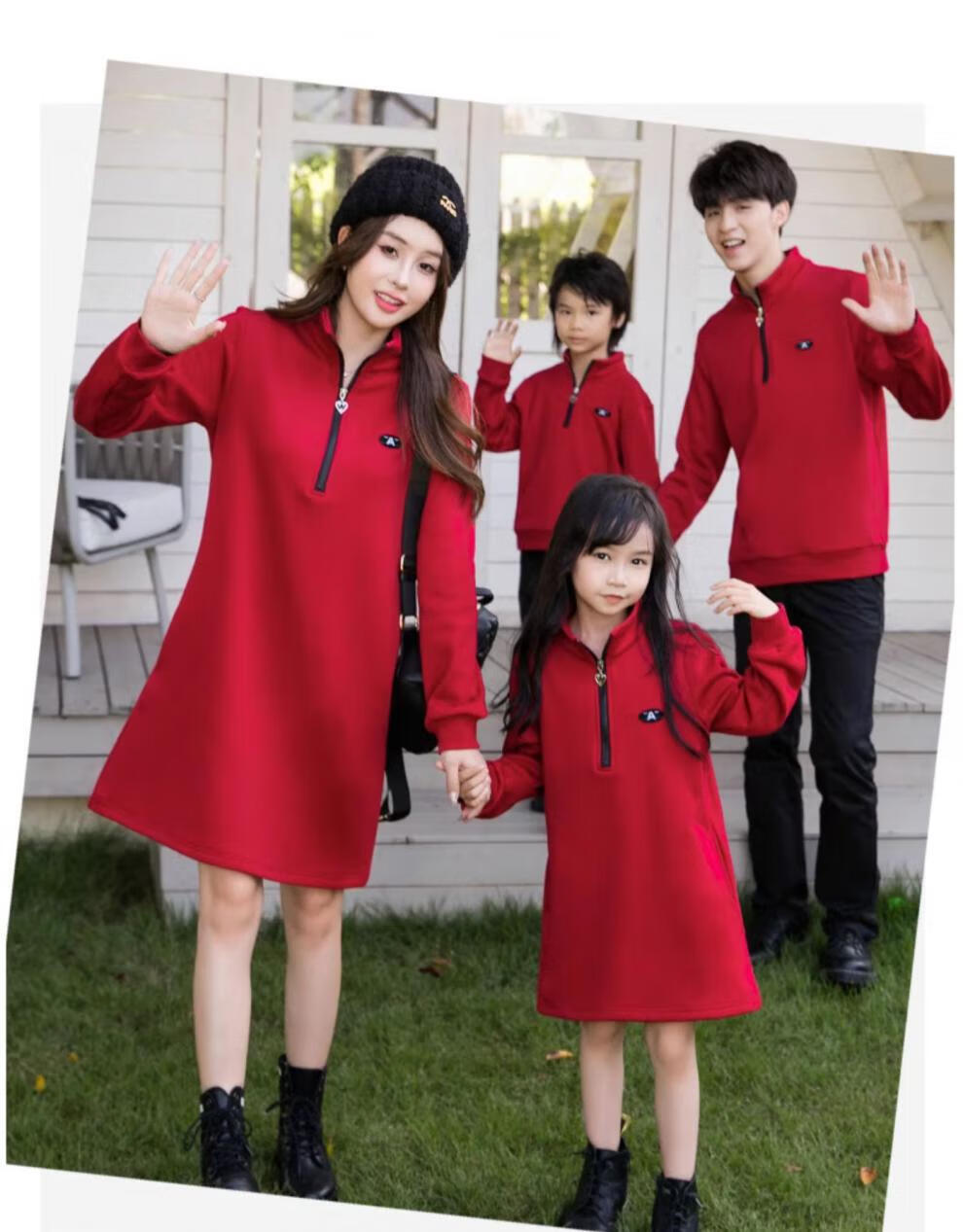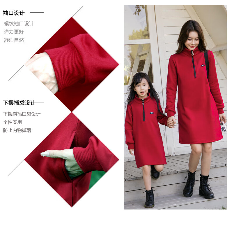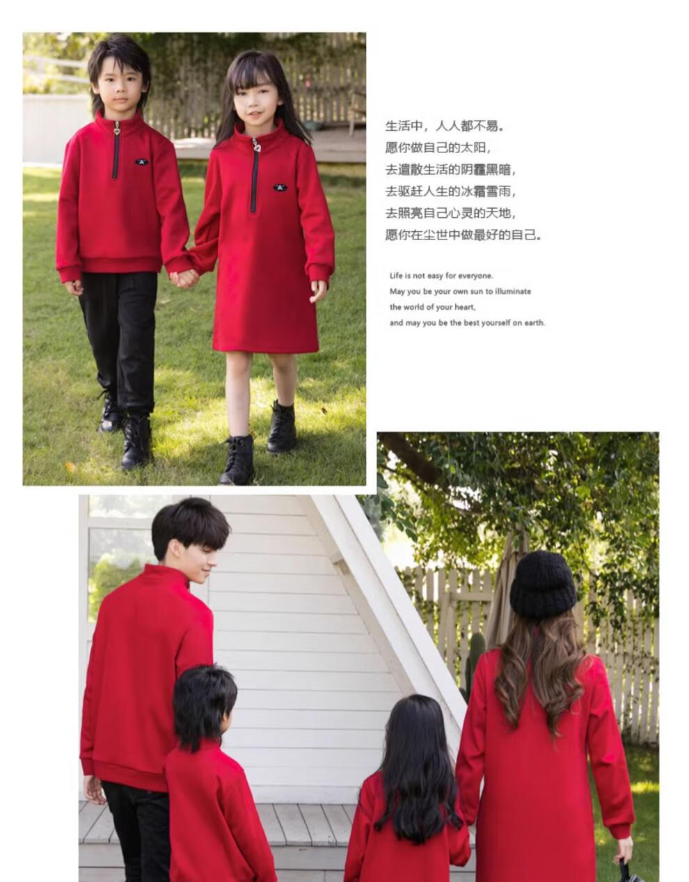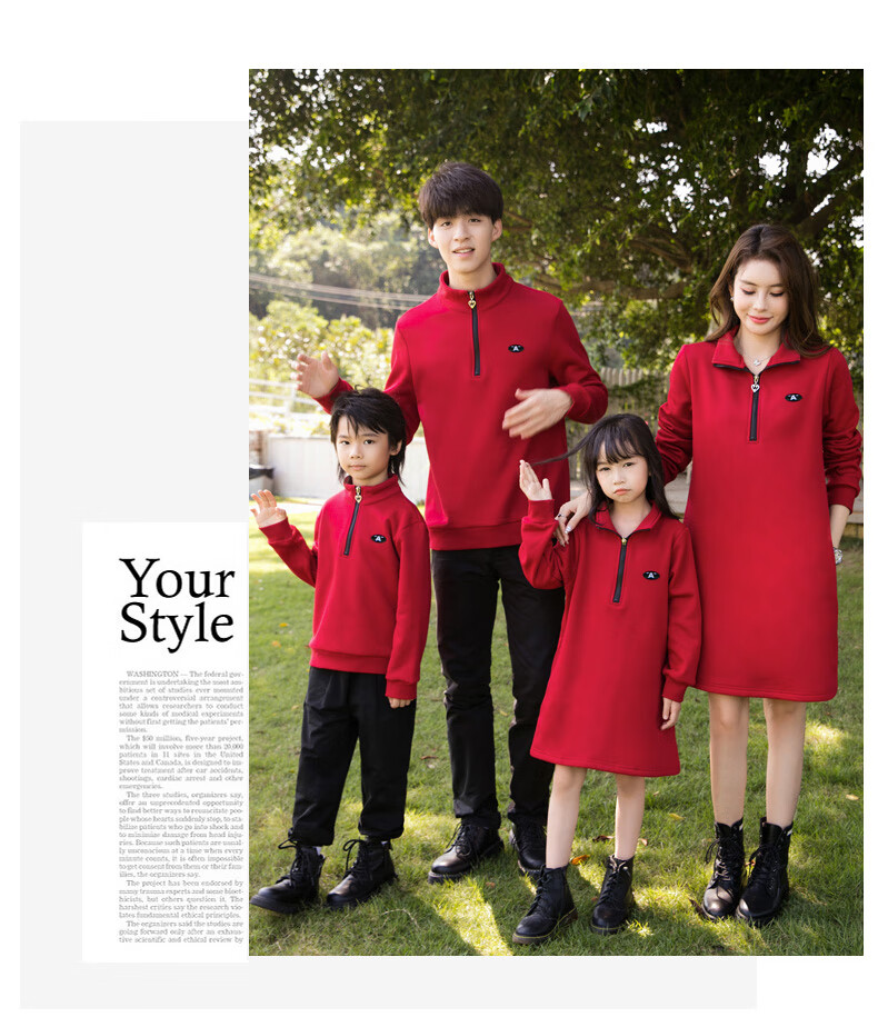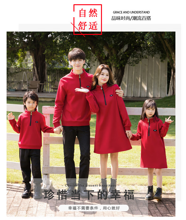 G.duck2025 Year of the Dragon New Year parent-child outfit plus velvet sweatshirt autumn and winter coat family of three and four family New Year greetings clothes single jacket (dark red) 130 boys