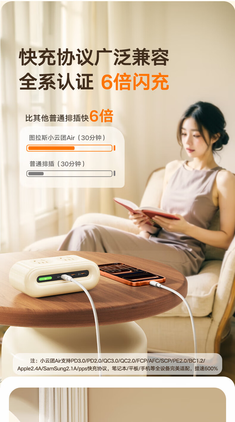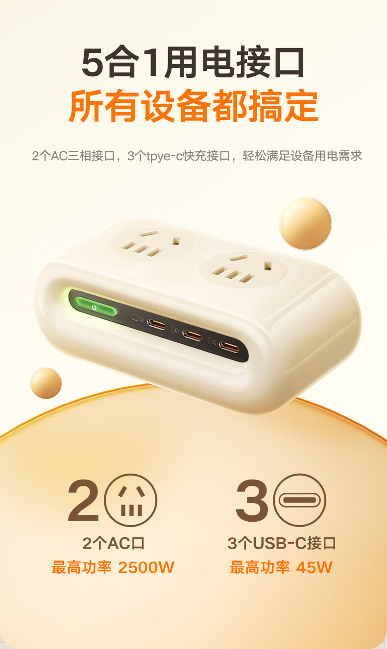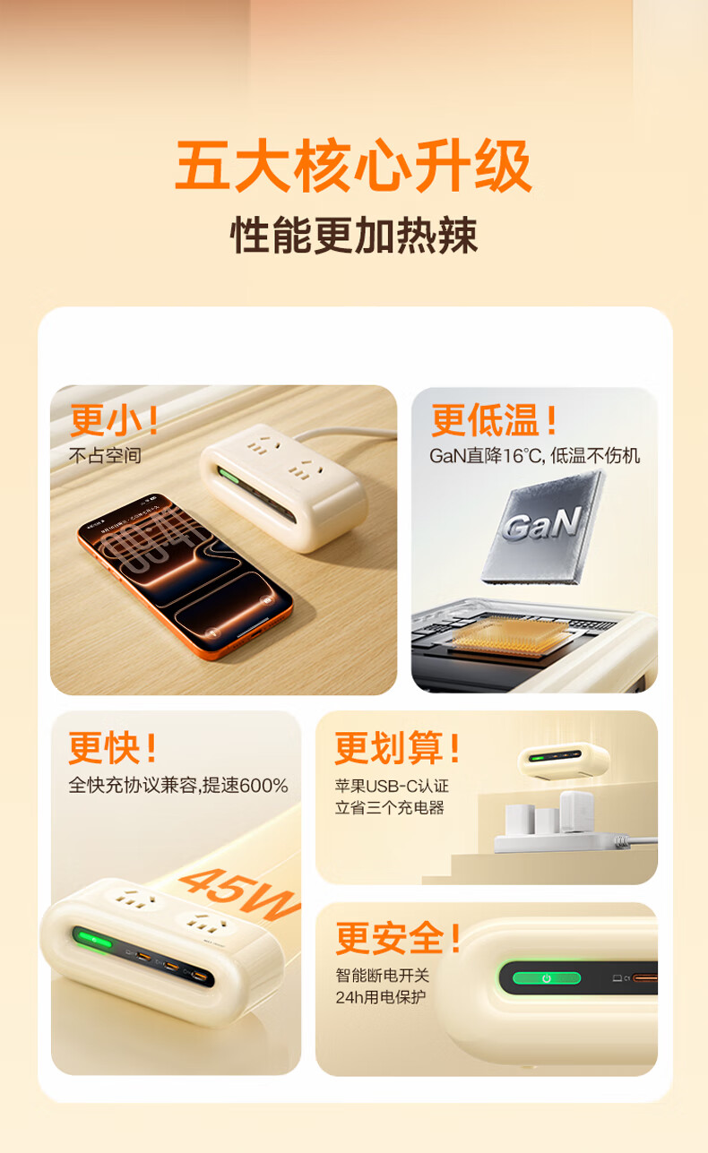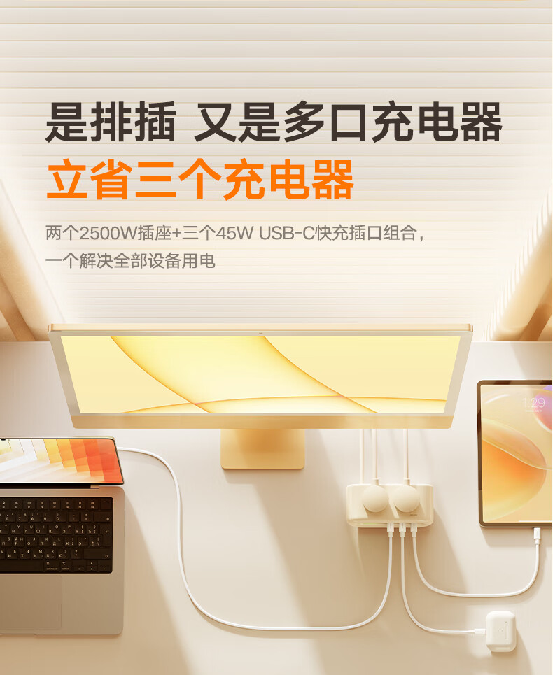Tulas Xiaoyuntuan Air 45W top with fast charging Apple 17 charger gallium nitride usb-c smart desktop strip/charger 2-in-1 suitable for 16 Huawei and Xiaomi hot color cream yellow