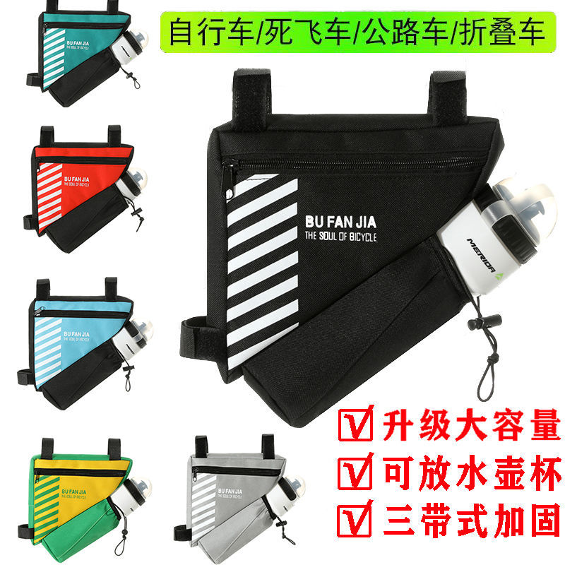 MieLanat* bicycle water bottle cage, mountain bike water bottle bag, bicycle triangular square bag, road bike tube front beam frame tool, triangular bag - can hold water bottle, sky blue 20*18 large capacity