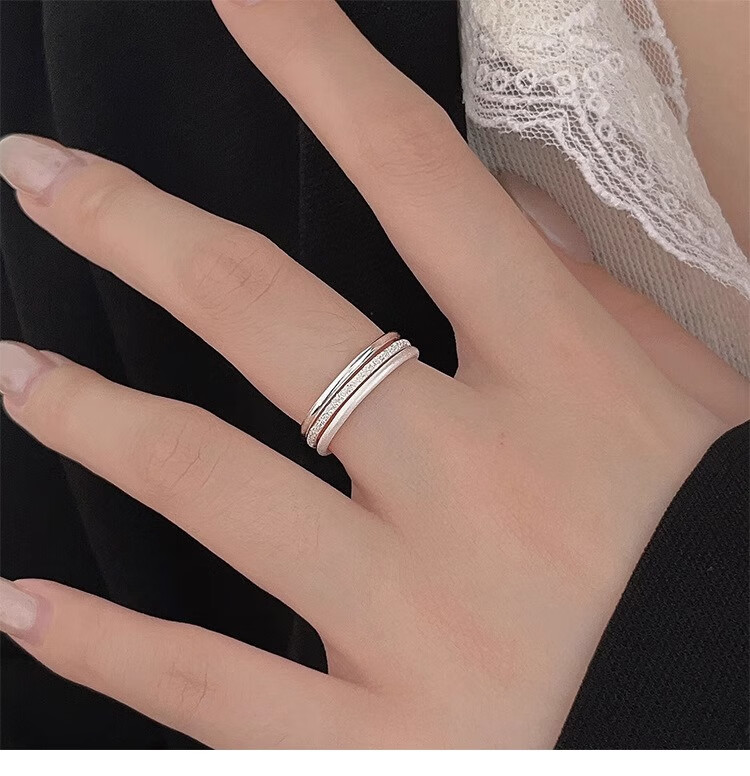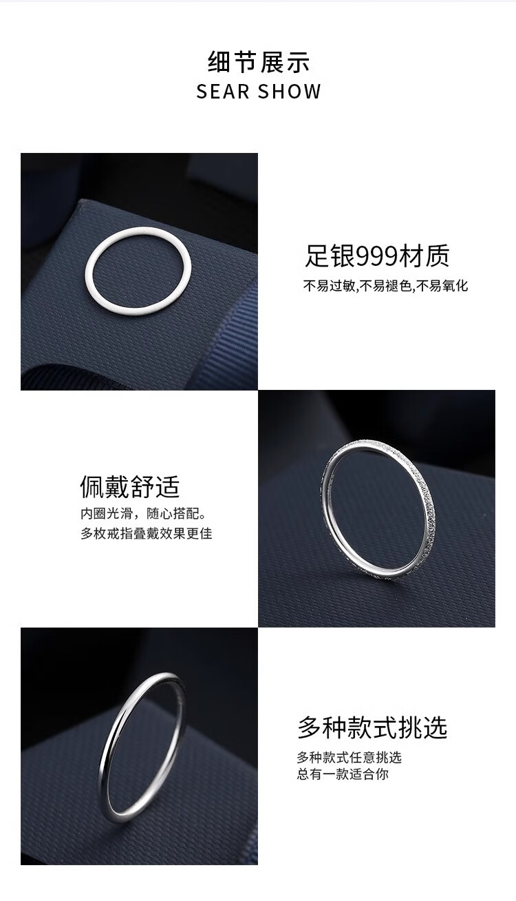 China Gold (CHINA GOLD) S Pure Silver Three Lives Three Worlds Ring Ring for Women Light Luxury High-end Valentine's Day Birthday Gift for Girlfriend and Wife Three Lives Three Worlds Ring Three-piece Set 8 Rings Ancient Method + Nail Sand + Smooth 8 Rings