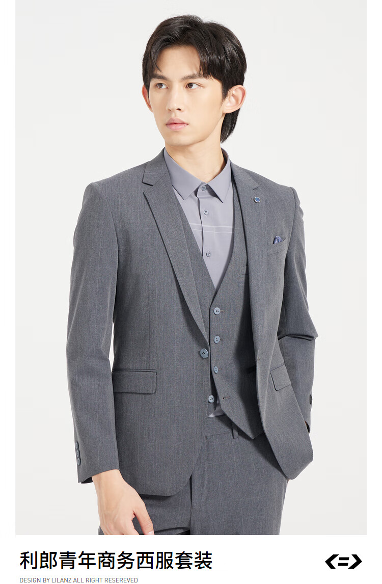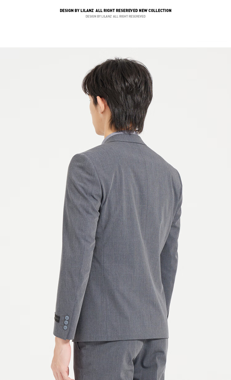 Lilang Light Fashion Men's TR Dark Plaid New Suit Suit Men's Youth Business Commuting Suit Three-piece Set Blue Gray 165A