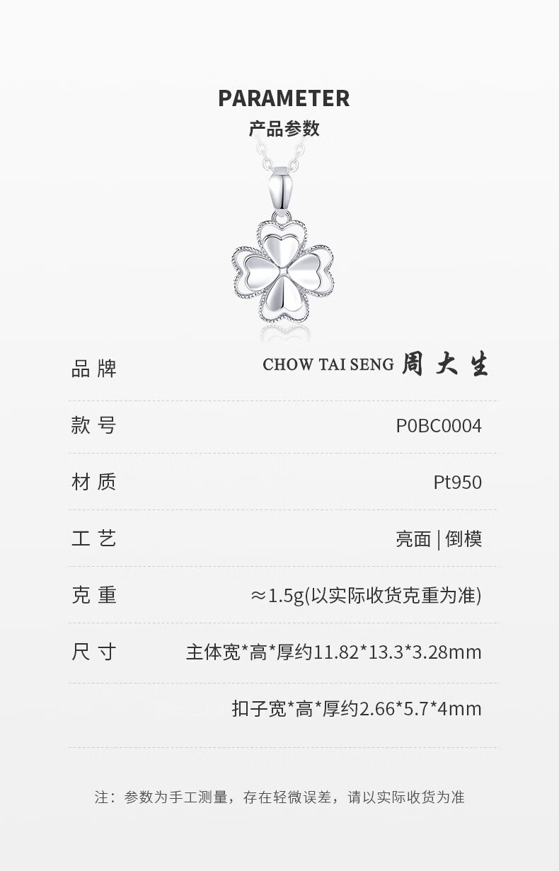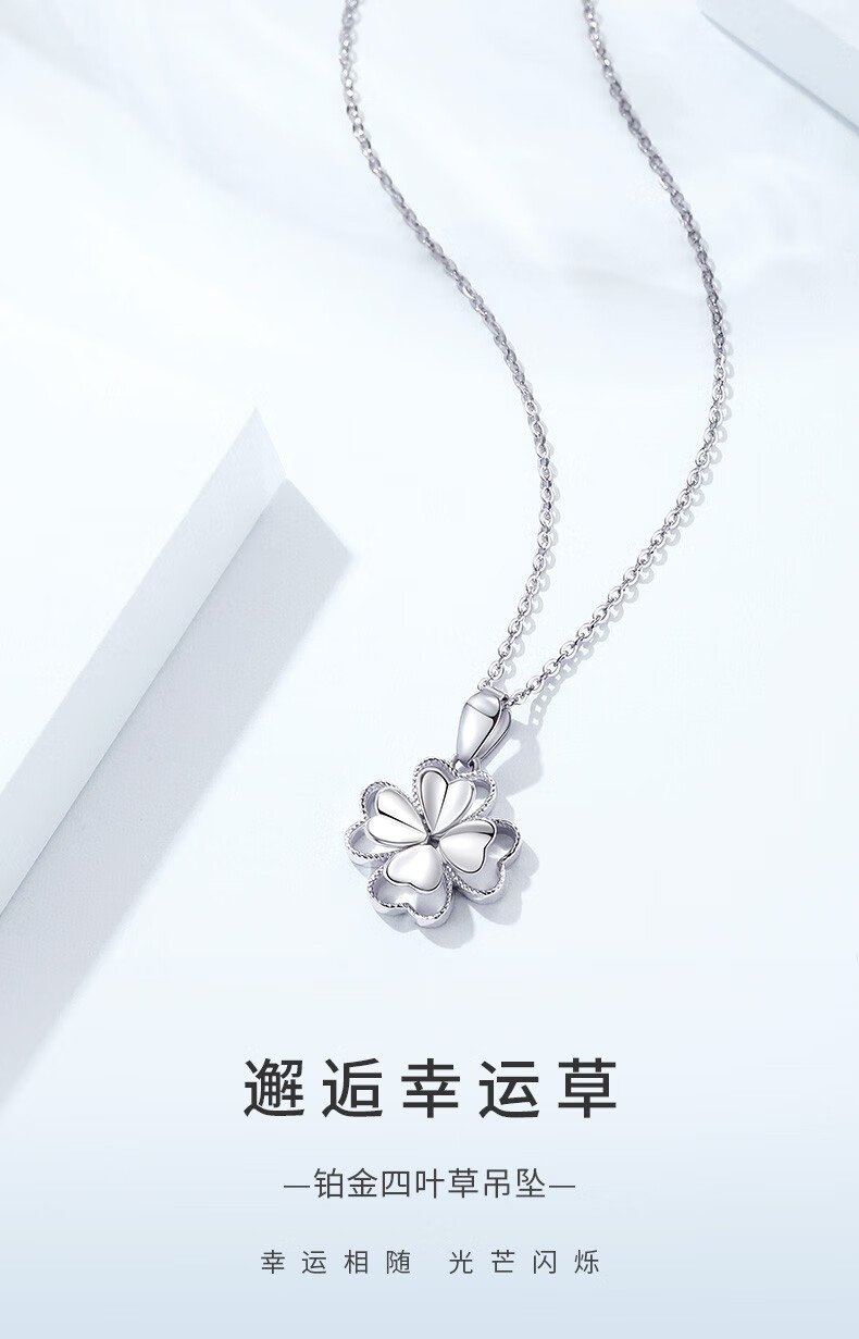 Zhou Taisheng platinum four-leaf clover pendant female pt950 pendant birthday gift for girlfriend four-leaf clover pendant - free white silver chain 2.05g