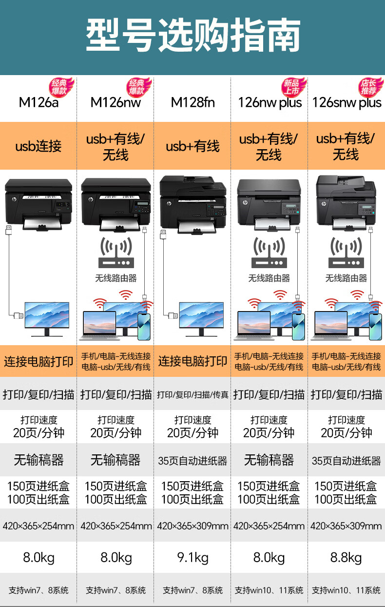 HP printer M126a/126nw/126snw plus/128fn black and white laser home enterprise office printer print copy scan multi-function machine M126nw (print copy scan + wired/wireless network) official standard configuration (national joint warranty)