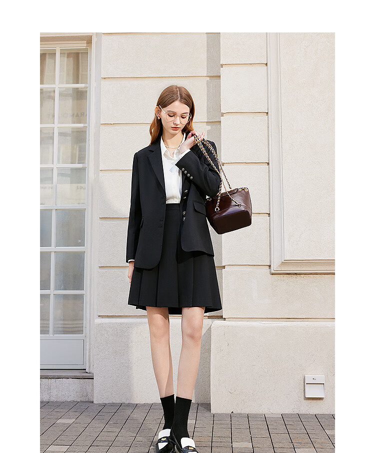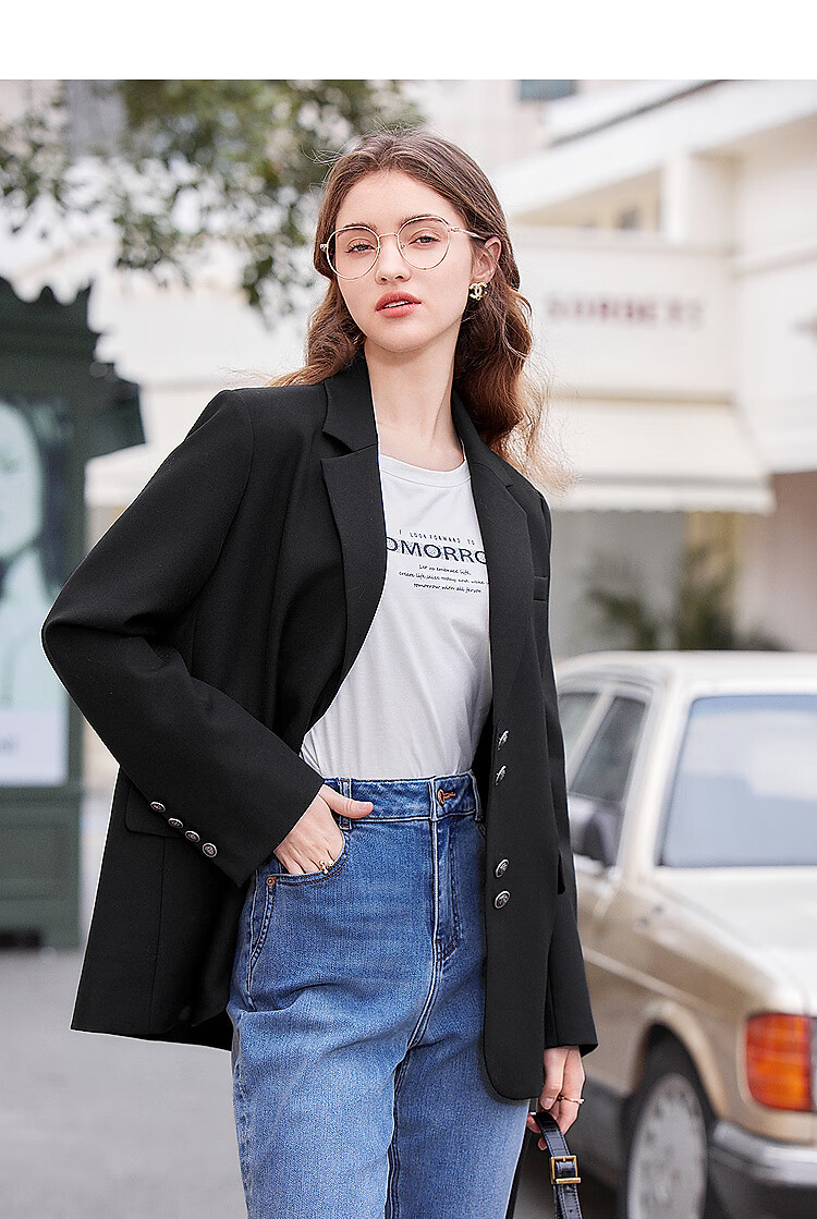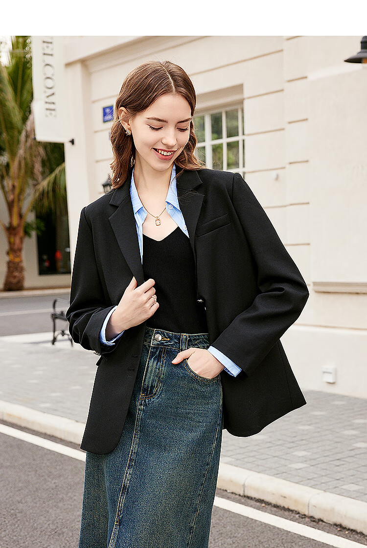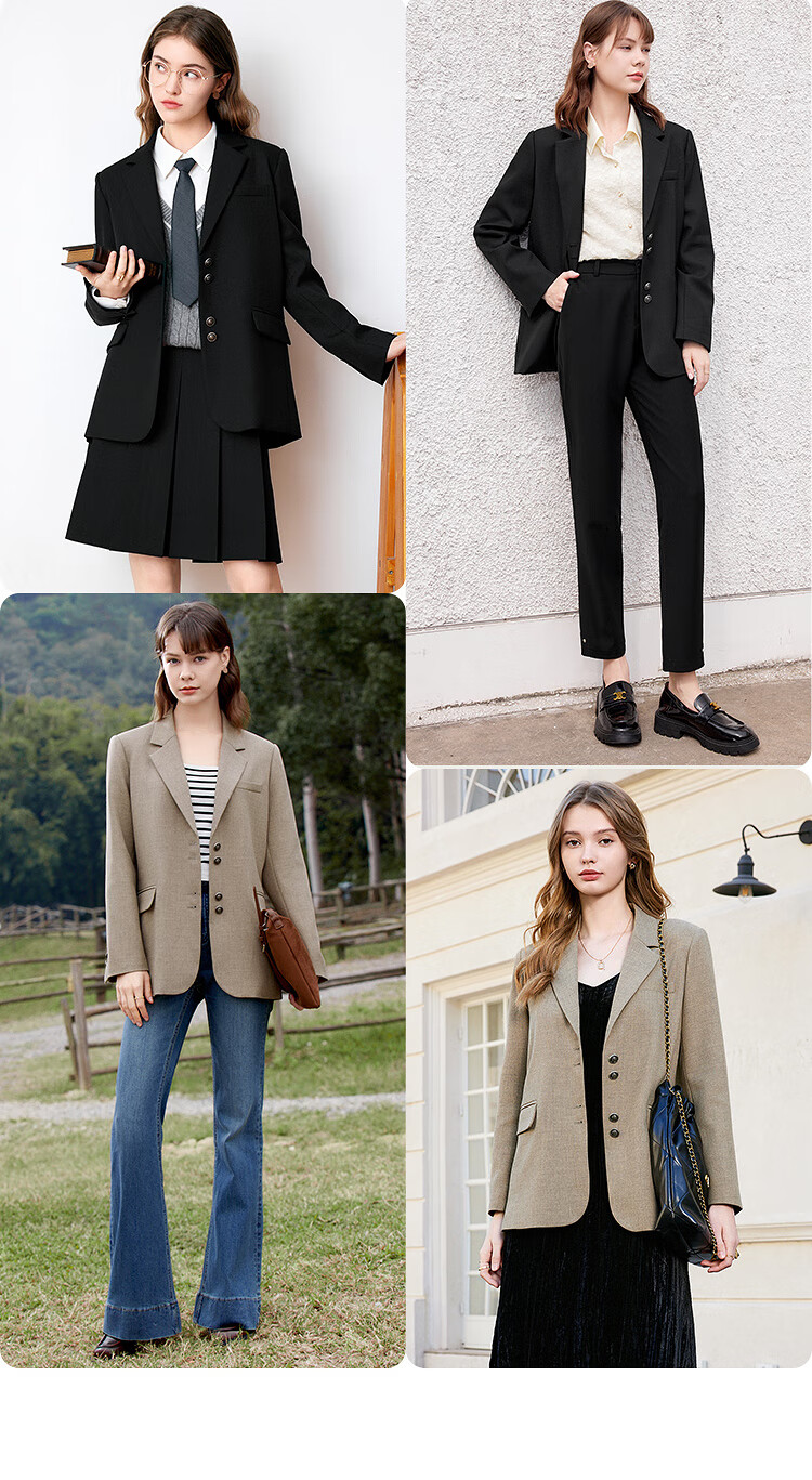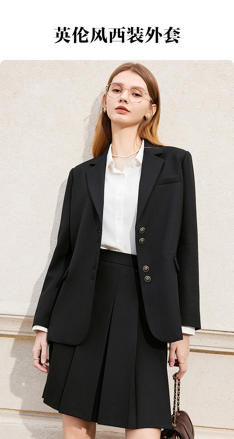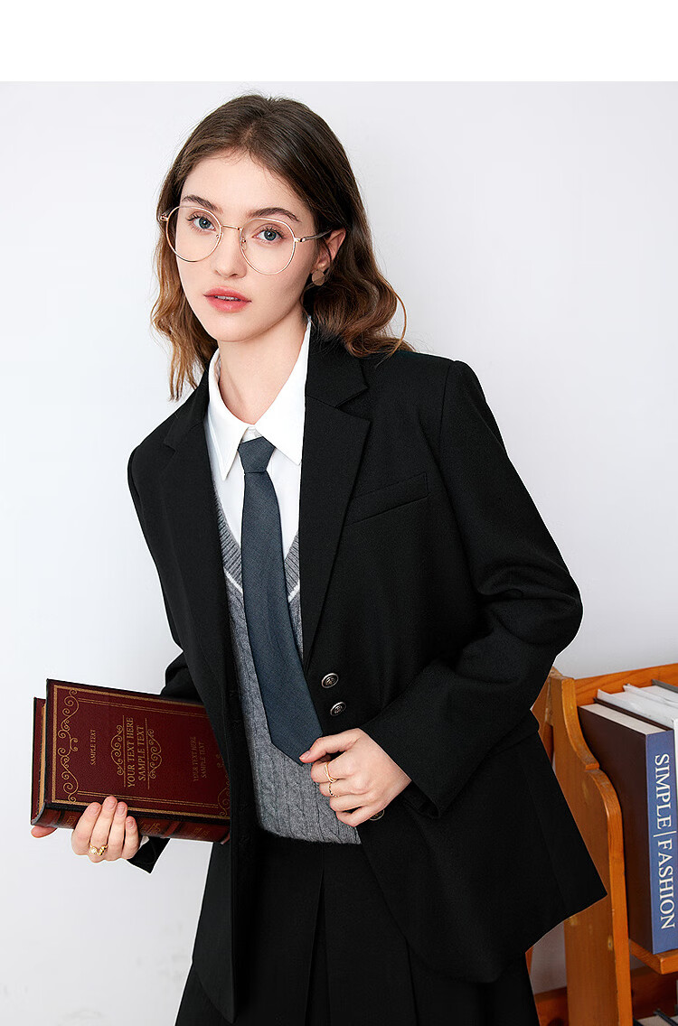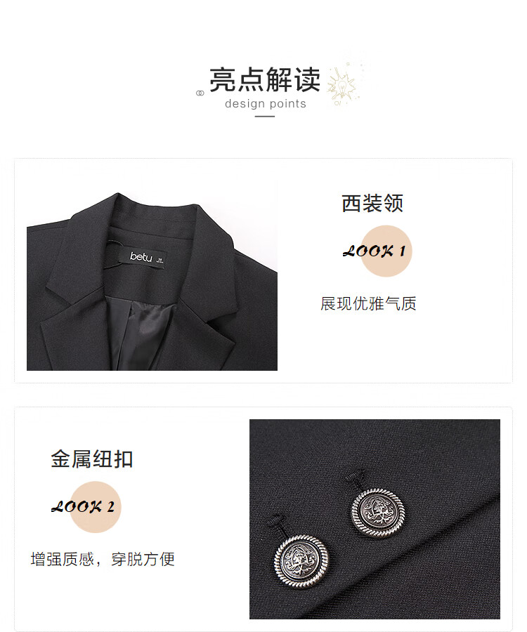 Betu women's spring new suit temperament small suit jacket college style commuter suit 2401T37 black L