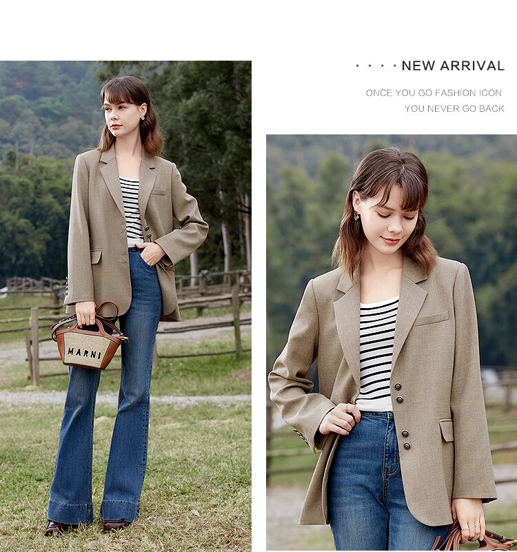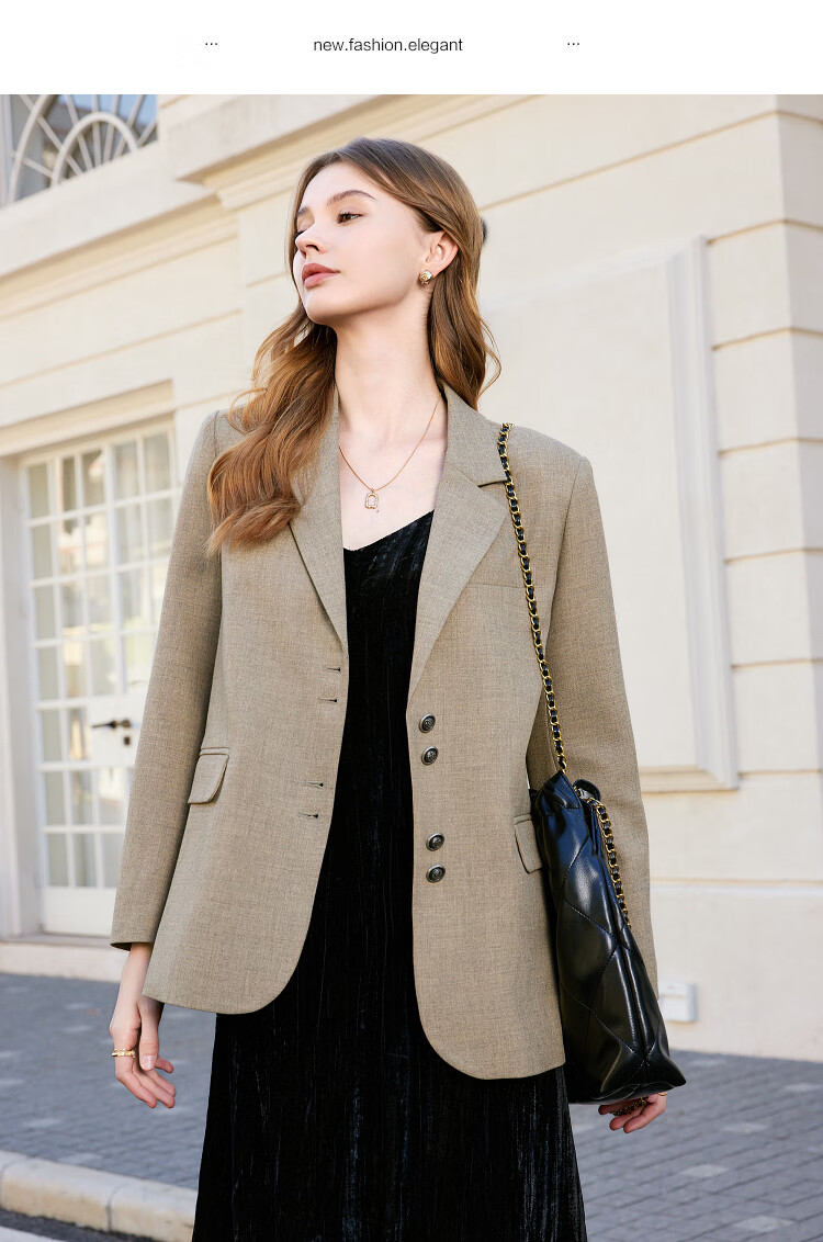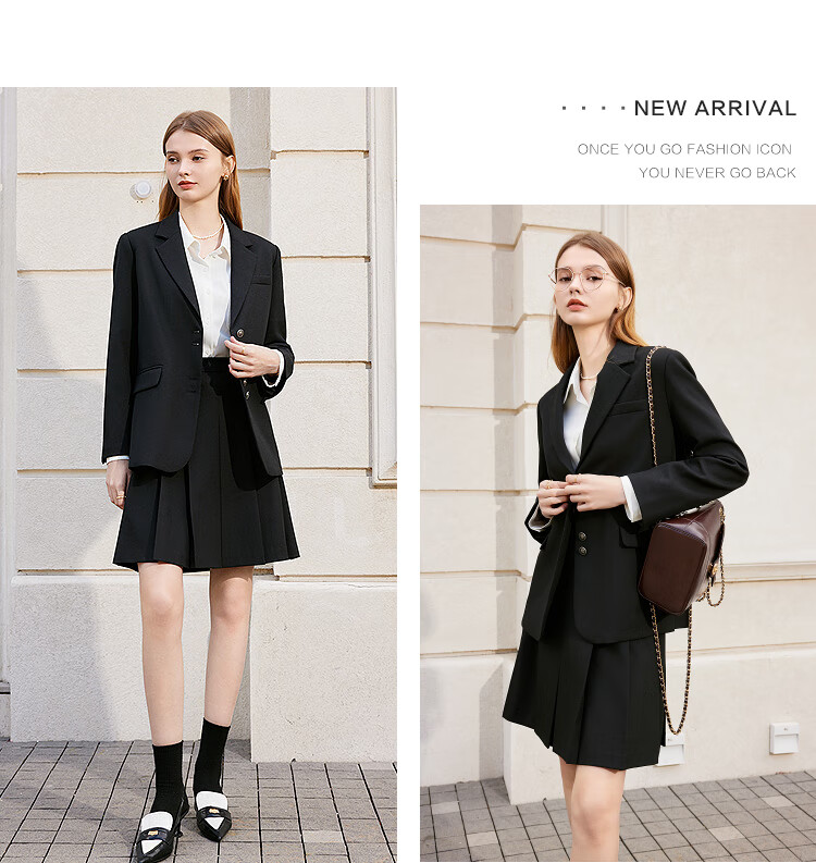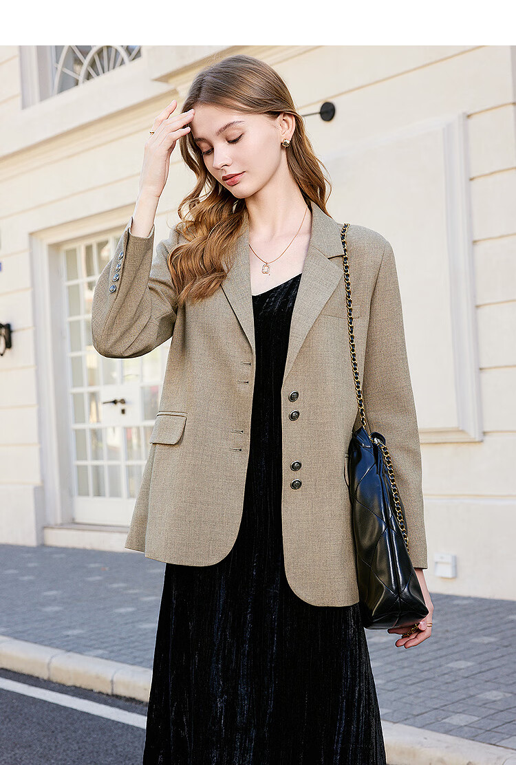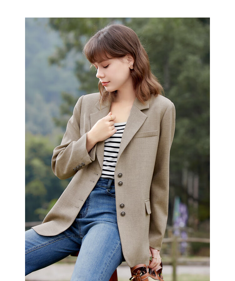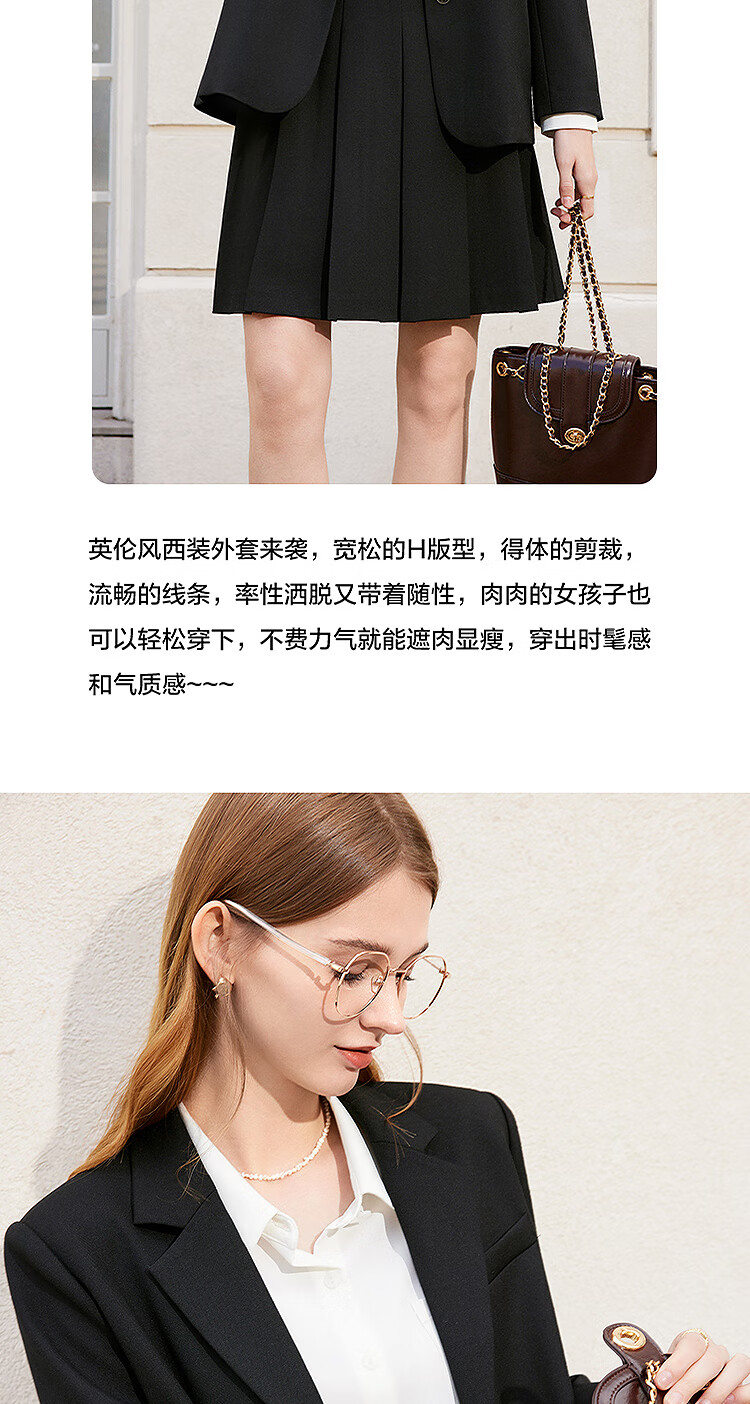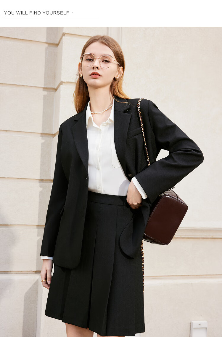 Betu women's spring new suit temperament small suit jacket college style commuter suit 2401T37 black L