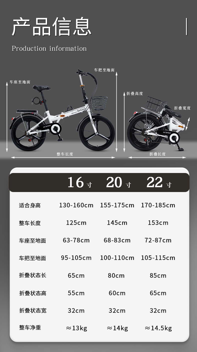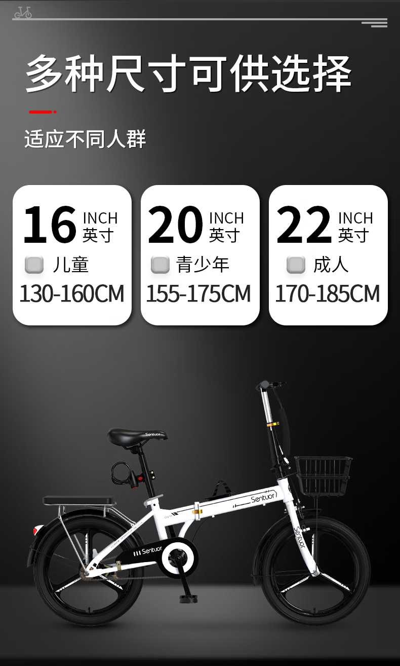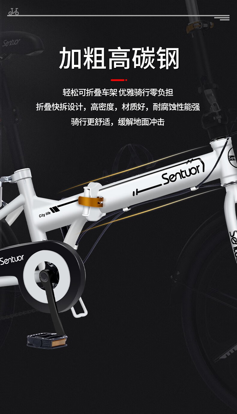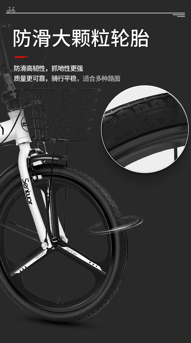 Baishi Shield Foldable Bicycle Women's Ultra-Light Portable Student Bicycle Mini Variable Speed ​​Small New Adult Adult Flagship - Spoke Black Single Speed ​​20 Inch
