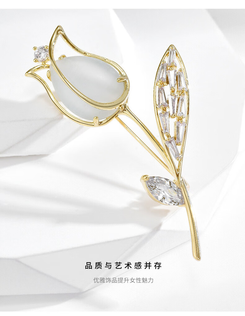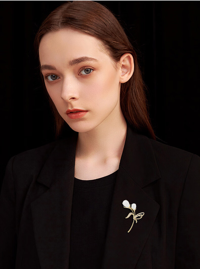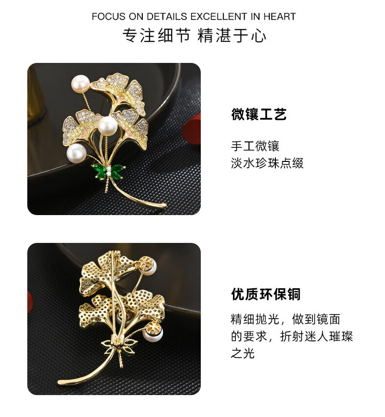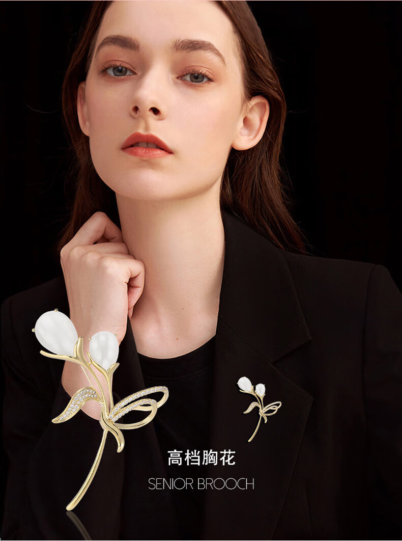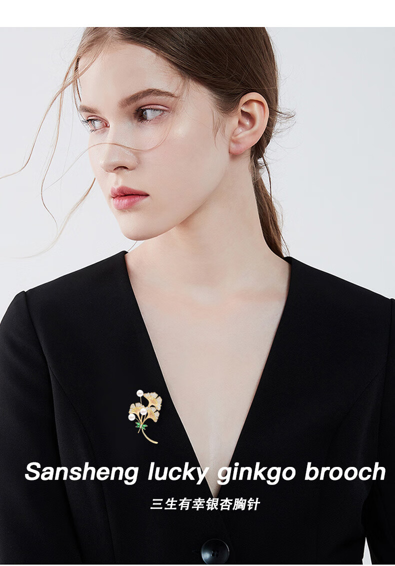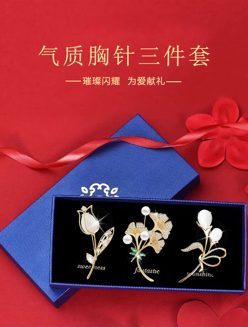Gunai brooch, high-end women's exquisite niche corsage gift box, light luxury and elegant pin, silk scarf button, birthday gift for women, practical Sansheng apricot brooch three-piece set