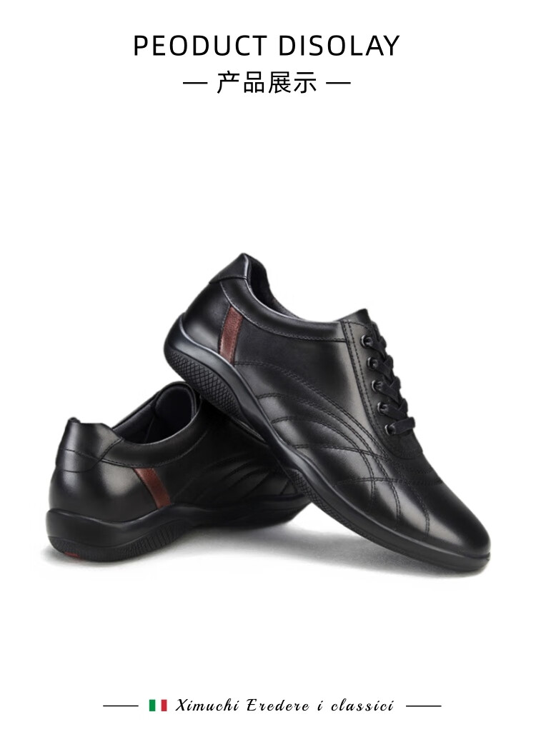 XIMUCHI brand business casual leather shoes for men, comfortable soft-soled sports shoes for men, versatile inner height increasing large size shoes for men, black 41 standard leather shoe size