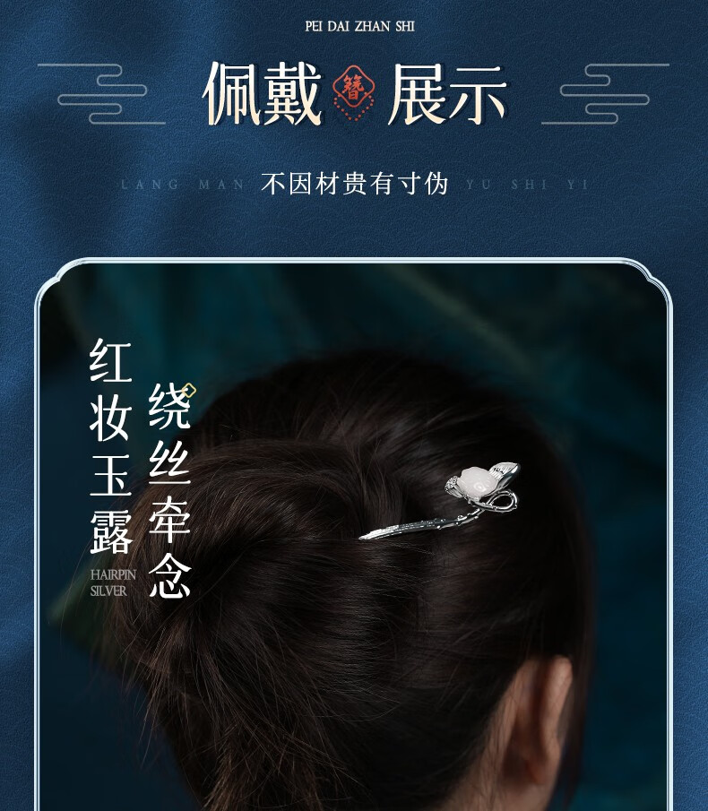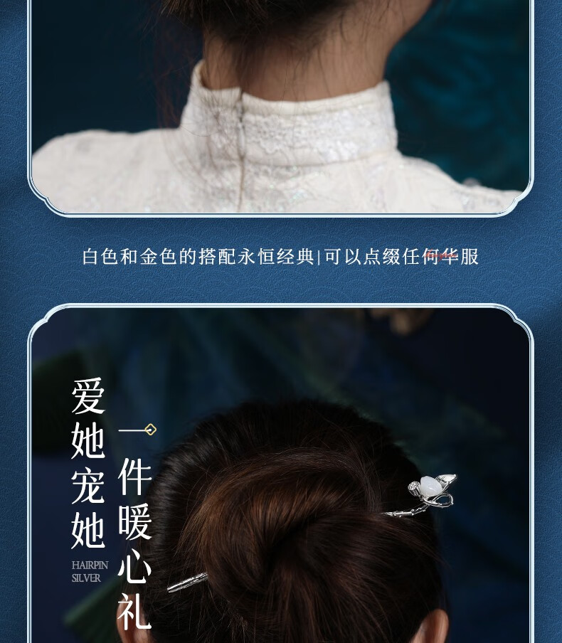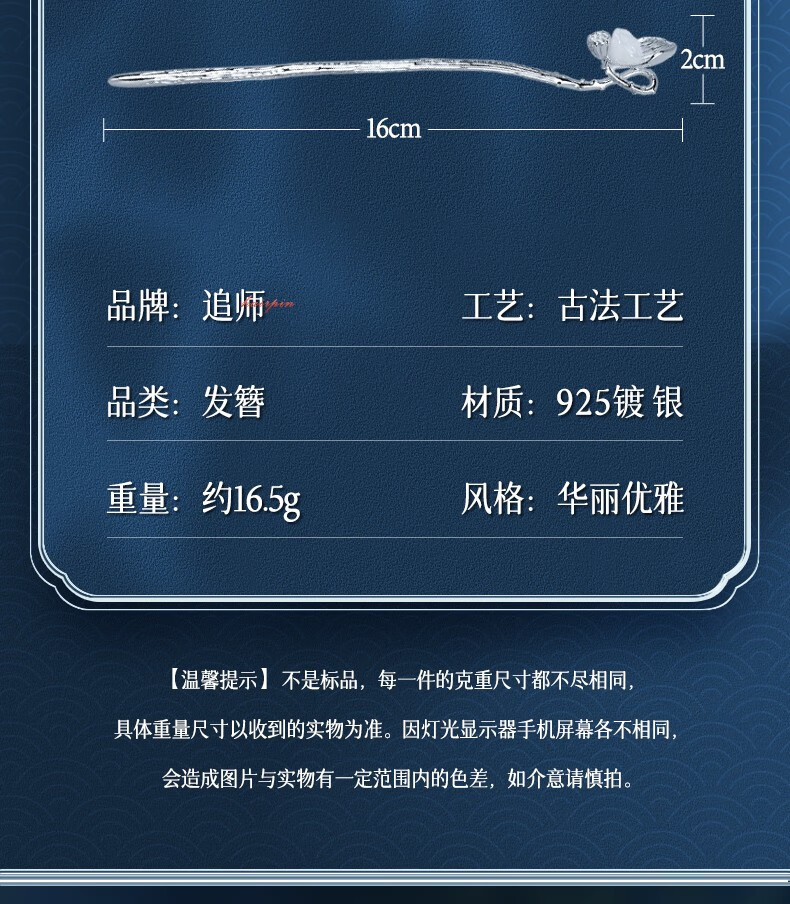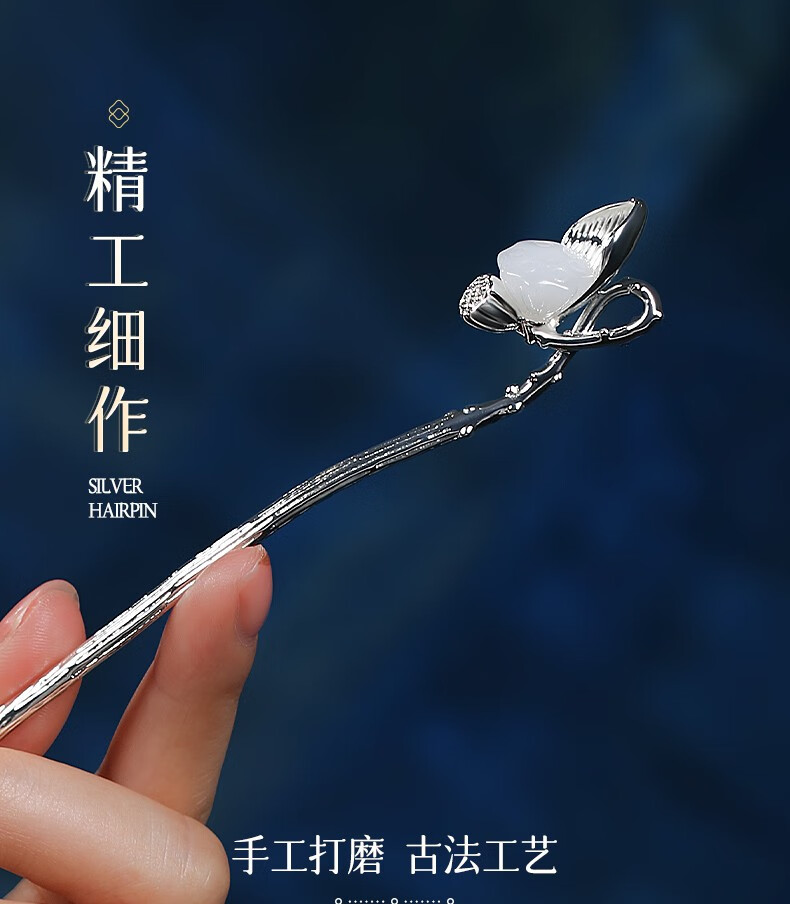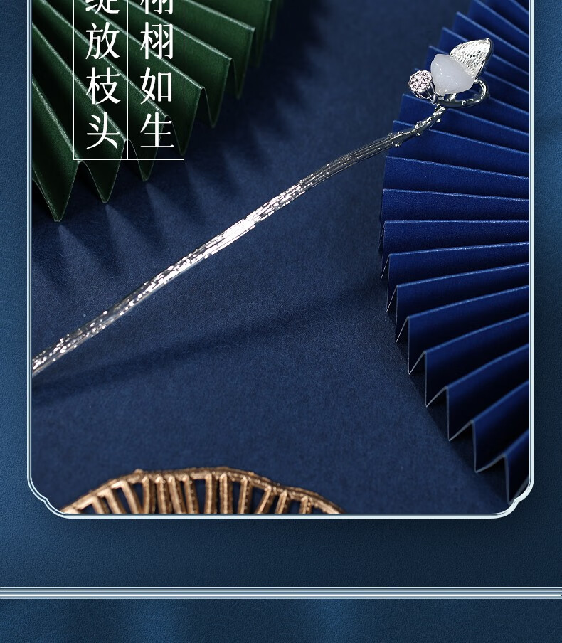 Chai Shi Silver Hair Hairpin Female Ancient Style Hairpin New Chinese Style Hairpin Ancient Style Headwear Birthday Commemorative Festival Mid-Autumn Festival Gift 925 Anemone-plated Lotus Hairpin