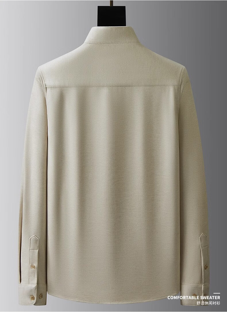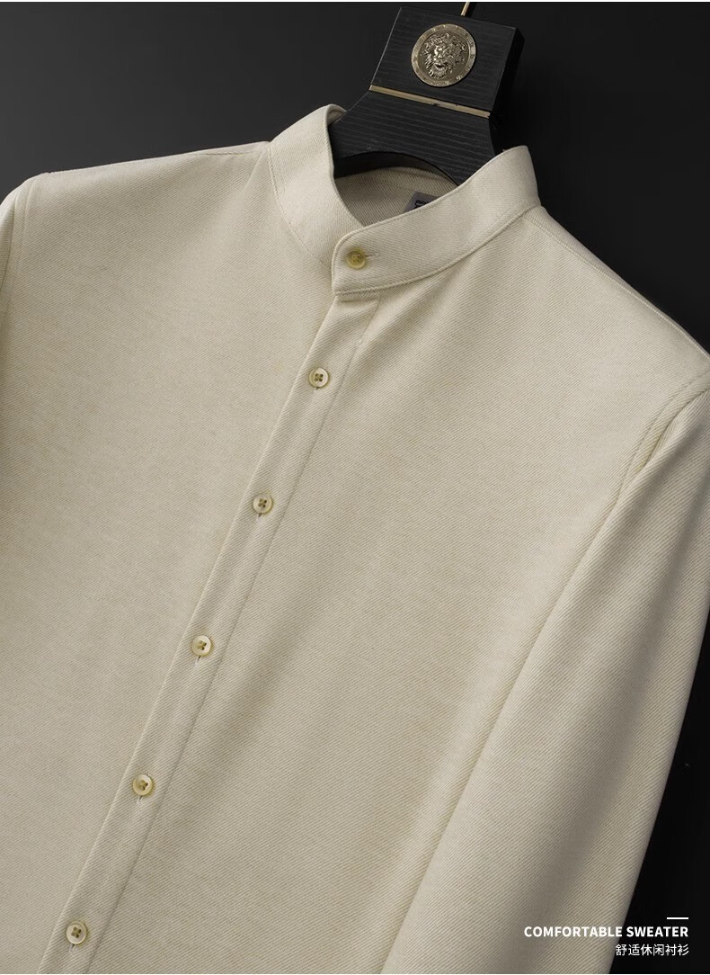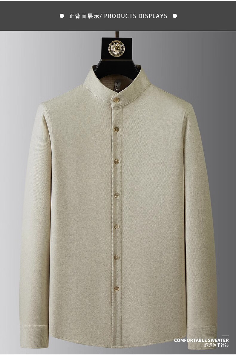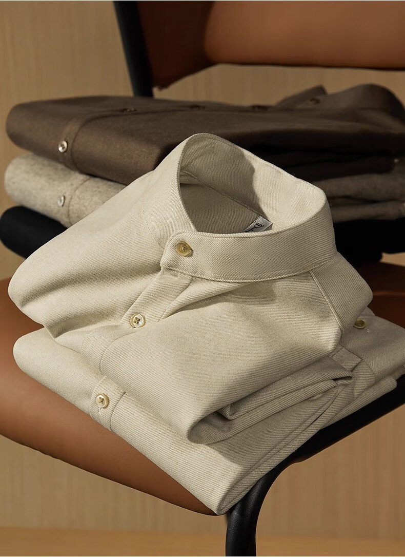 ROMON high-end velvet thickened brushed wool stand-up collar shirt men's long-sleeved slim winter casual warm tunic shirt men's brown regular XL 130-150Jin Jin equals 0.5 kg