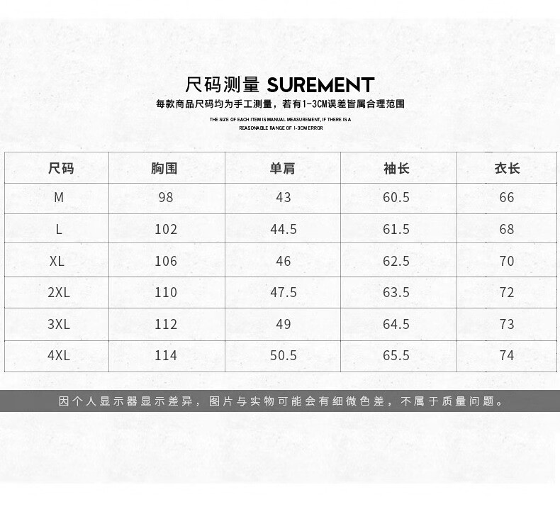 China (cm) 165 / 88-90 170 / 96-98 175 / 108-110 180 / 118-122 185 / 126-130