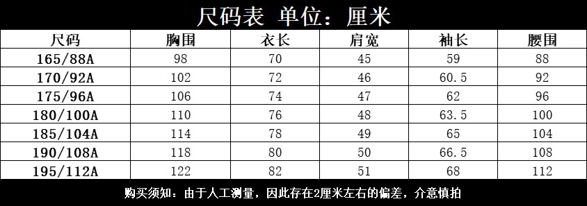 China (cm) 160-165/84-86 165-170 / 88-90 167-172 / 92-96 168-173 / 98-102 170-176 / 106-110