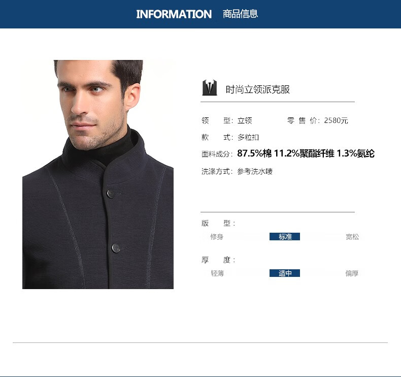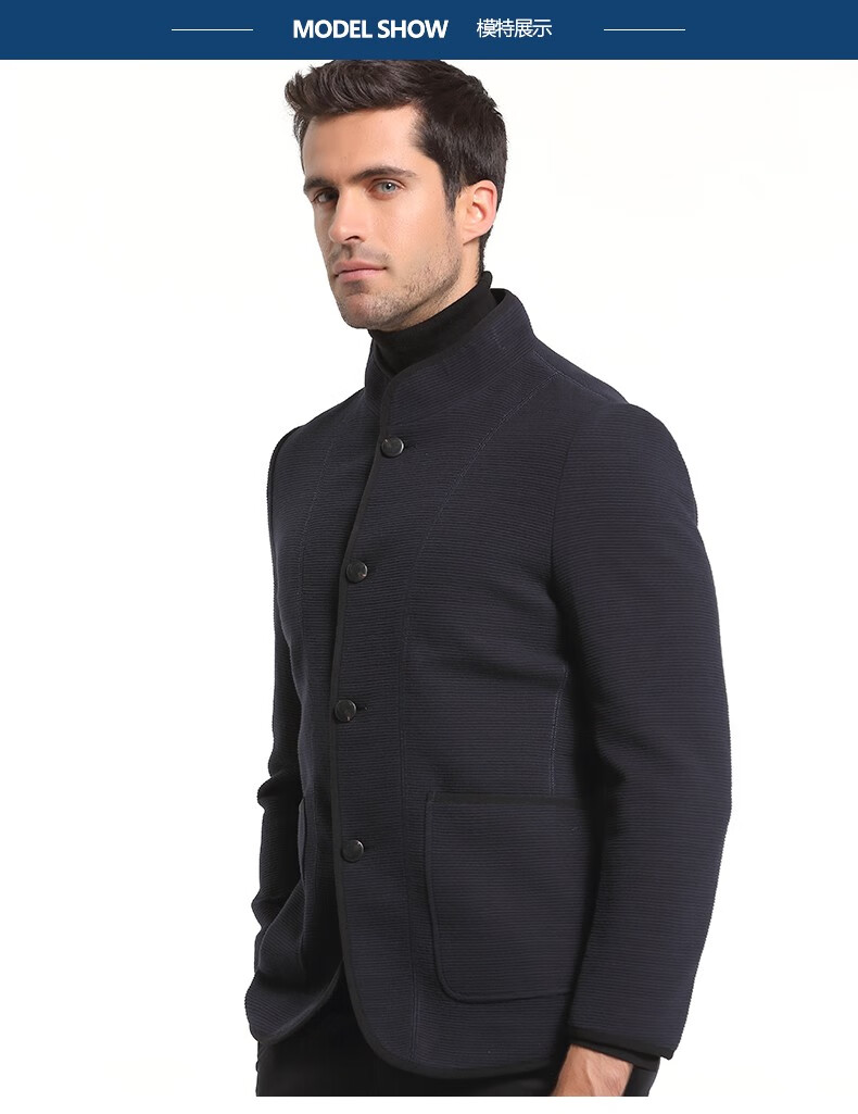 Other brands Jijia winter solid color men's jacket casual parka dad wear Zhongshan stand collar warm cotton jacket dark blue L 175/96A