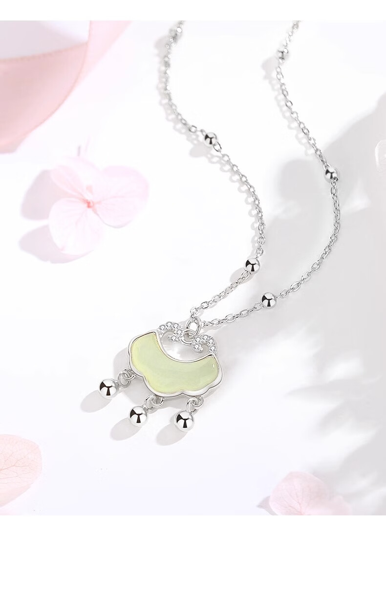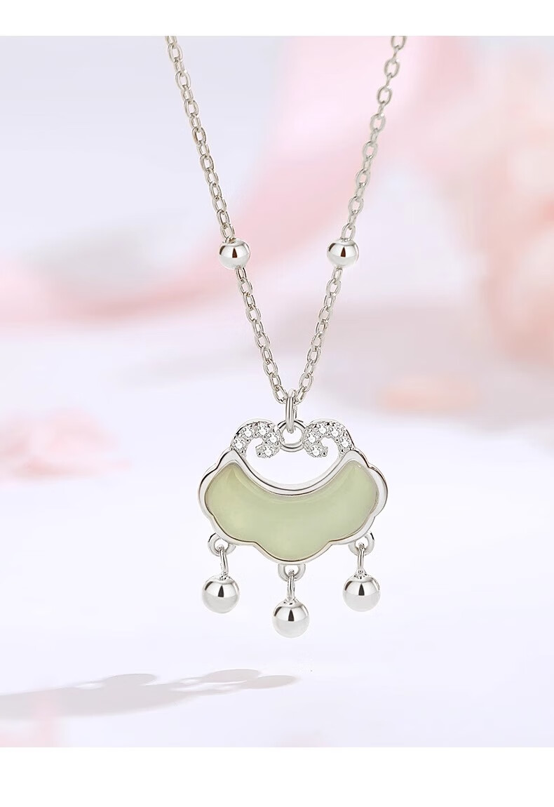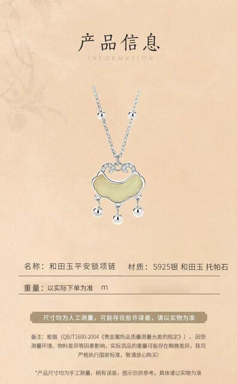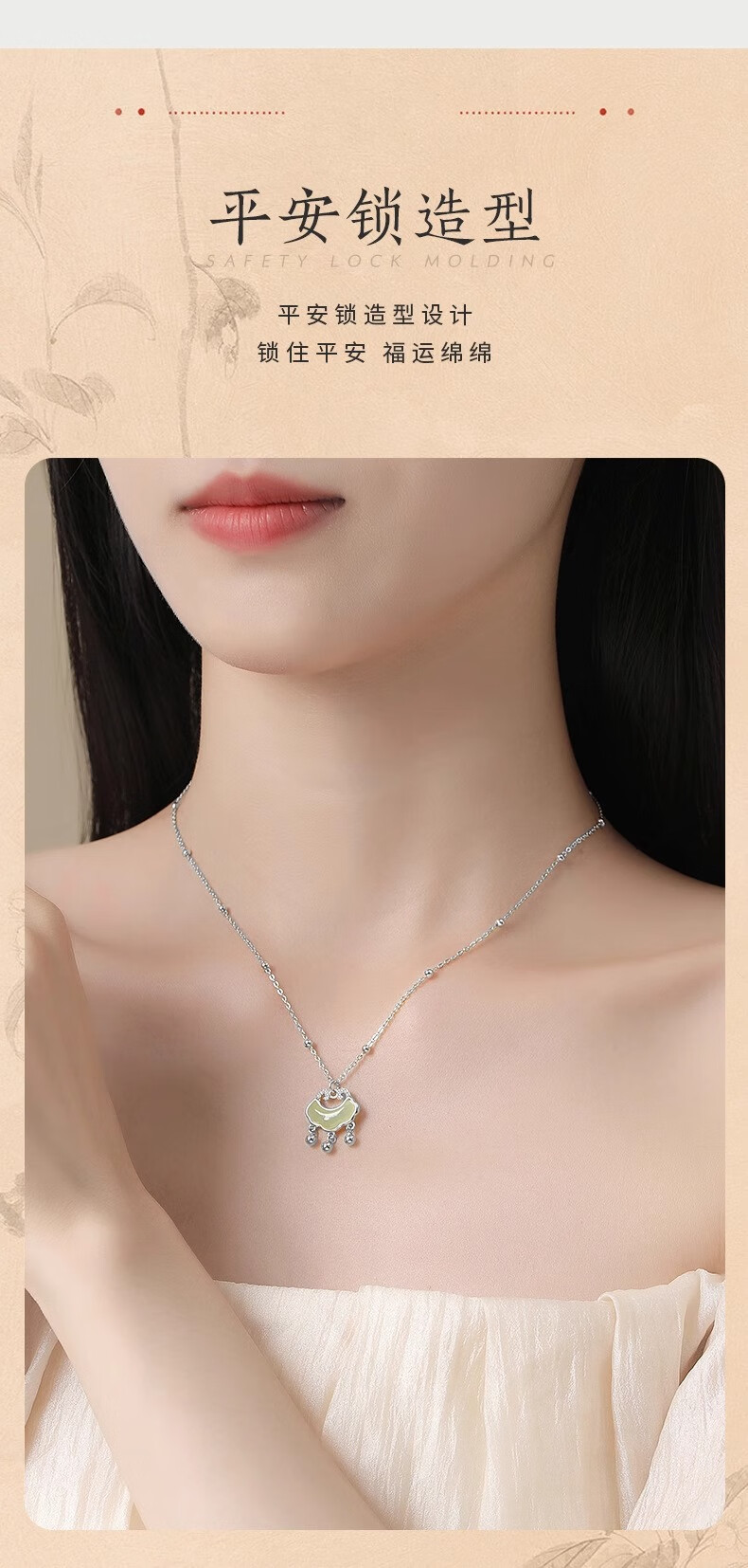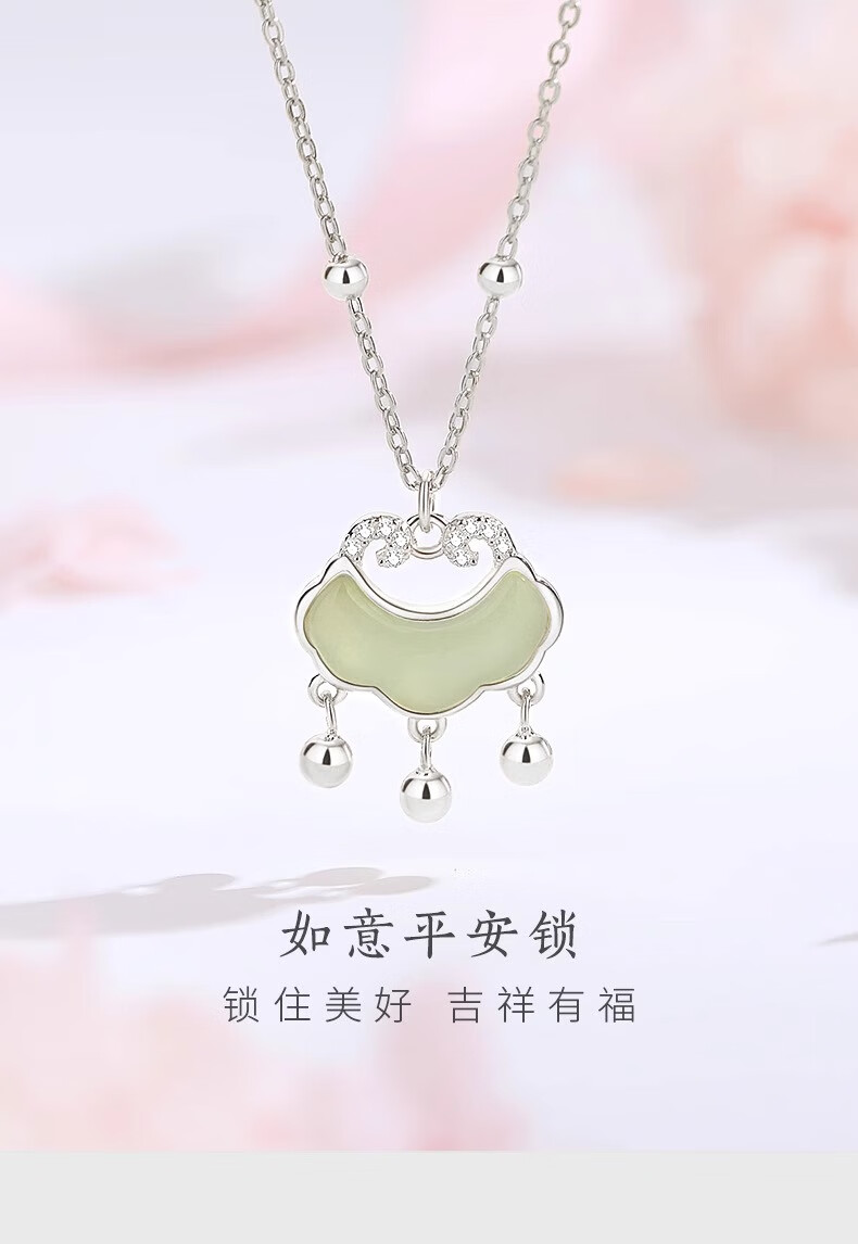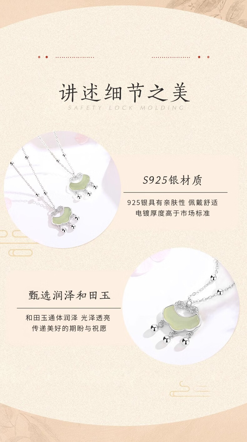 CHINA GOLD Ruyi Ping An Lock S Silver Necklace Transfer Beads Hetian Jade Chang Valentine's Day Birthday Gift for Girlfriend and Wife Ruyi Ping An Lock Necklace Brand Gift Box