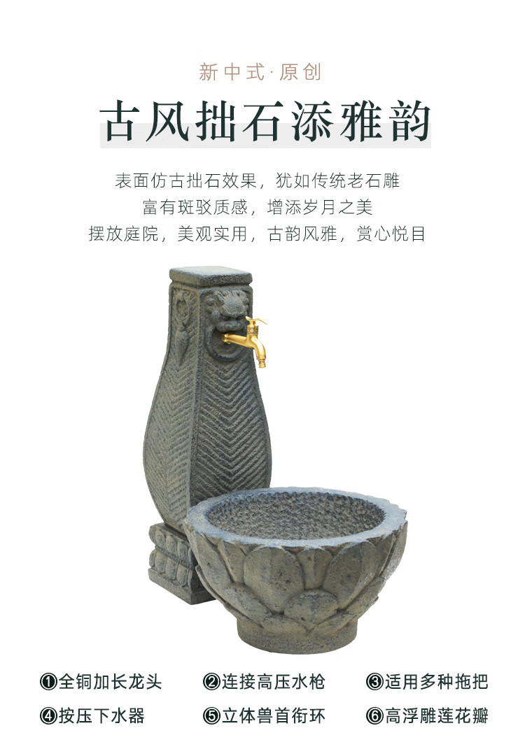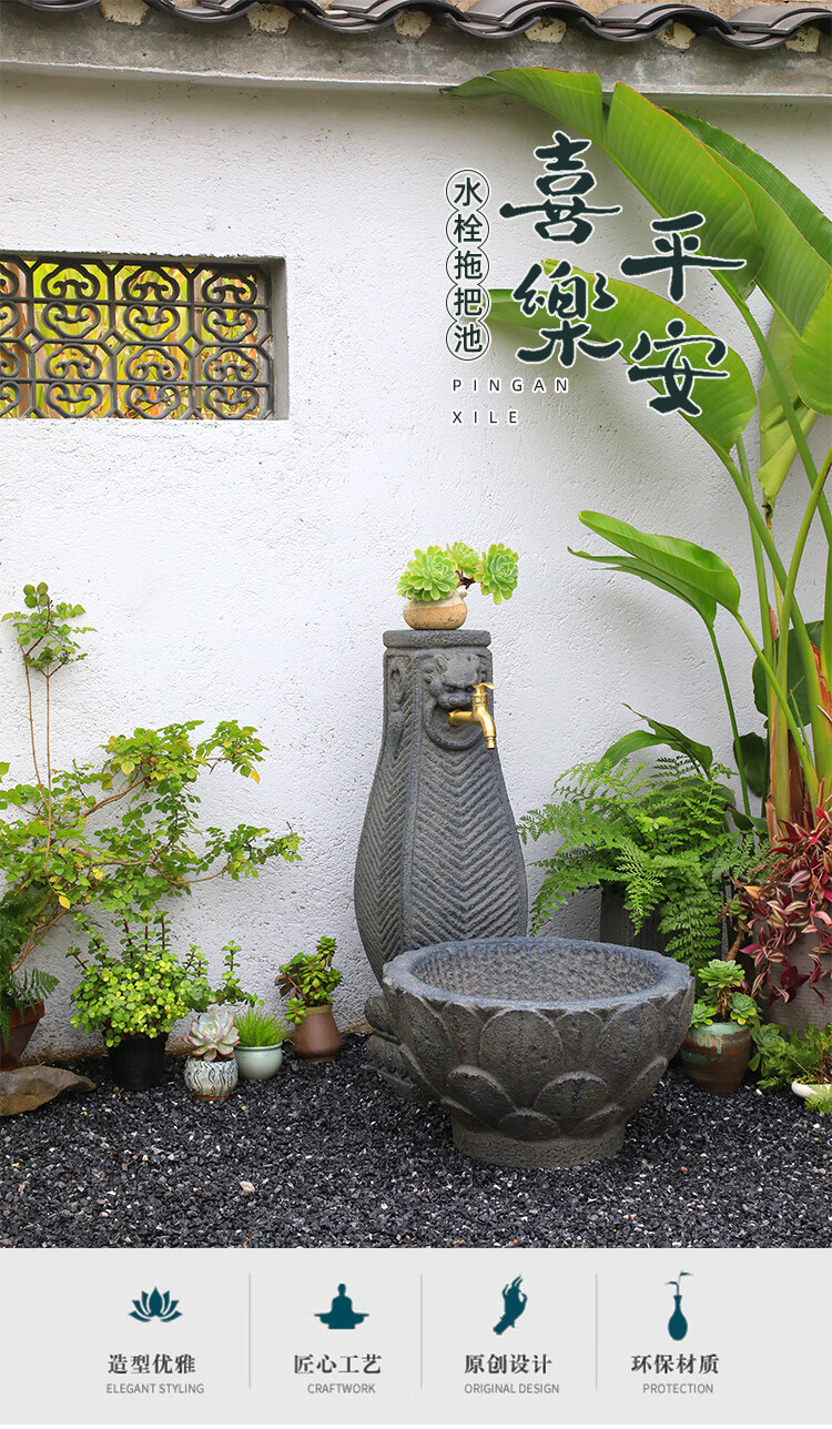 Zhidei courtyard balcony water faucet mop pool outdoor garden decoration landscaping column faucet household floor-standing mop pool Ping An Xile column water faucet without faucet