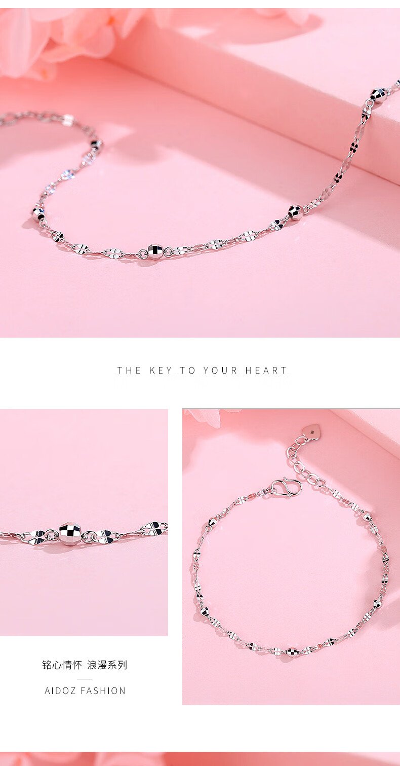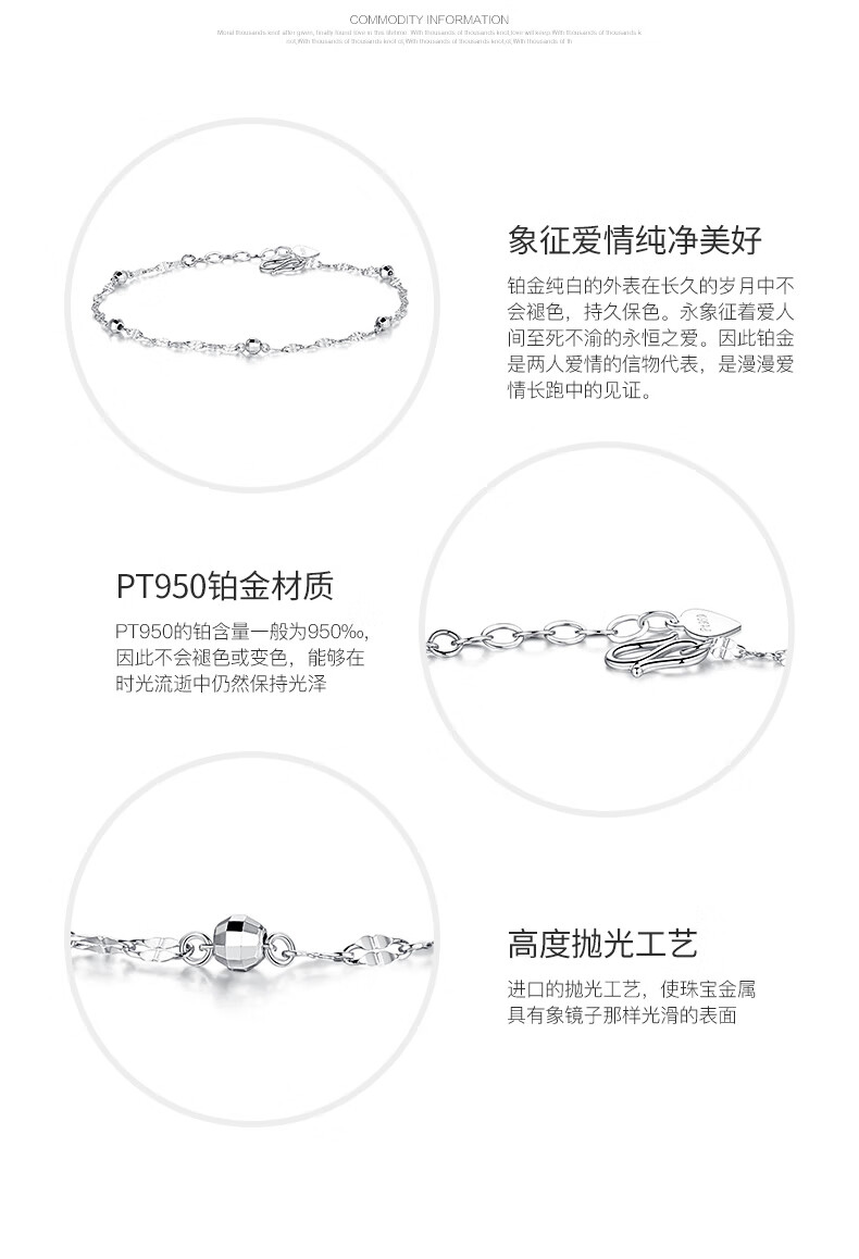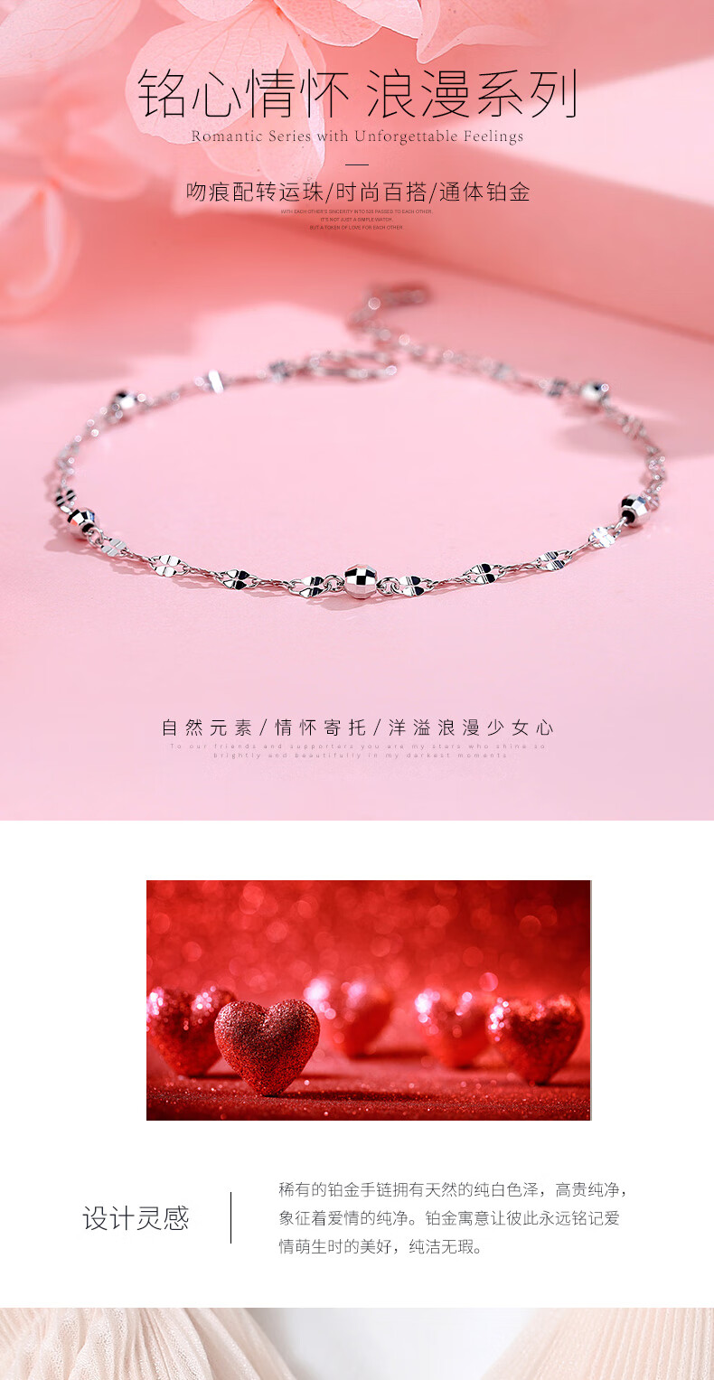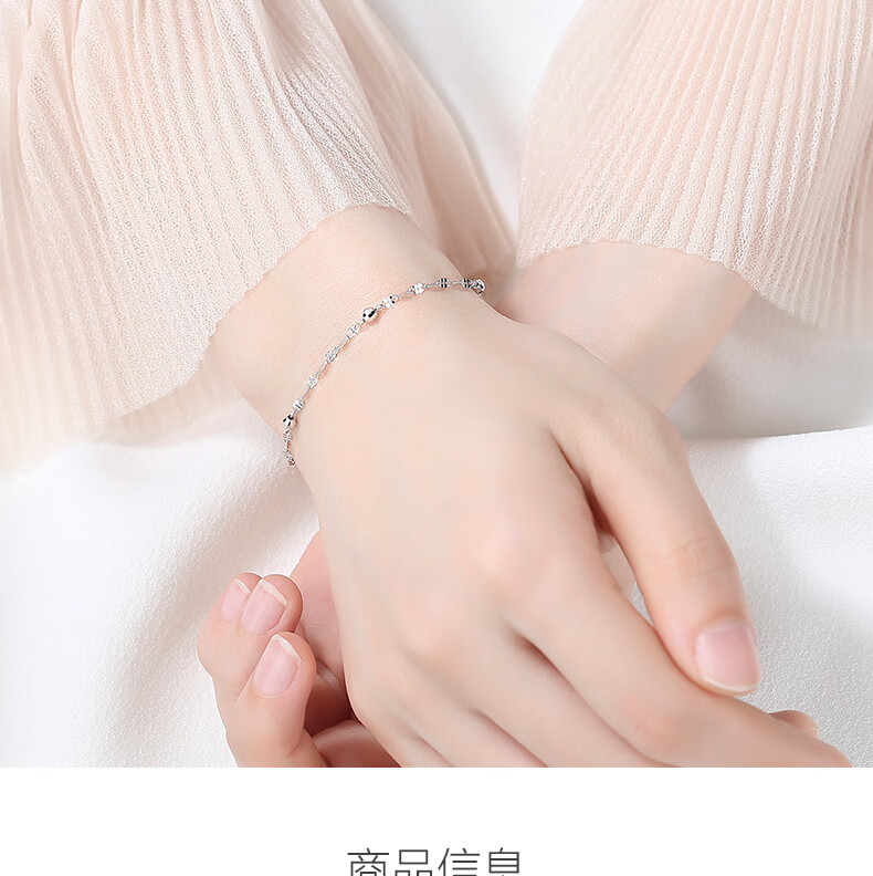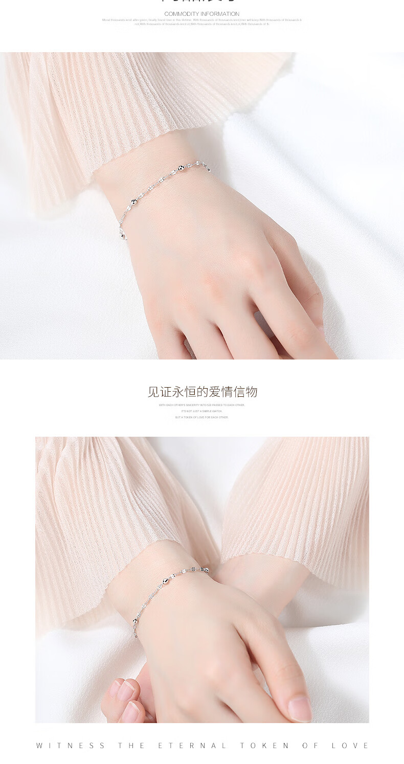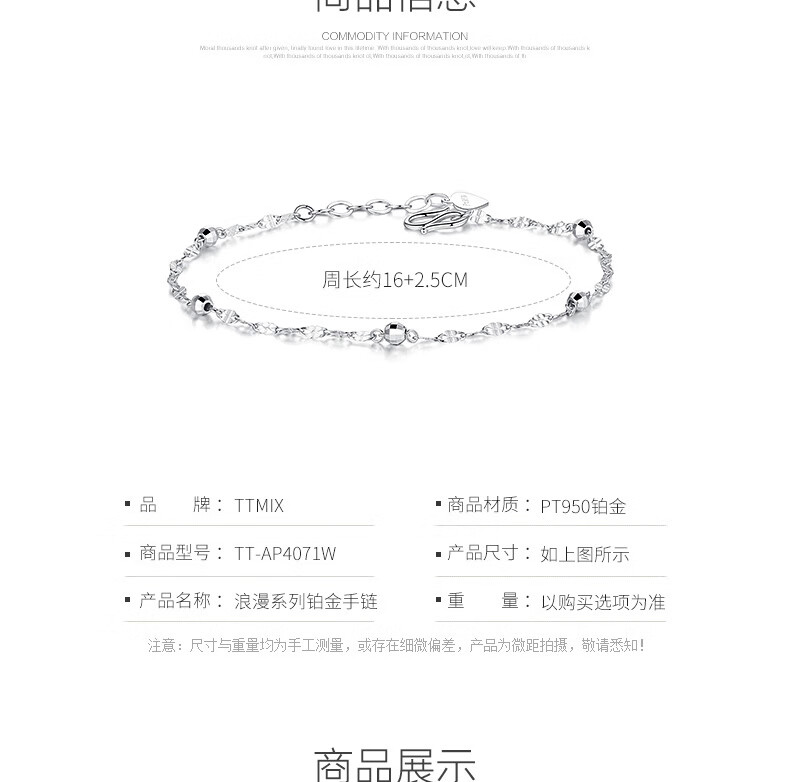 TTMIX women's Pt950 platinum bracelet round bead cool style versatile platinum chain for girlfriend 2.3-2.5g long 16+3cm.