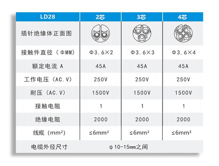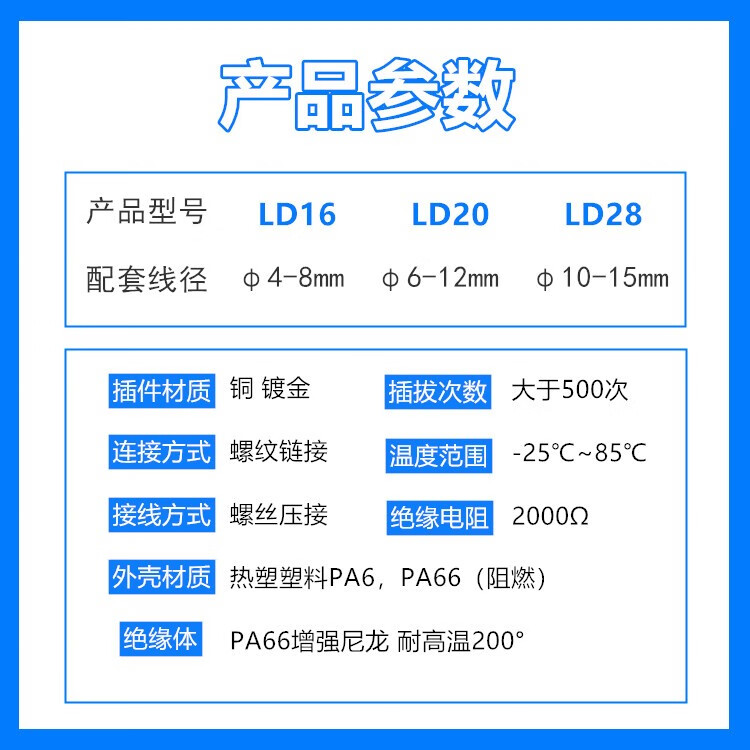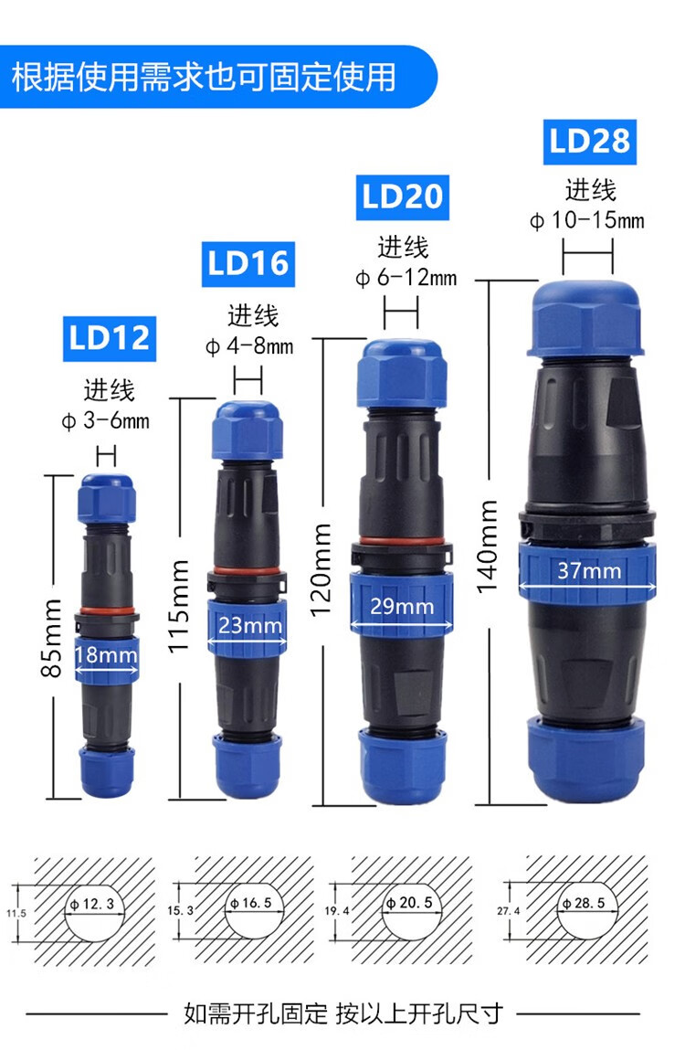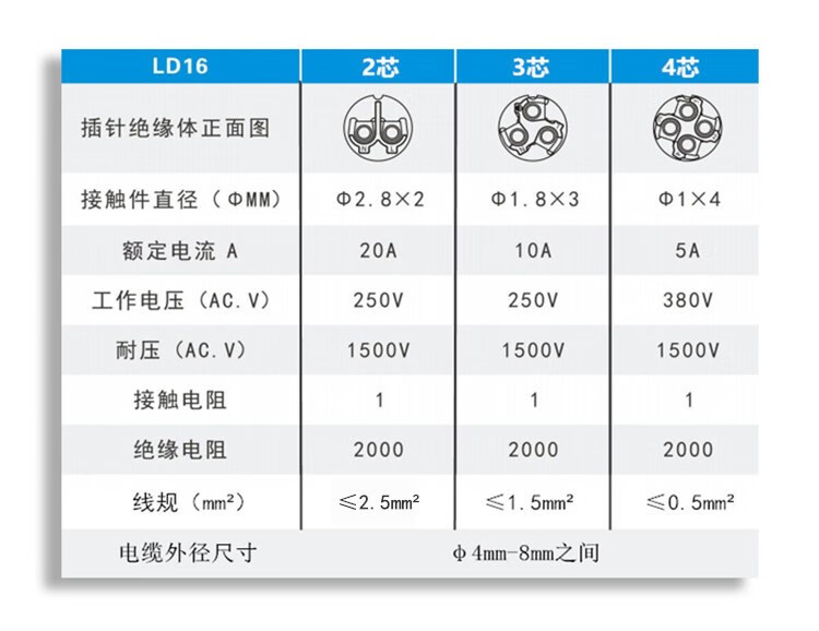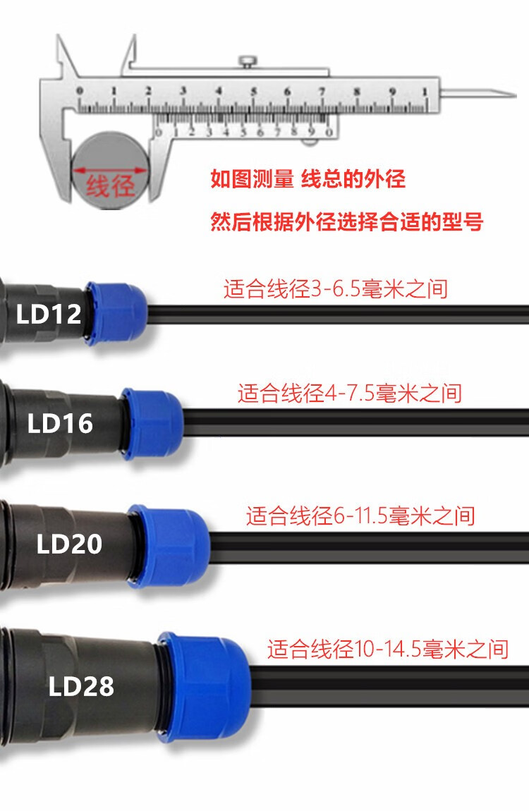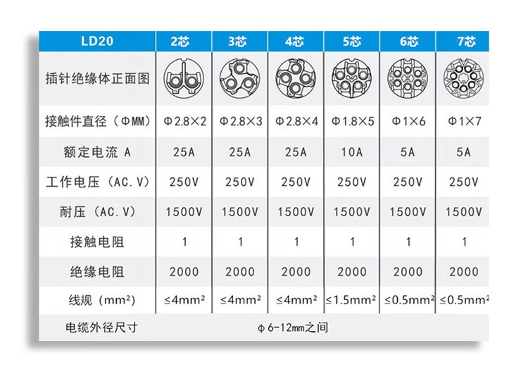 Screw wiring solderless waterproof aviation plug socket 2 holes 3 core 4P fast wire power connector butt joint LD20-7 core 5A wire diameter 6-12mm