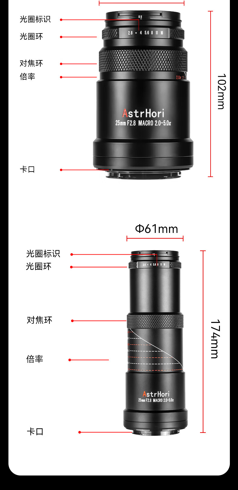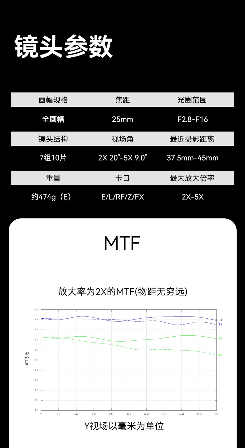 Rock Star 25mm F2.8 MACRO Macro 2-5x Camera Macro Lens Sony E-Mount (Full Frame)
