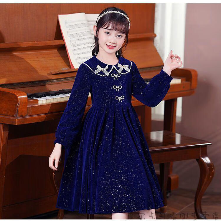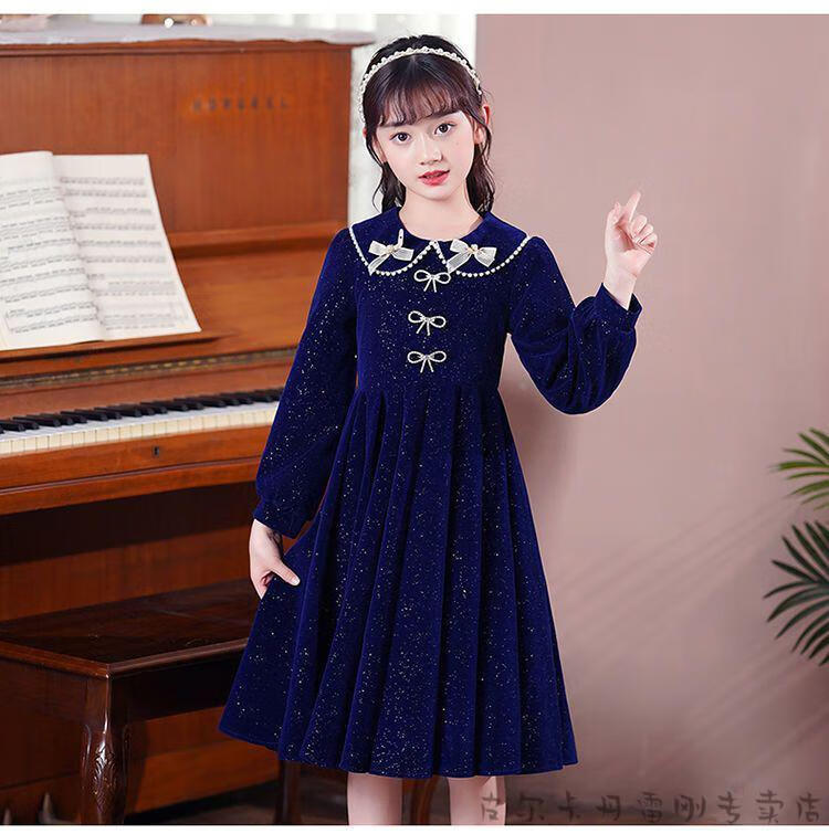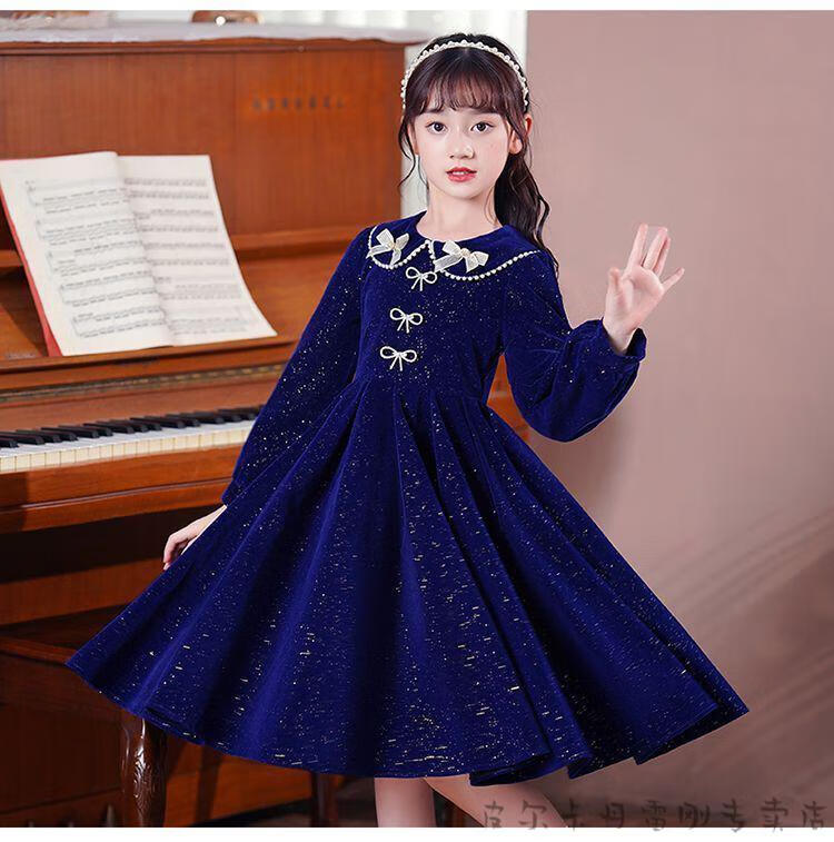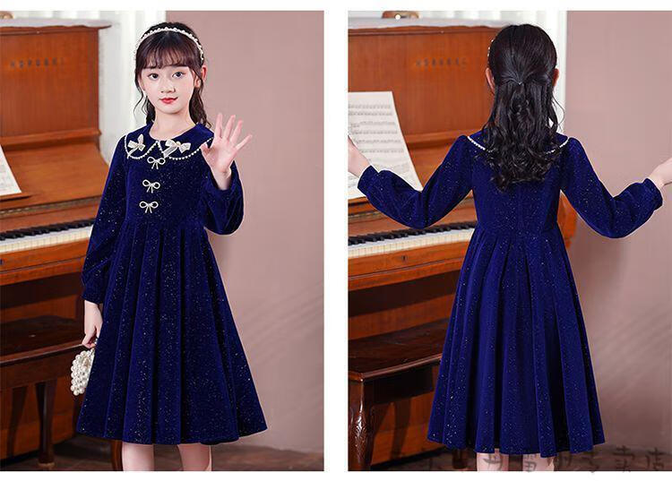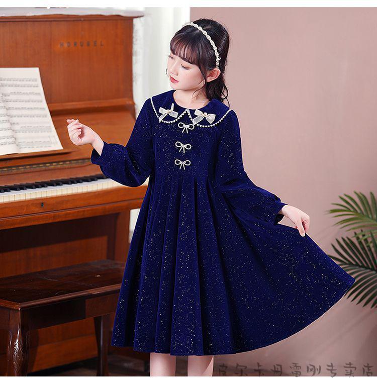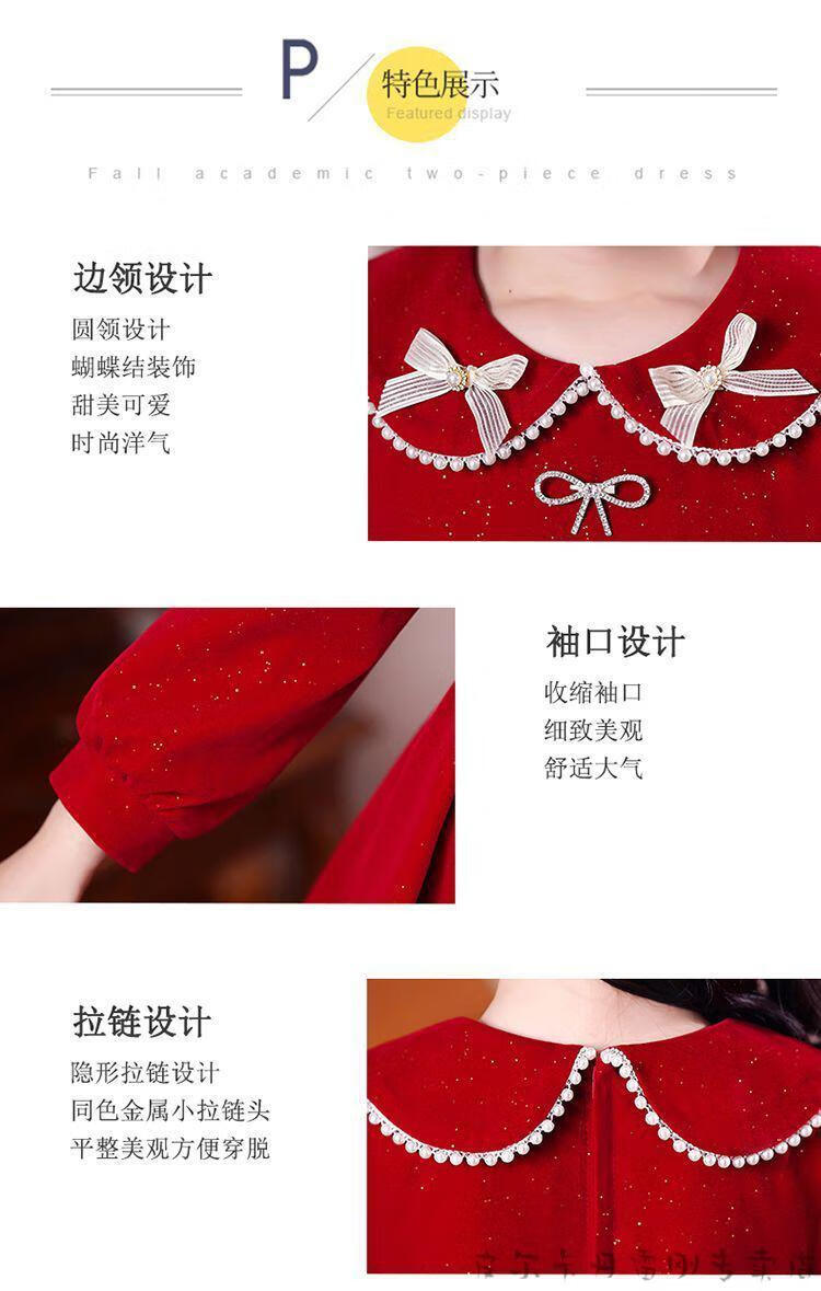 Pierre Cardin girls' dress autumn and winter 3~14 years old girls fashionable red princess dress autumn velvet children's dress red L1051# 160
