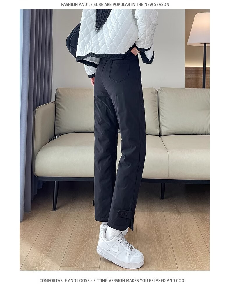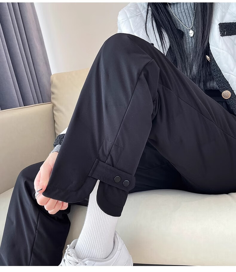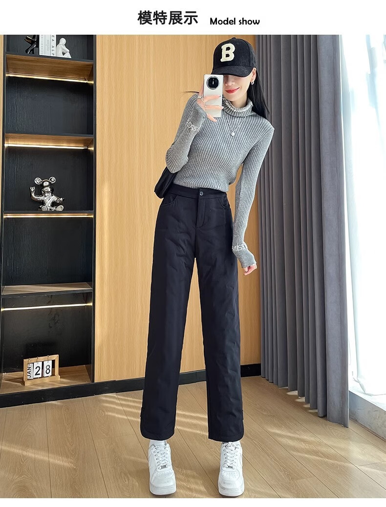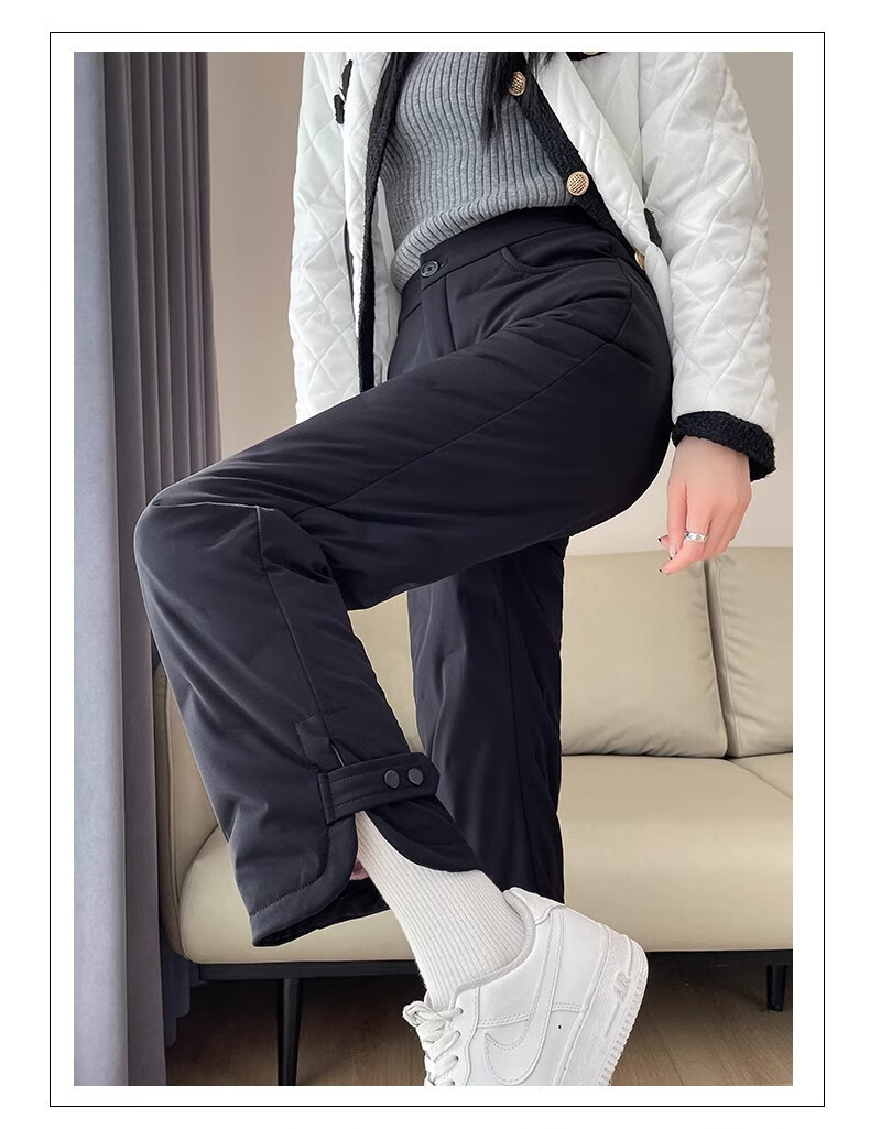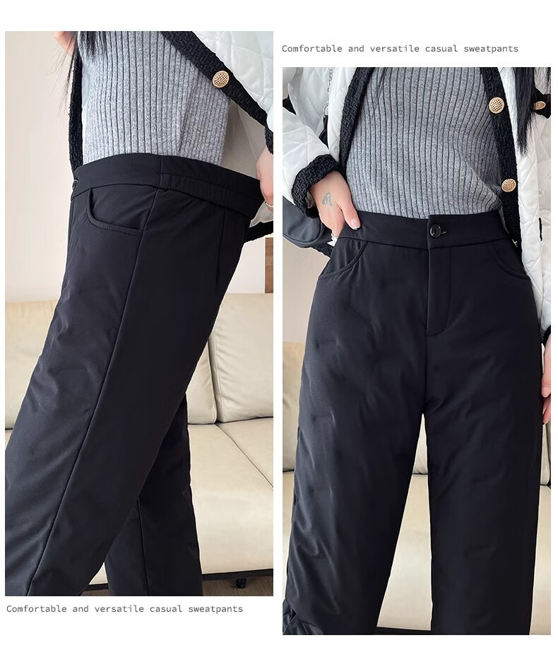 Mad Cortes original high-end down pants for women, fashionable winter outerwear, thickened warm extended straight wide-leg pants, black normal, recommended height below 165cm L (105-115Jin Jin equals 0.5kg)