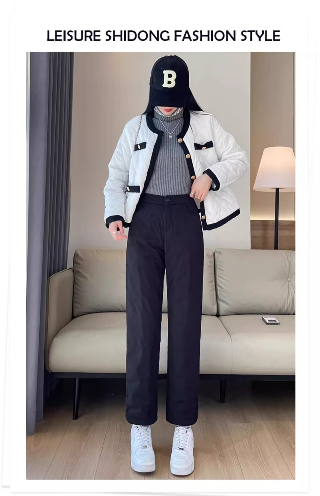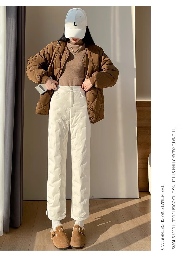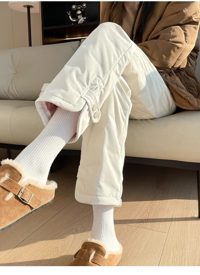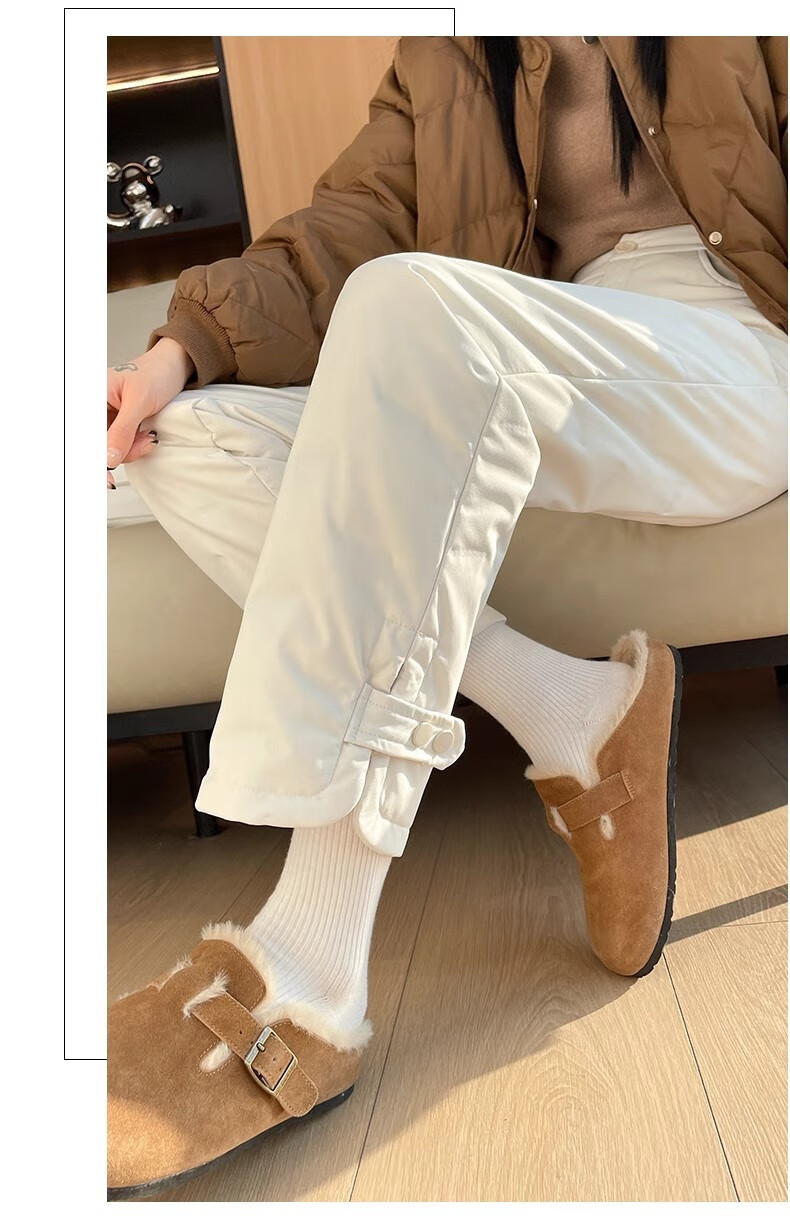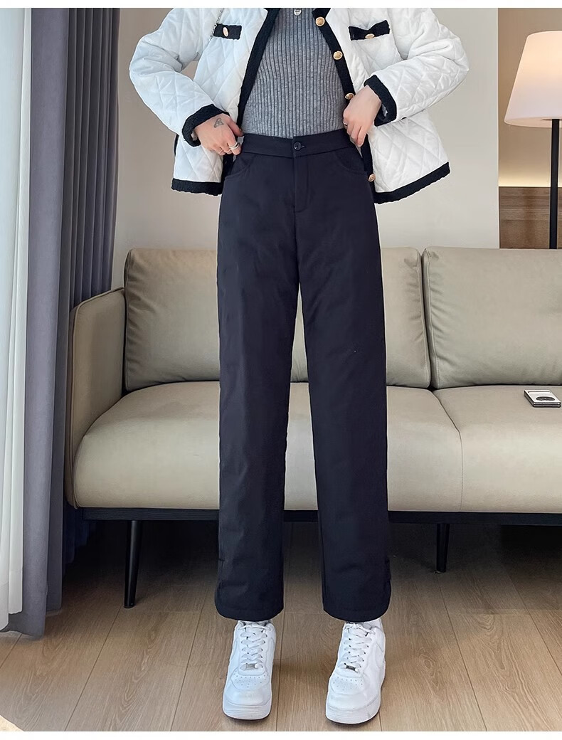 Mad Cortes original high-end down pants for women, fashionable winter outerwear, thickened warm extended straight wide-leg pants, black normal, recommended height below 165cm L (105-115Jin Jin equals 0.5kg)