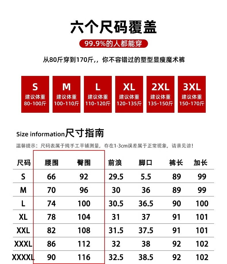 Outseam (cm) 99 cm 101.5 cm 104 cm 106.5 cm 109 cm